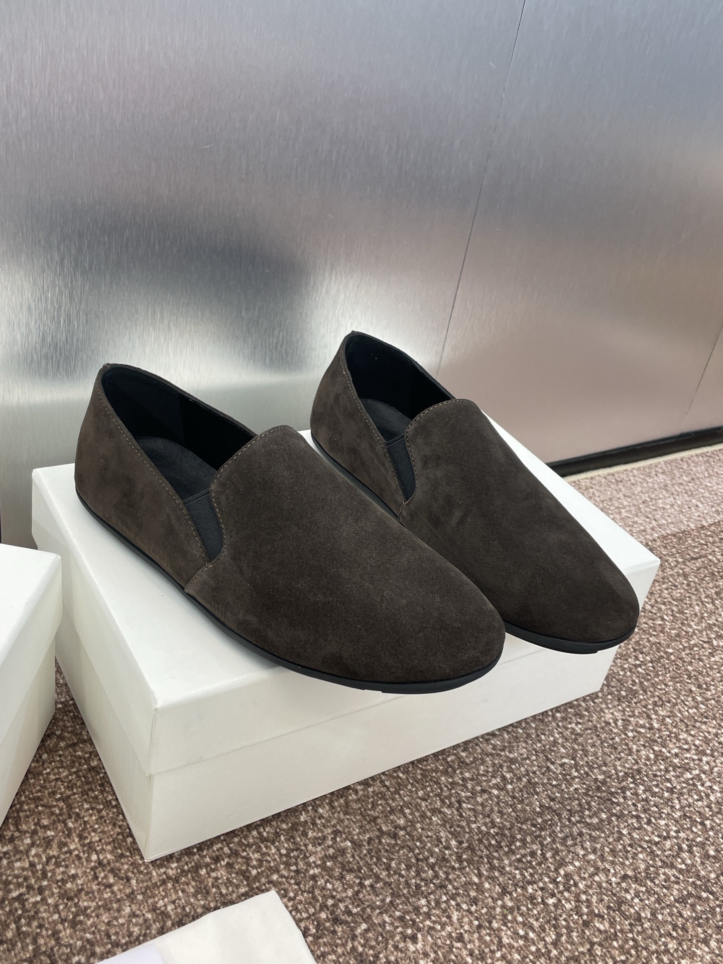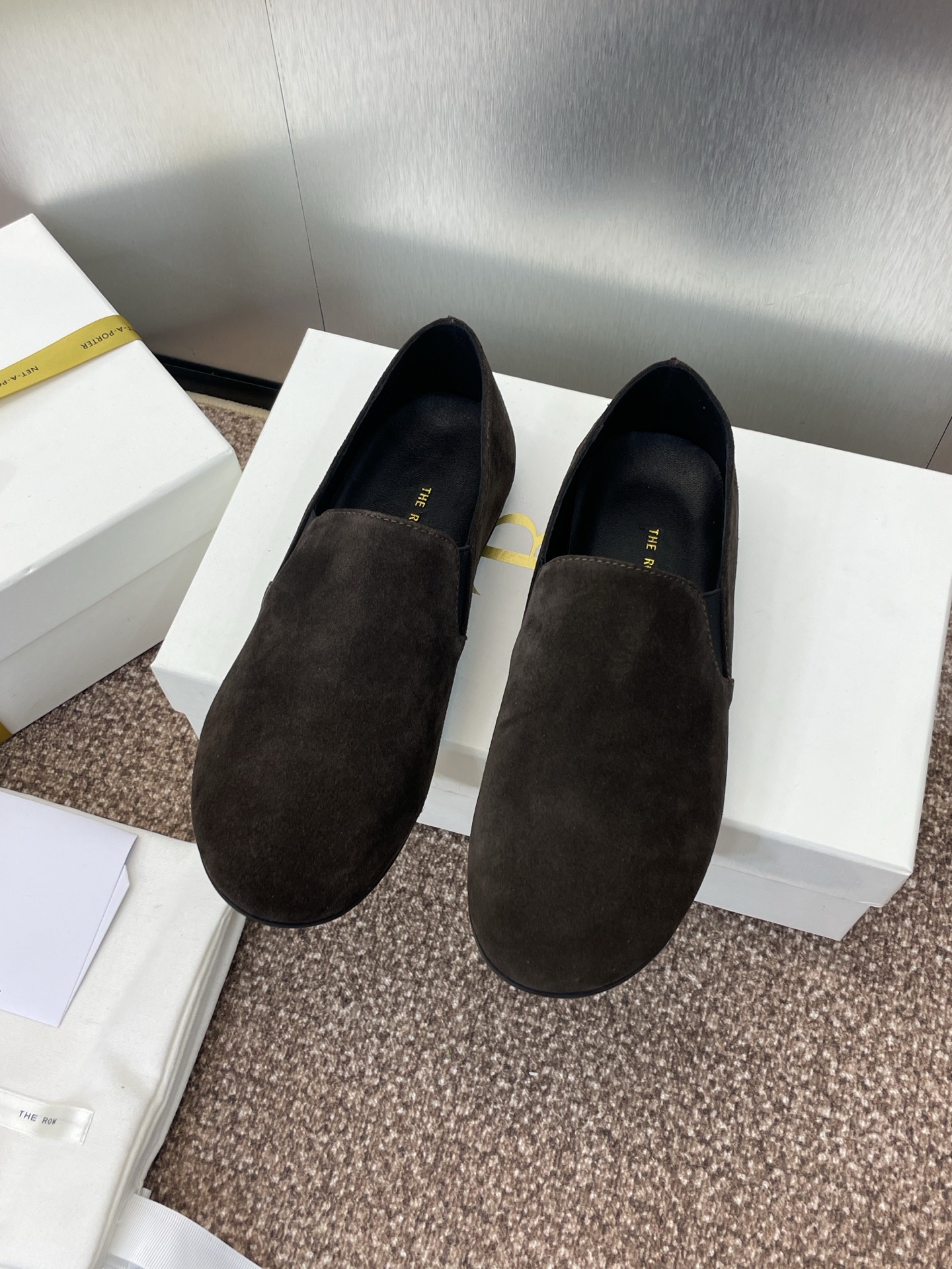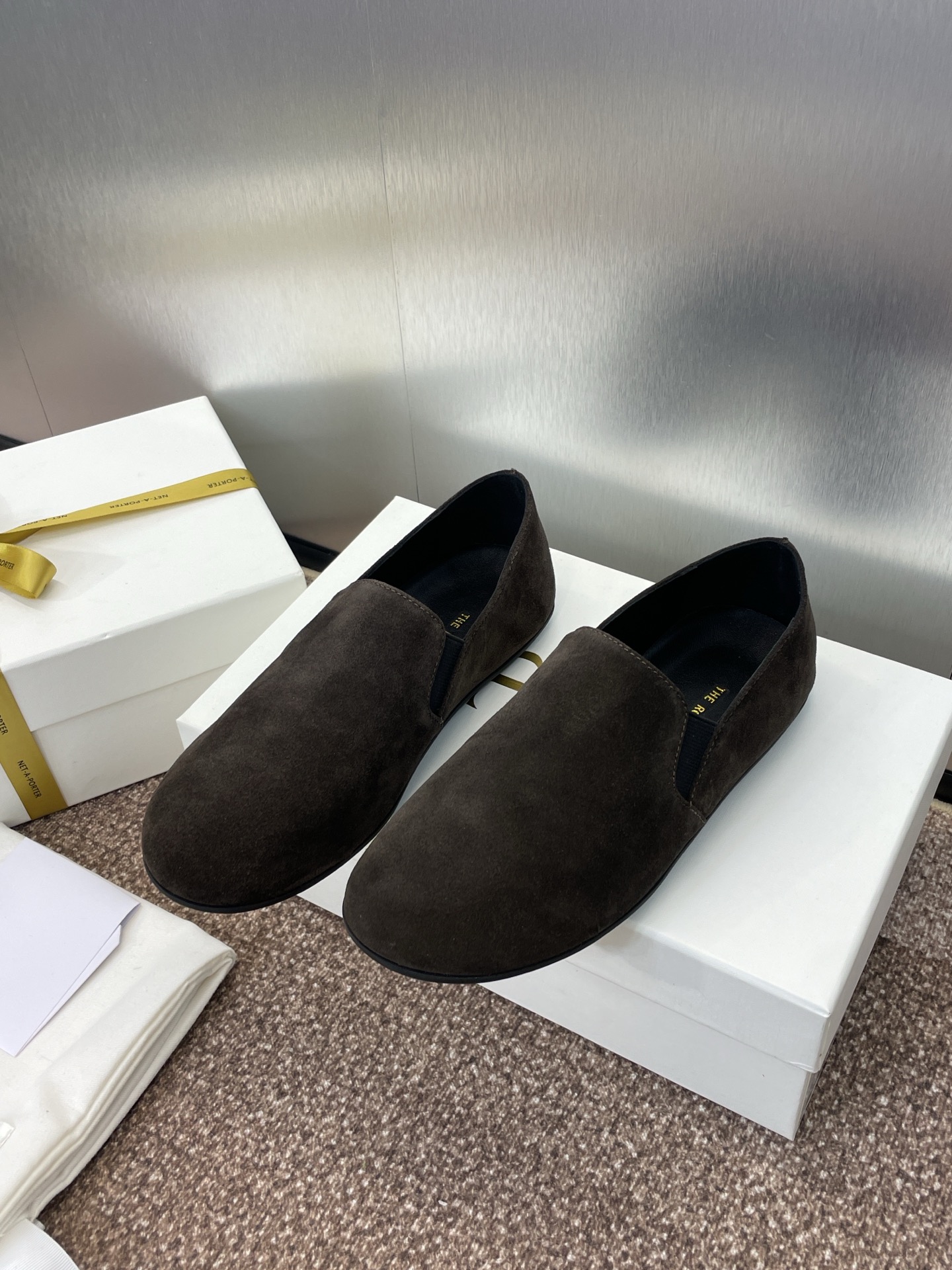 这款鞋子是AAAAA 1:1 质量 (非常棒). 使用了和原版一模一样的材料. 商标部分也保持了和The Row一样. 图片拍摄是实物鞋子拍摄, 您所收到的实物保证和我们图片一模一样.