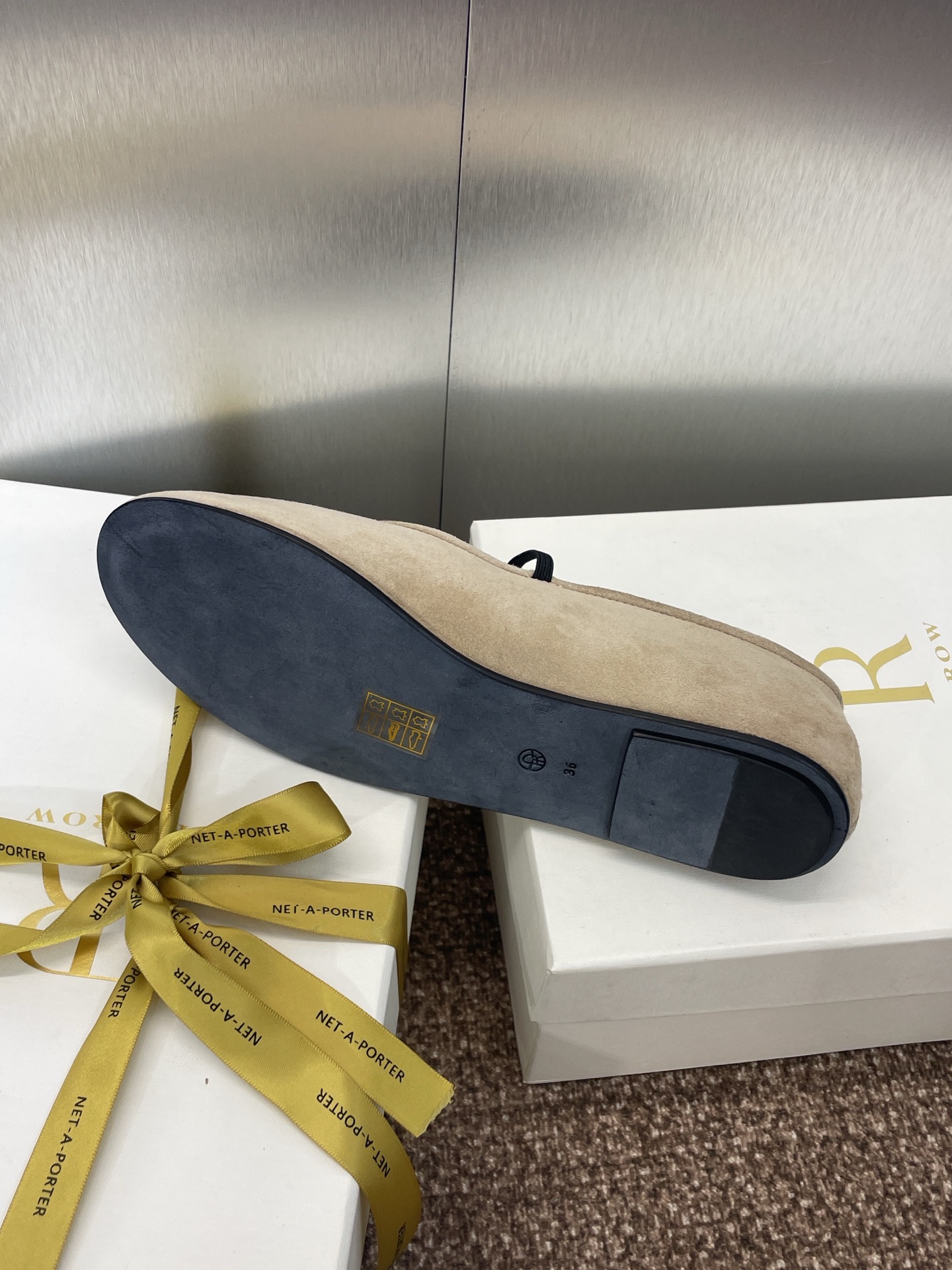 这款鞋子是AAAAA 1:1 质量 (非常棒). 使用了和原版一模一样的材料. 商标部分也保持了和The Row一样. 图片拍摄是实物鞋子拍摄, 您所收到的实物保证和我们图片一模一样.