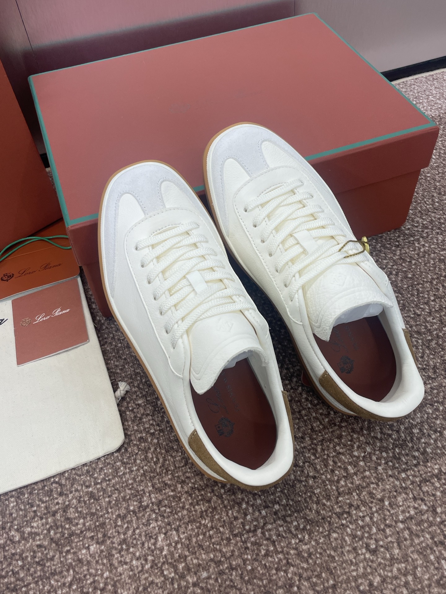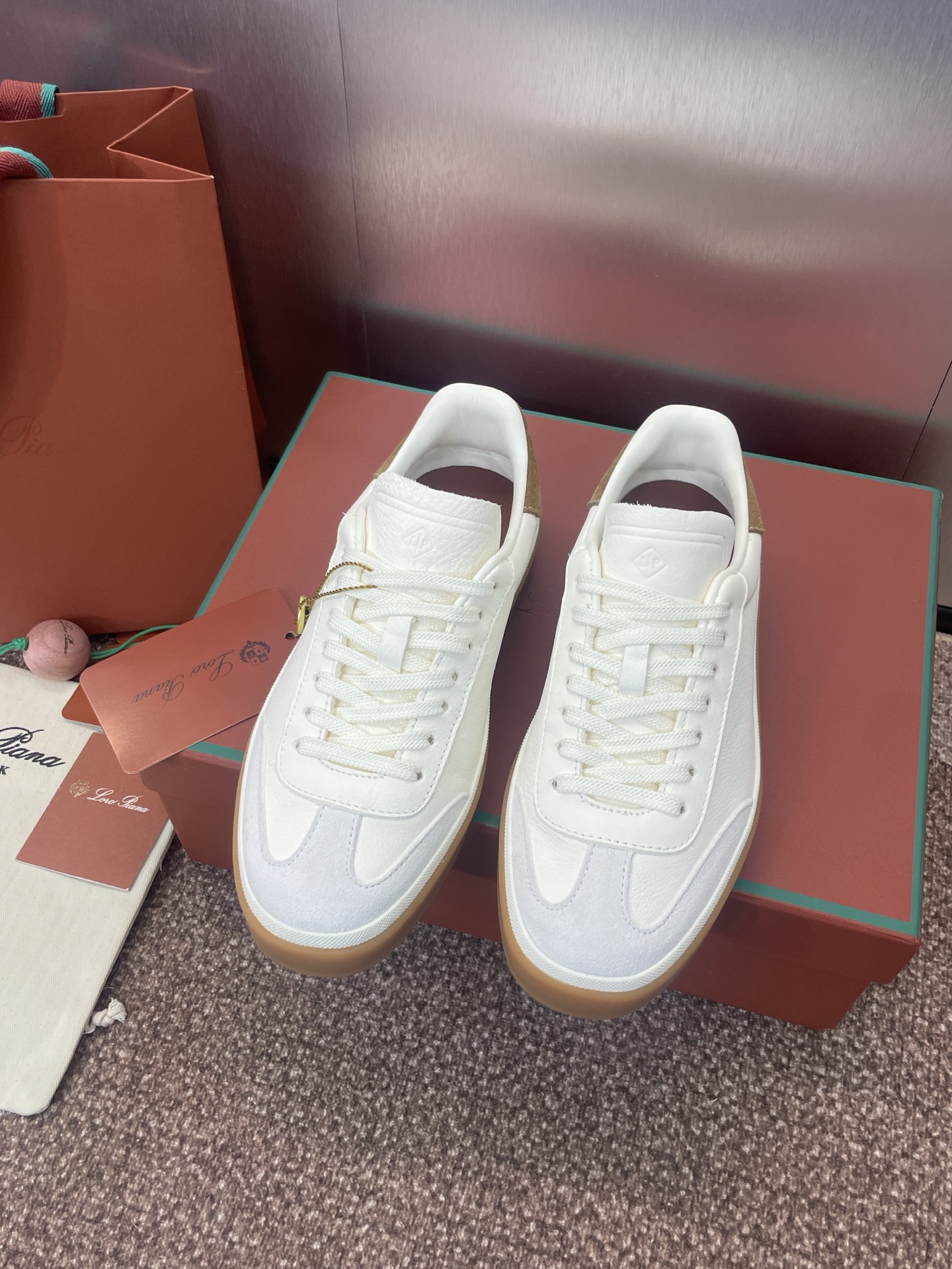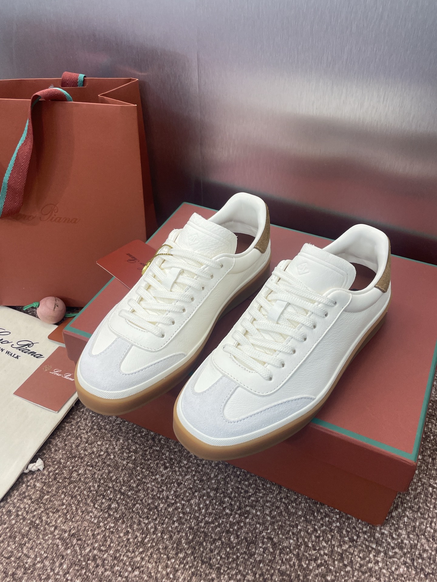 这款鞋子是AAAAA 1:1 质量 (非常棒). 使用了和原版一模一样的材料. 商标部分也保持了和洛罗皮亚纳/Loro Piana一样. 图片拍摄是实物鞋子拍摄, 您所收到的实物保证和我们图片一模一样.