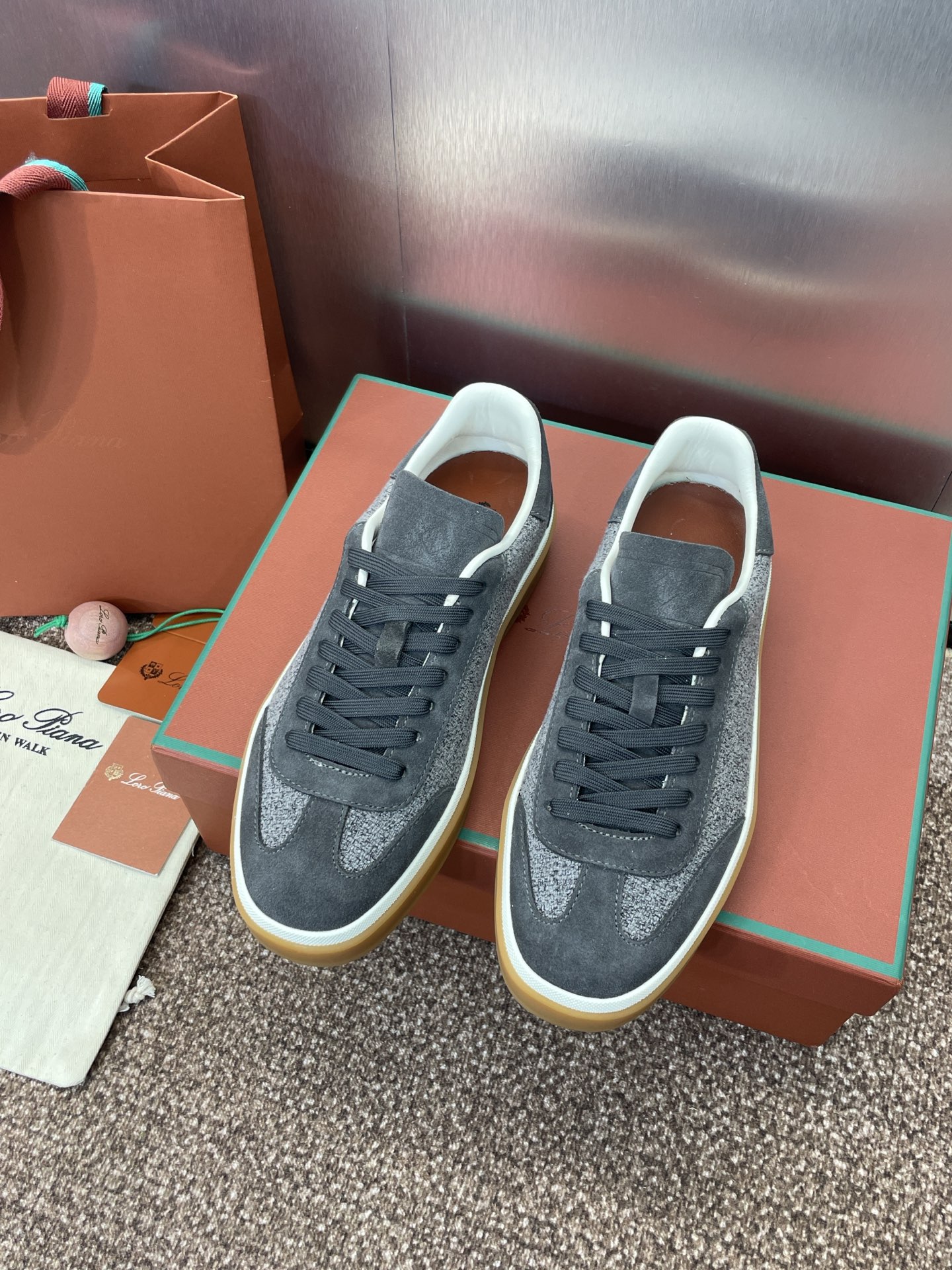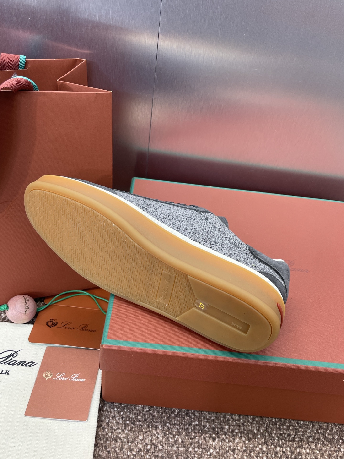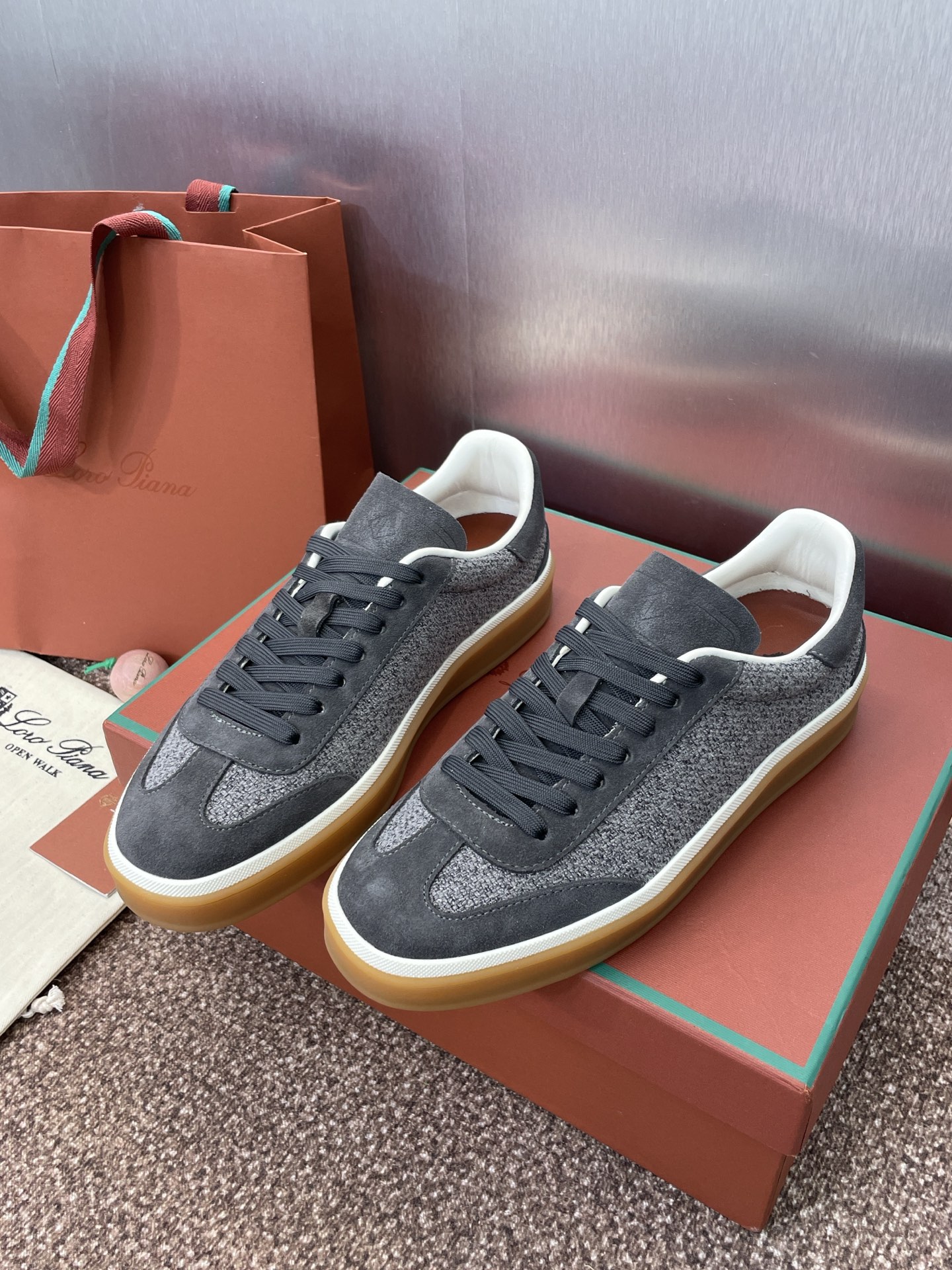 这款鞋子是AAAAA 1:1 质量 (非常棒). 使用了和原版一模一样的材料. 商标部分也保持了和洛罗皮亚纳/Loro Piana一样. 图片拍摄是实物鞋子拍摄, 您所收到的实物保证和我们图片一模一样.