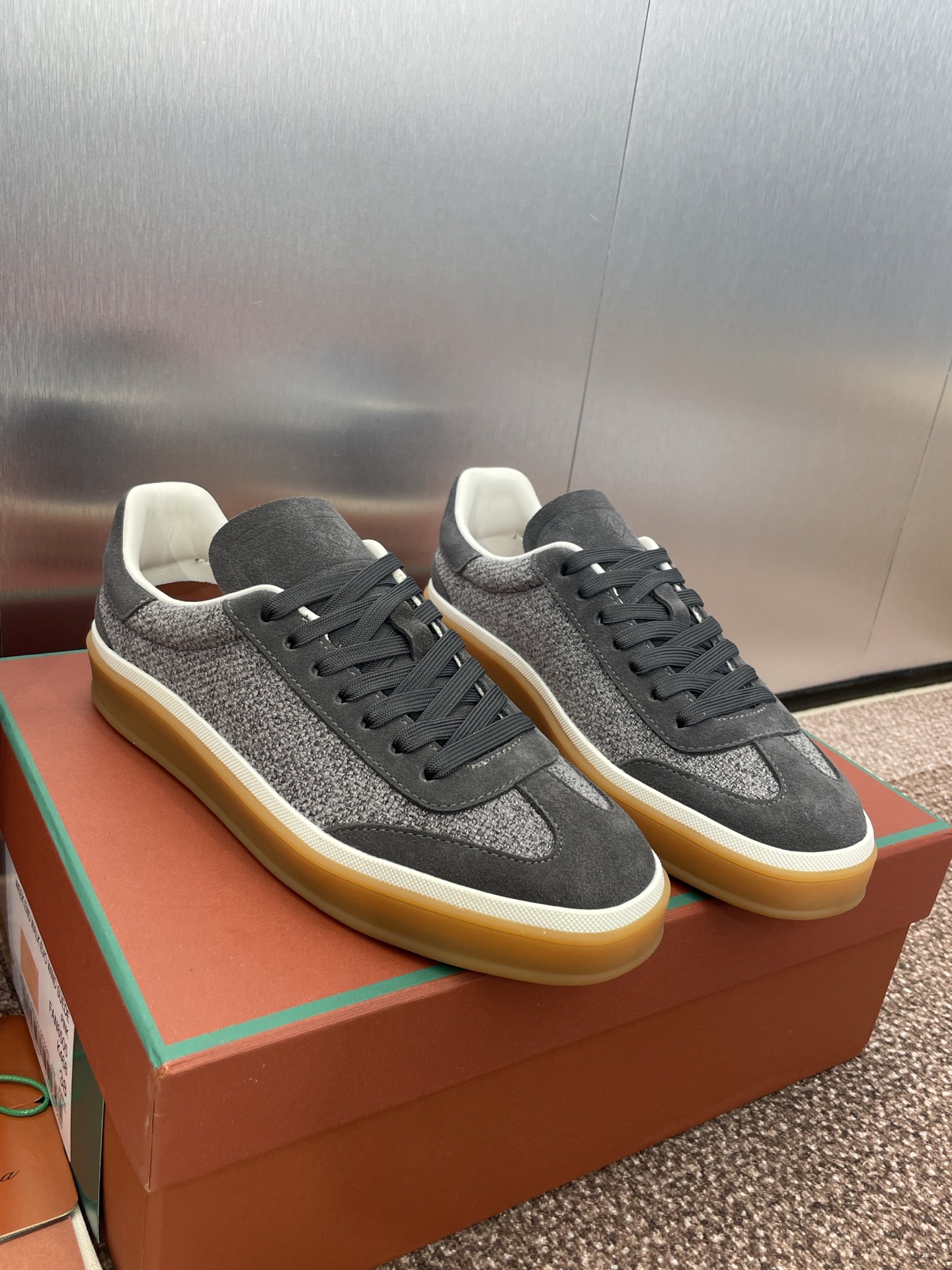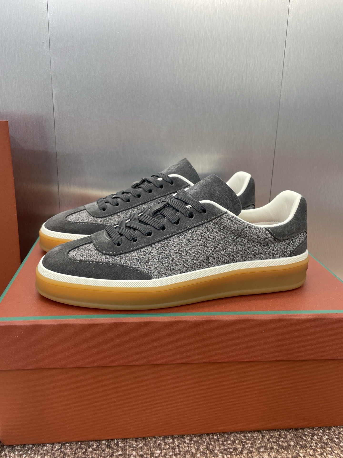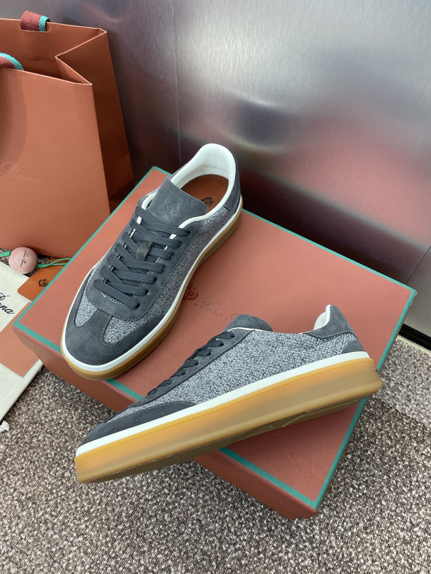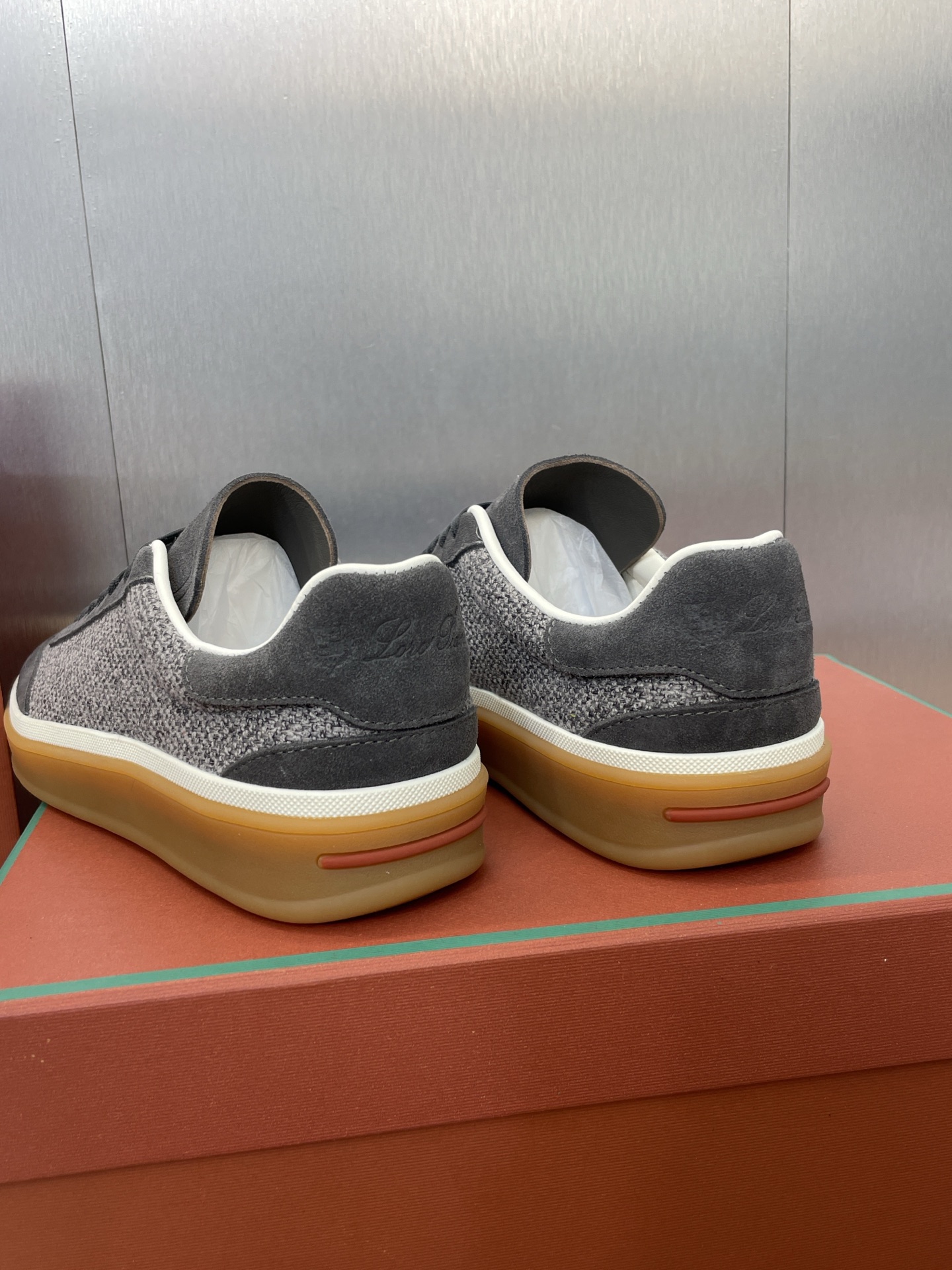 这款鞋子是AAAAA 1:1 质量 (非常棒). 使用了和原版一模一样的材料. 商标部分也保持了和洛罗皮亚纳/Loro Piana一样. 图片拍摄是实物鞋子拍摄, 您所收到的实物保证和我们图片一模一样.