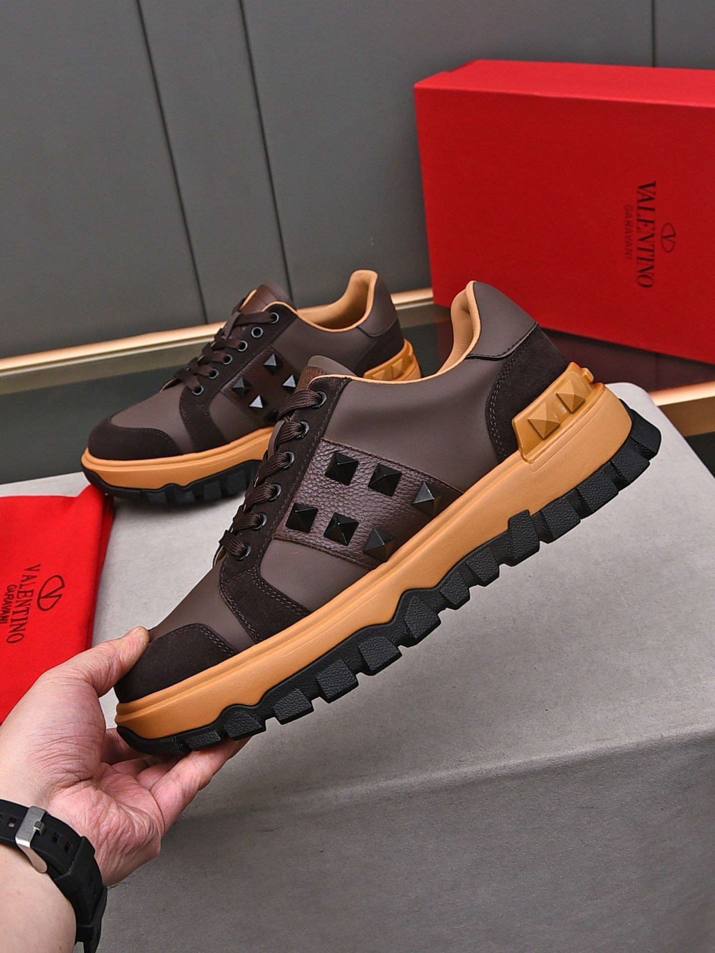 这款鞋子是AAAAA 1:1 质量 (非常棒). 使用了和原版一模一样的材料. 商标部分也保持了和华伦天奴/Valentino一样. 图片拍摄是实物鞋子拍摄, 您所收到的实物保证和我们图片一模一样.
