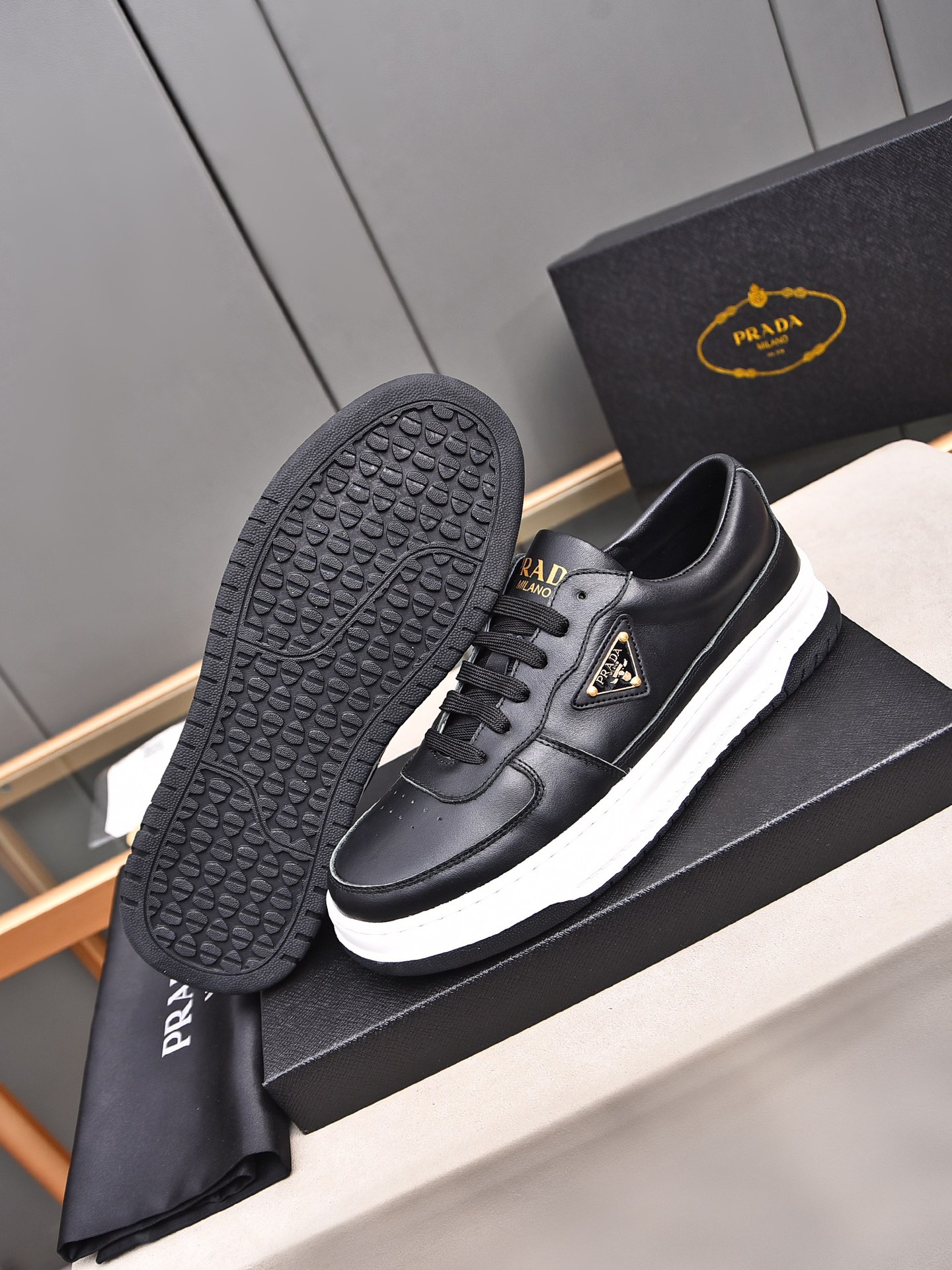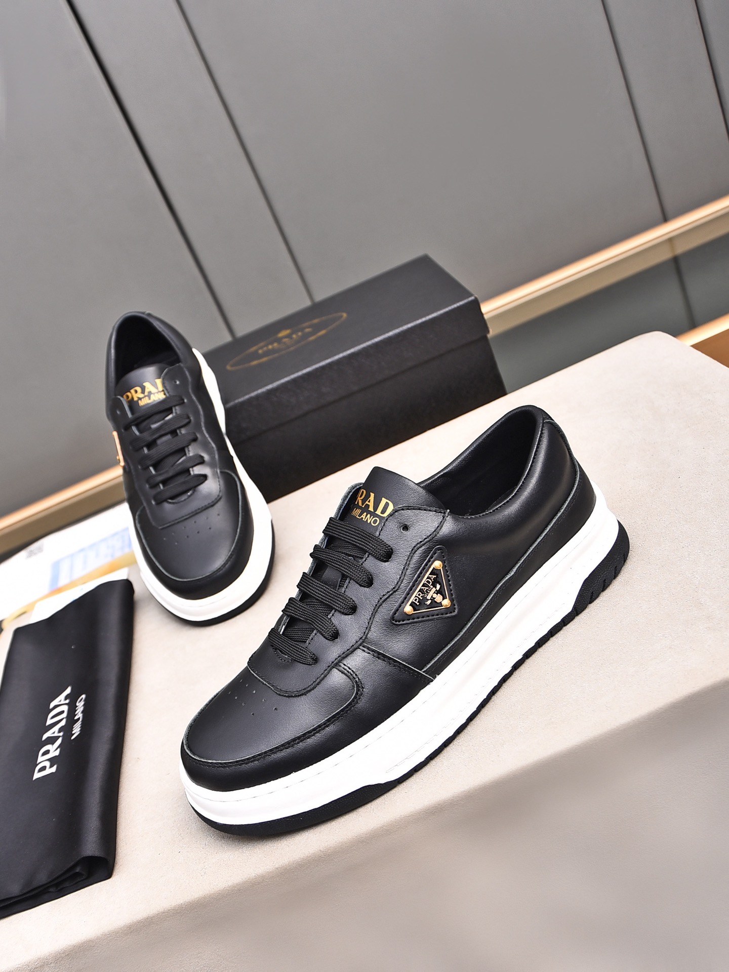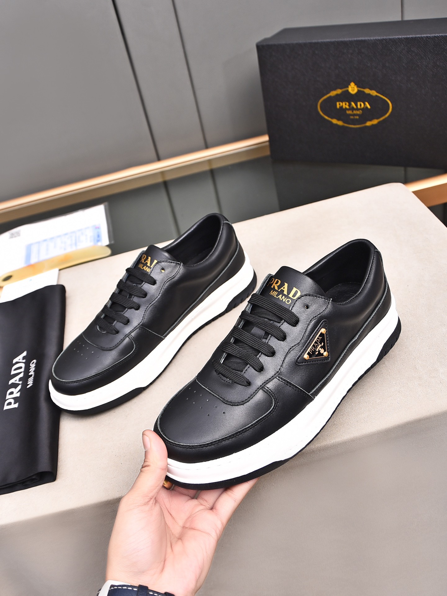 这款鞋子是AAAAA 1:1 质量 (非常棒). 使用了和原版一模一样的材料. 商标部分也保持了和普拉达/Prada一样. 图片拍摄是实物鞋子拍摄, 您所收到的实物保证和我们图片一模一样.