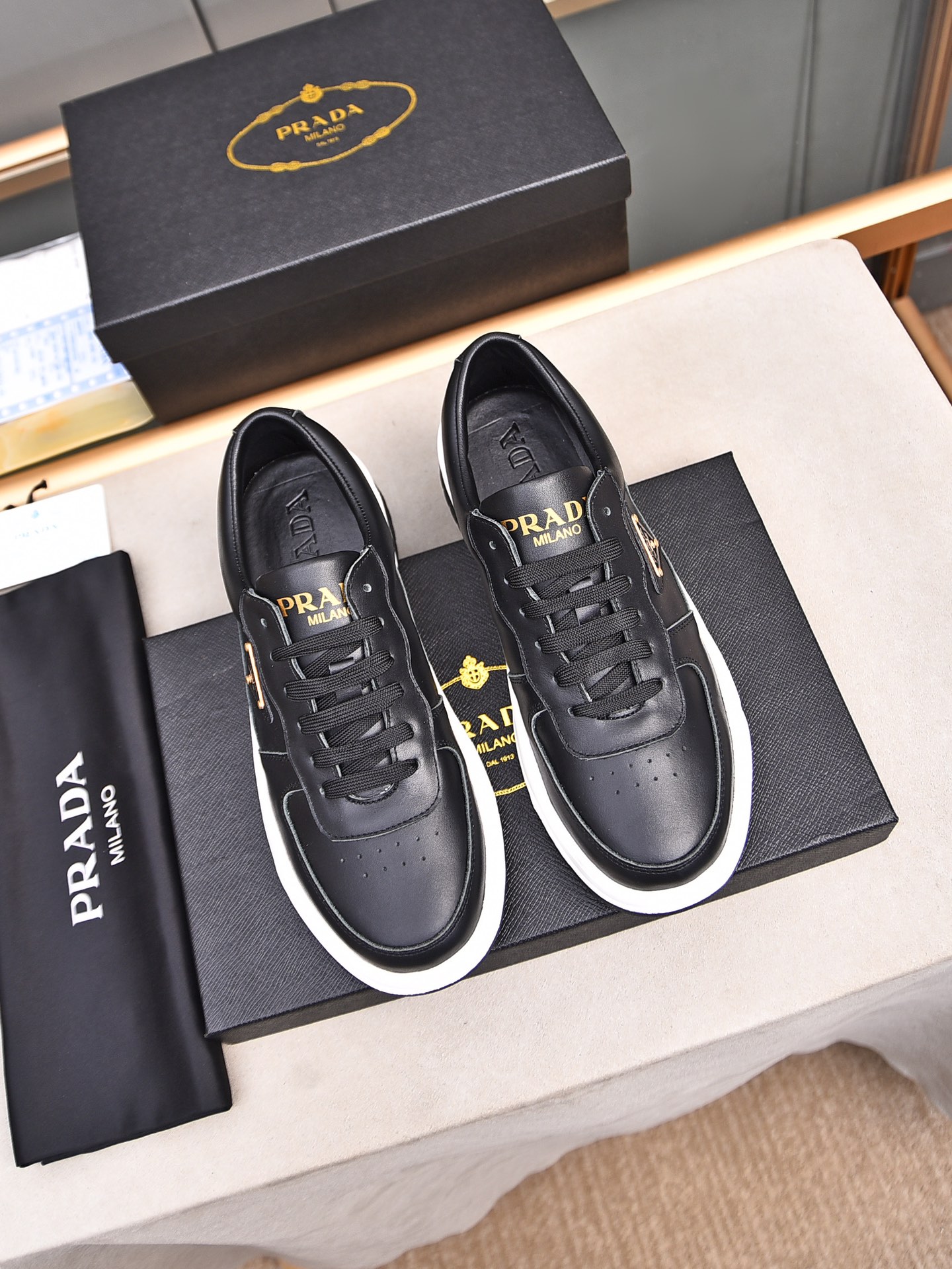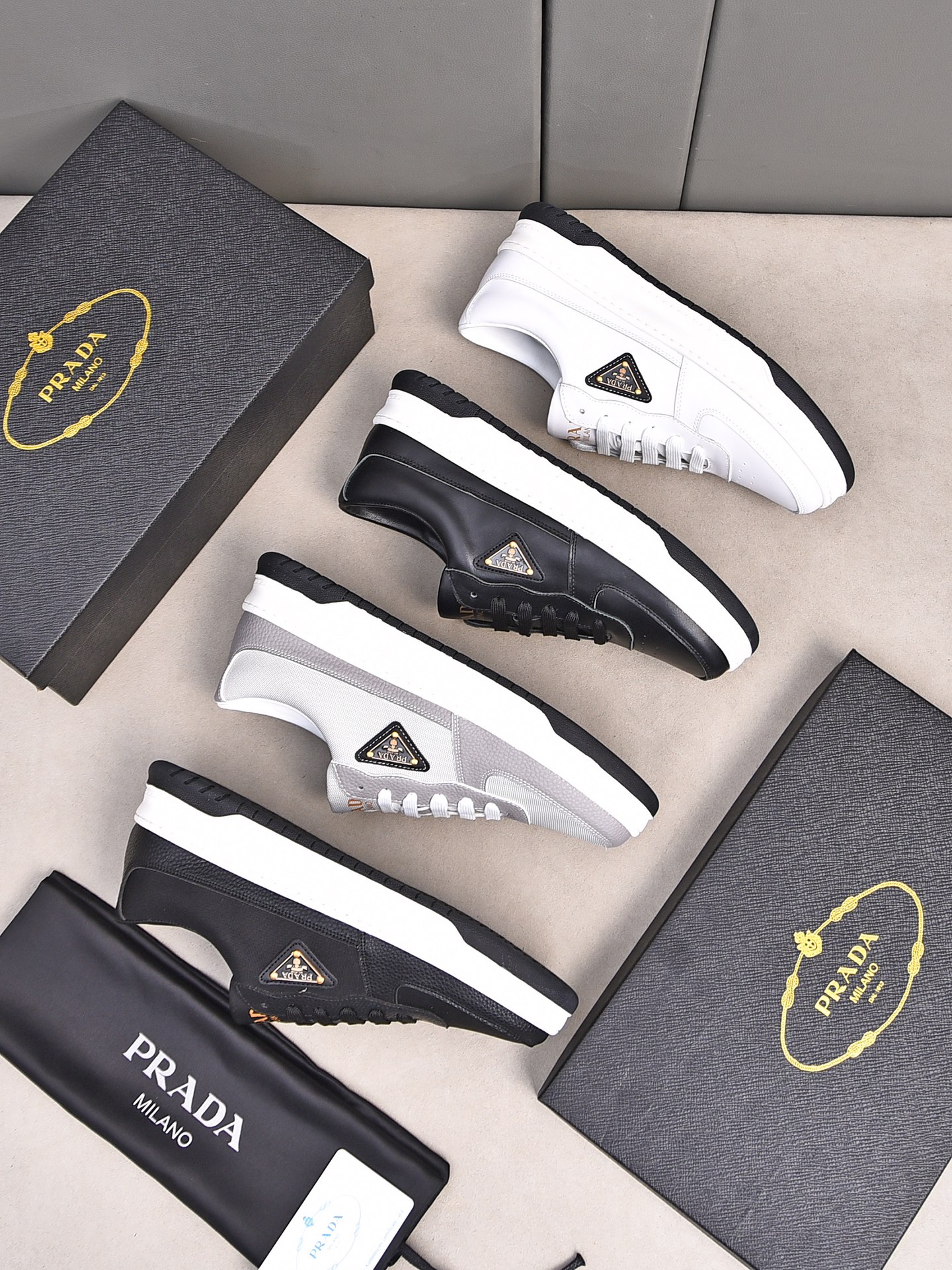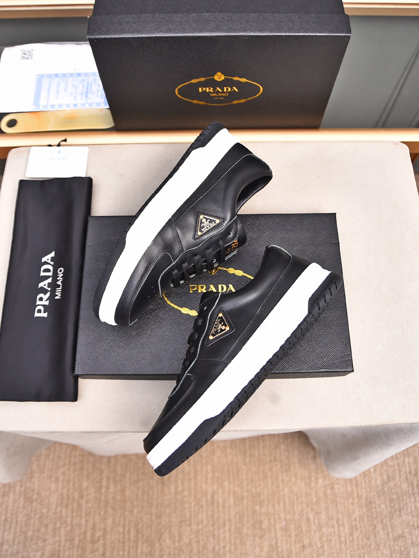 这款鞋子是AAAAA 1:1 质量 (非常棒). 使用了和原版一模一样的材料. 商标部分也保持了和普拉达/Prada一样. 图片拍摄是实物鞋子拍摄, 您所收到的实物保证和我们图片一模一样.