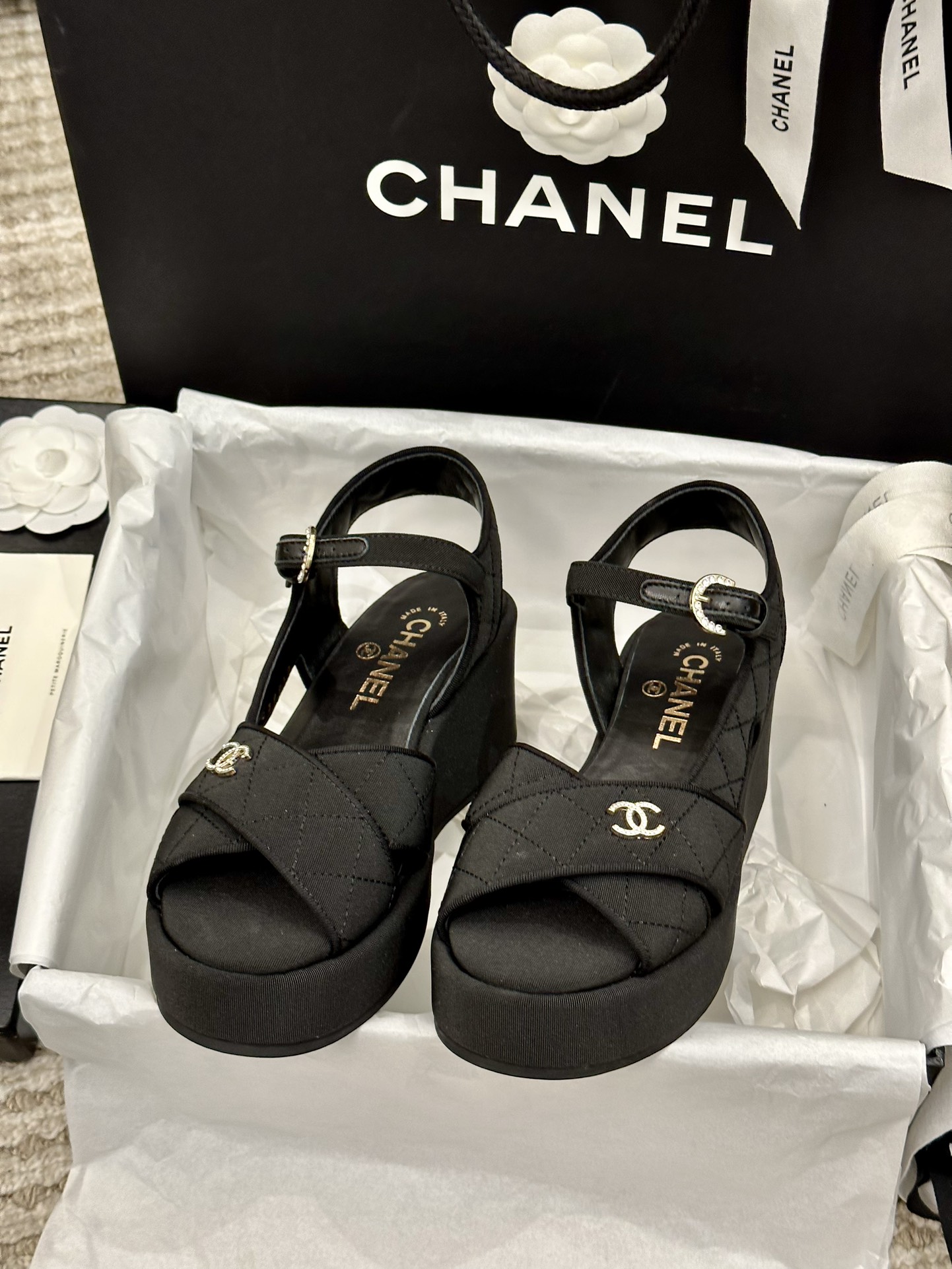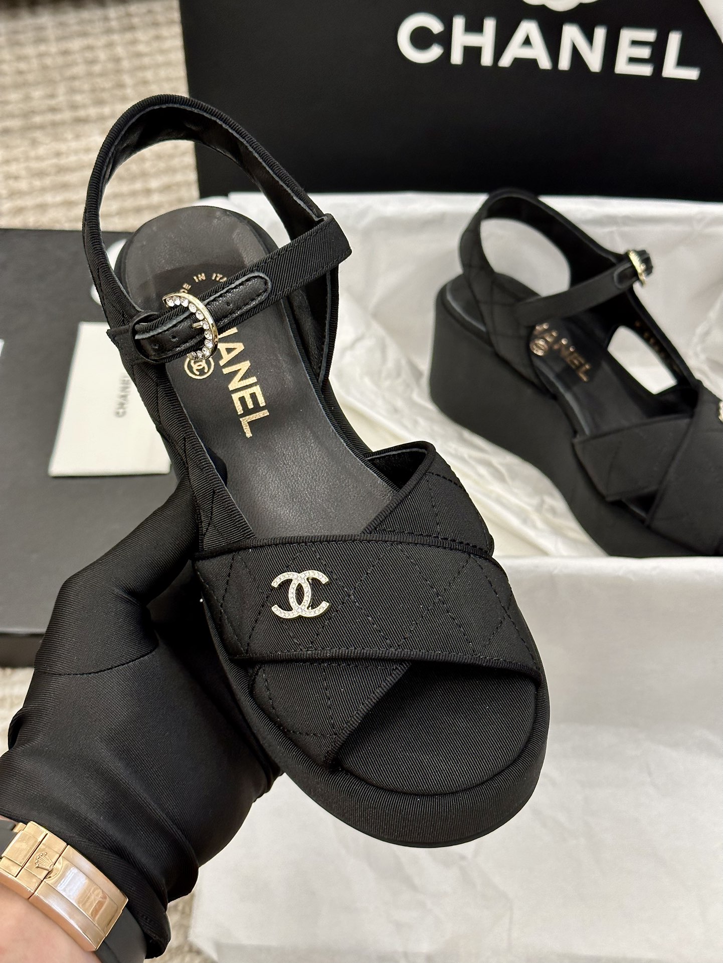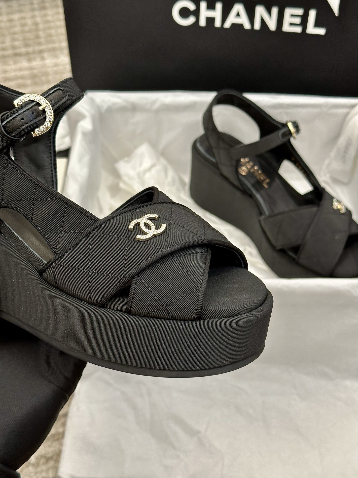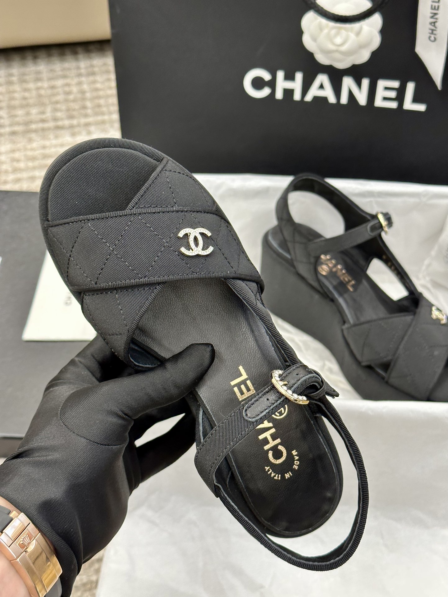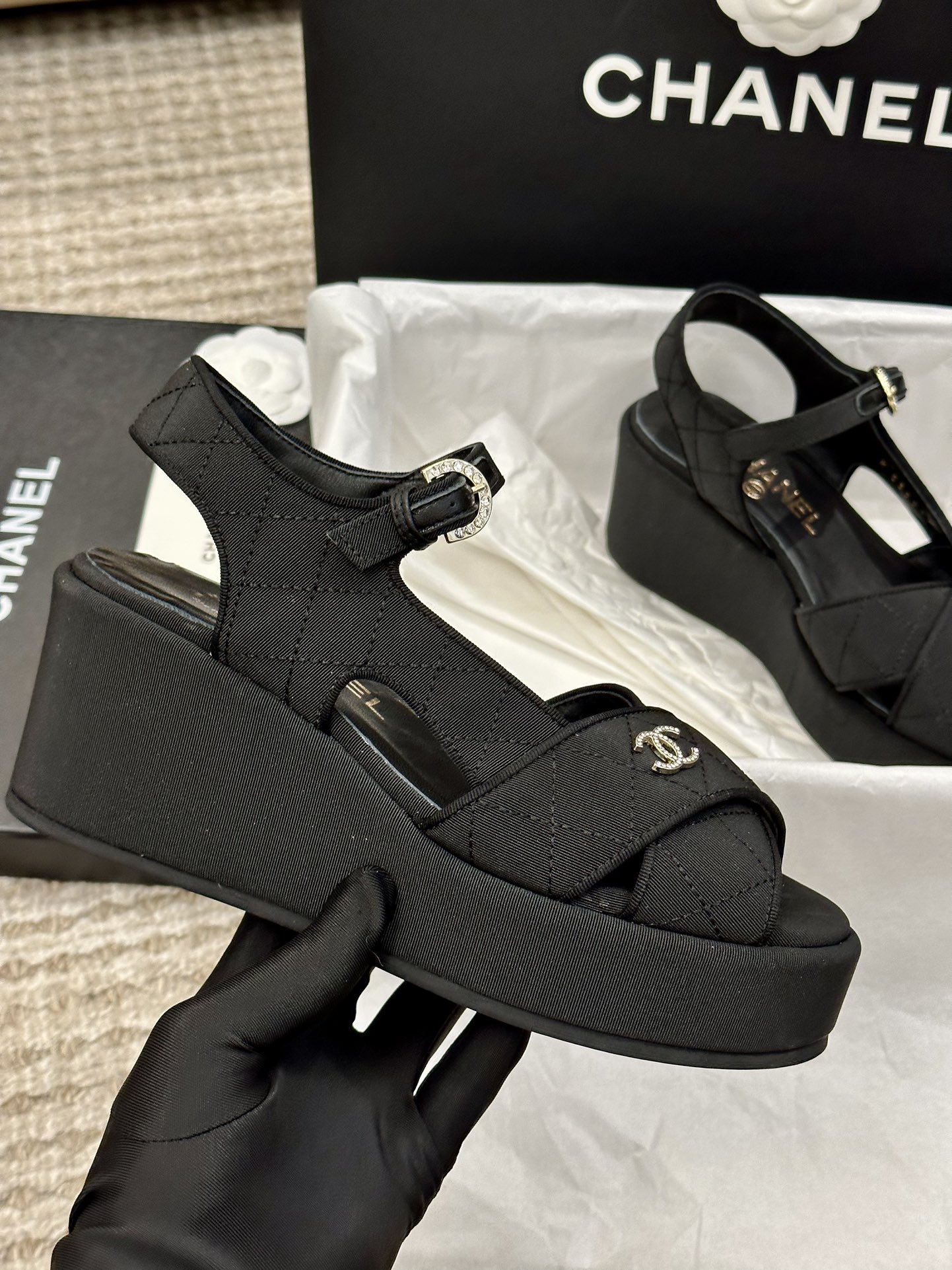 这款鞋子是AAAAA 1:1 质量 (非常棒). 使用了和原版一模一样的材料. 商标部分也保持了和香奈儿/Chanel一样. 图片拍摄是实物鞋子拍摄, 您所收到的实物保证和我们图片一模一样.