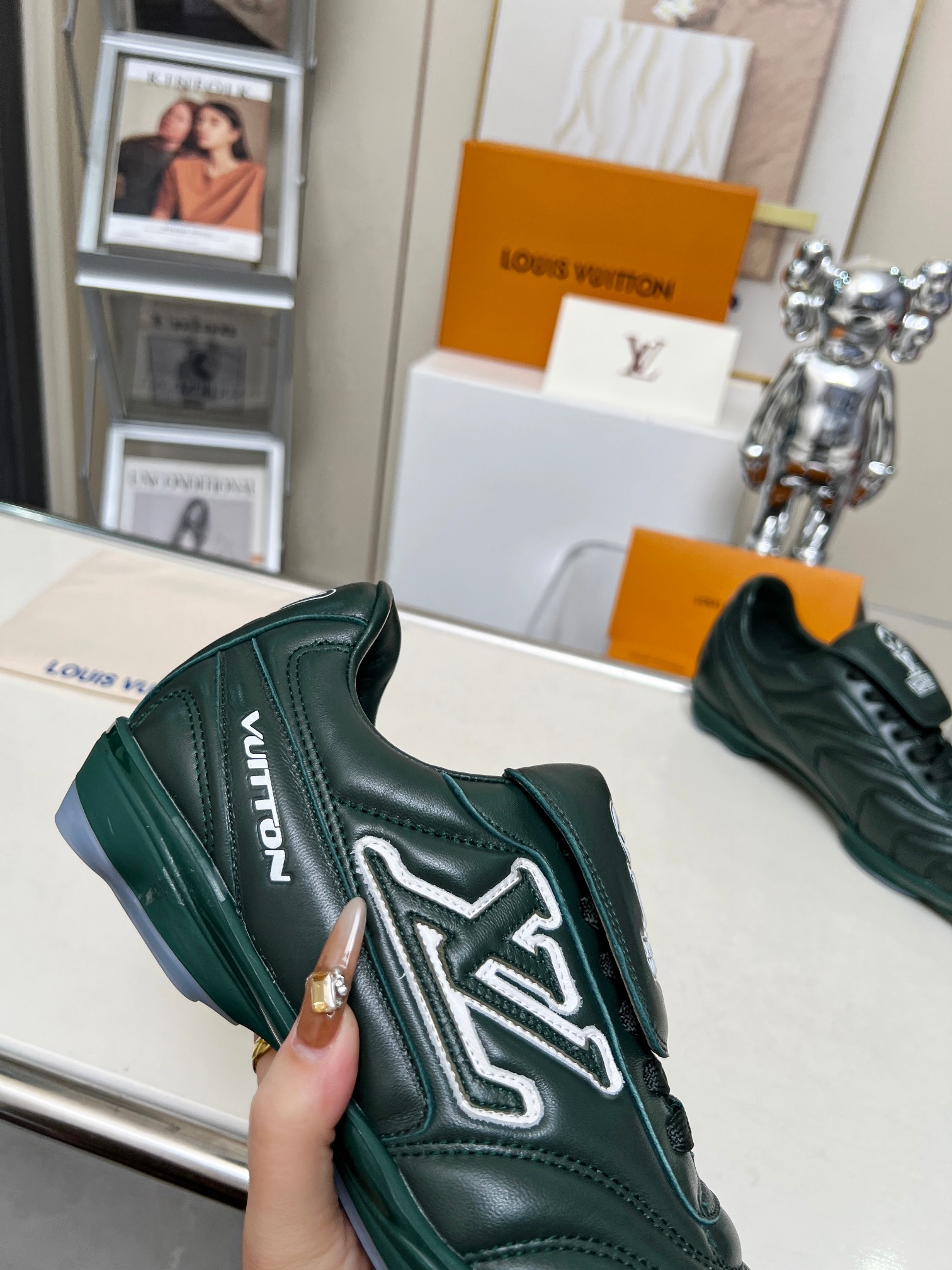 这款鞋子是AAAAA 1:1 质量 (非常棒). 使用了和原版一模一样的材料. 商标部分也保持了和路易威登/Louis Vuitton一样. 图片拍摄是实物鞋子拍摄, 您所收到的实物保证和我们图片一模一样.