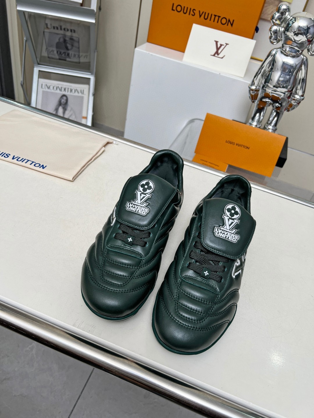 这款鞋子是AAAAA 1:1 质量 (非常棒). 使用了和原版一模一样的材料. 商标部分也保持了和路易威登/Louis Vuitton一样. 图片拍摄是实物鞋子拍摄, 您所收到的实物保证和我们图片一模一样.