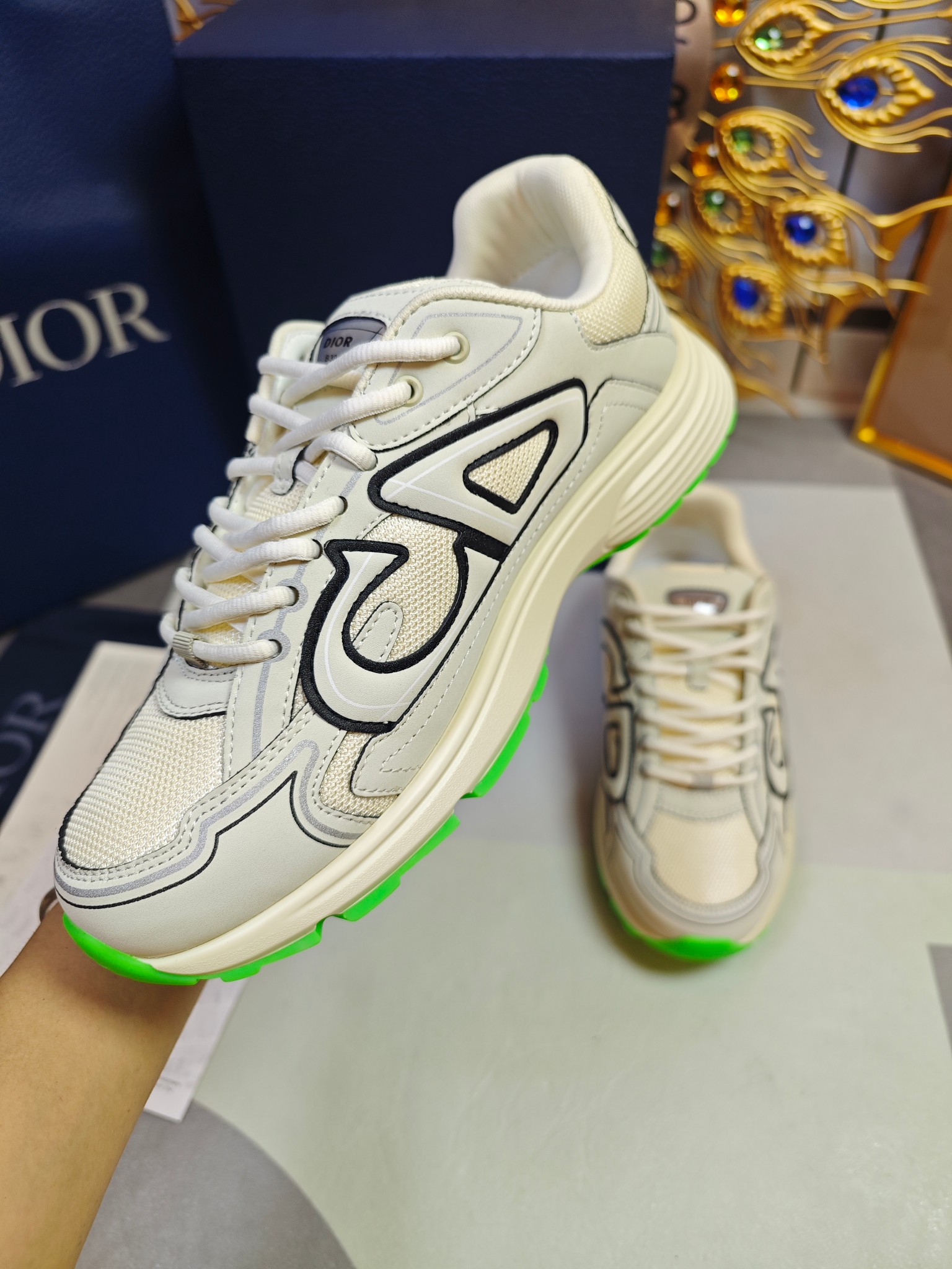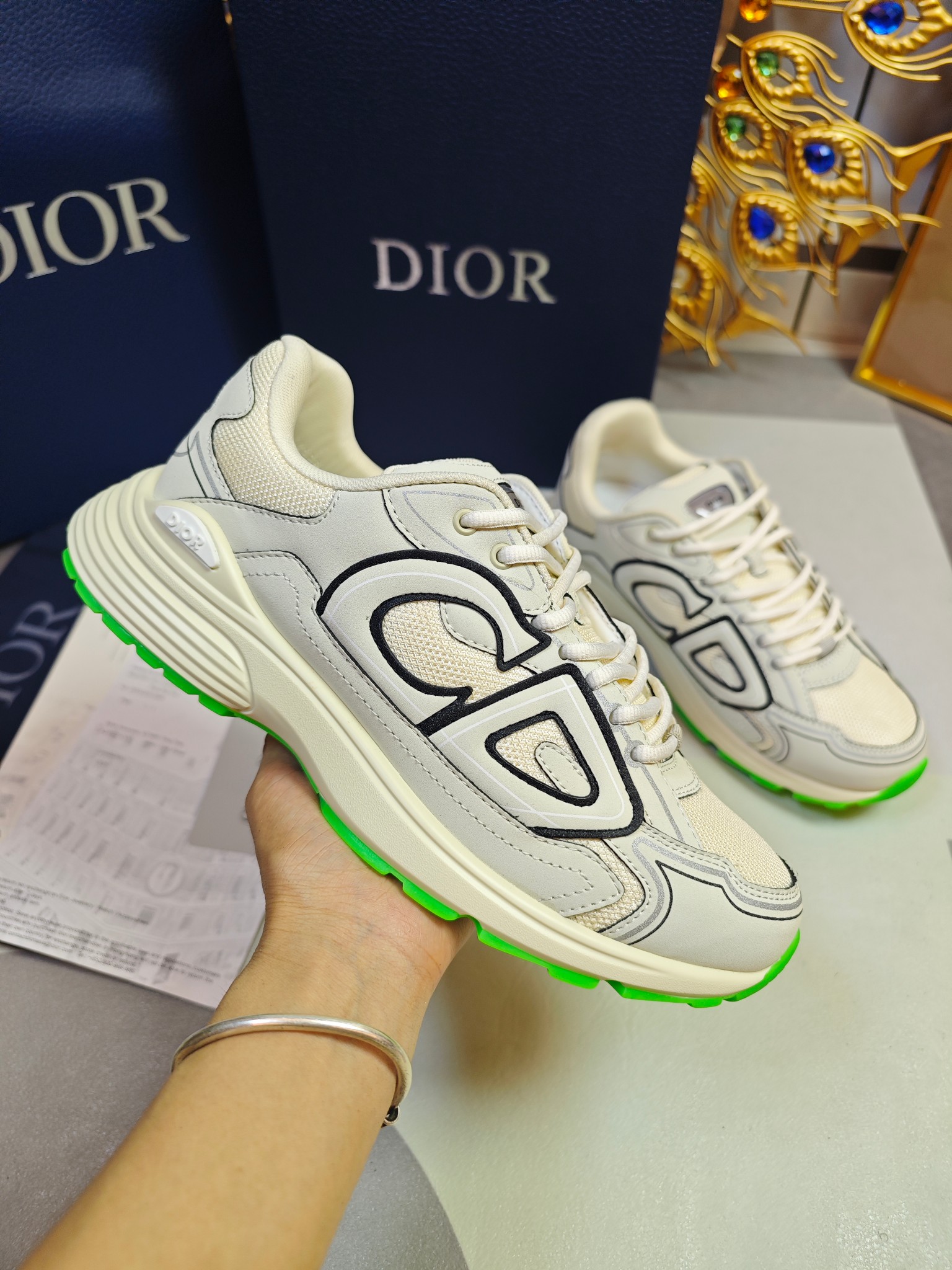 这款鞋子是AAAAA 1:1 质量 (非常棒). 使用了和原版一模一样的材料. 商标部分也保持了和迪奥/Dior一样. 图片拍摄是实物鞋子拍摄, 您所收到的实物保证和我们图片一模一样.
