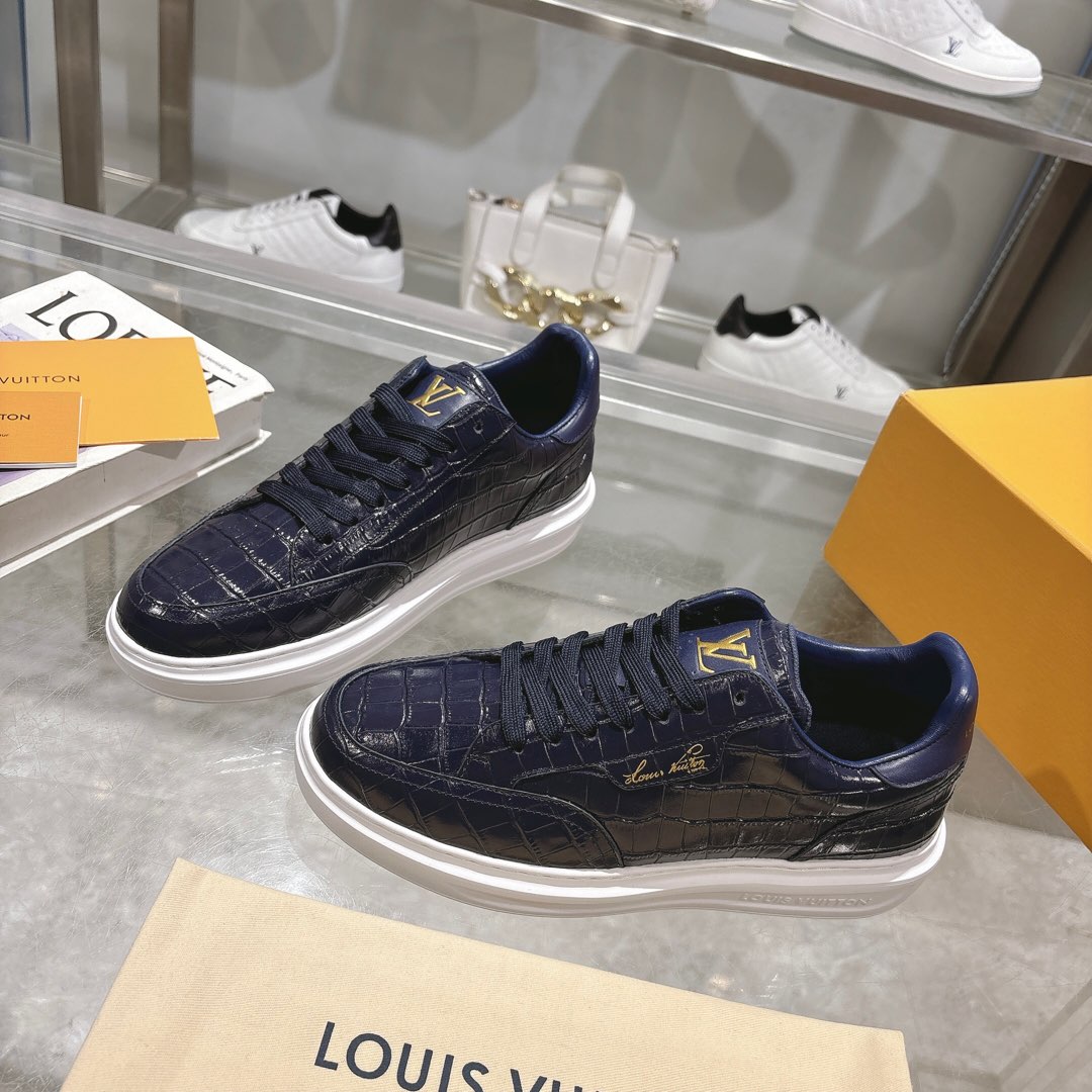 这款鞋子是AAAAA 1:1 质量 (非常棒). 使用了和原版一模一样的材料. 商标部分也保持了和路易威登/Louis Vuitton一样. 图片拍摄是实物鞋子拍摄, 您所收到的实物保证和我们图片一模一样.