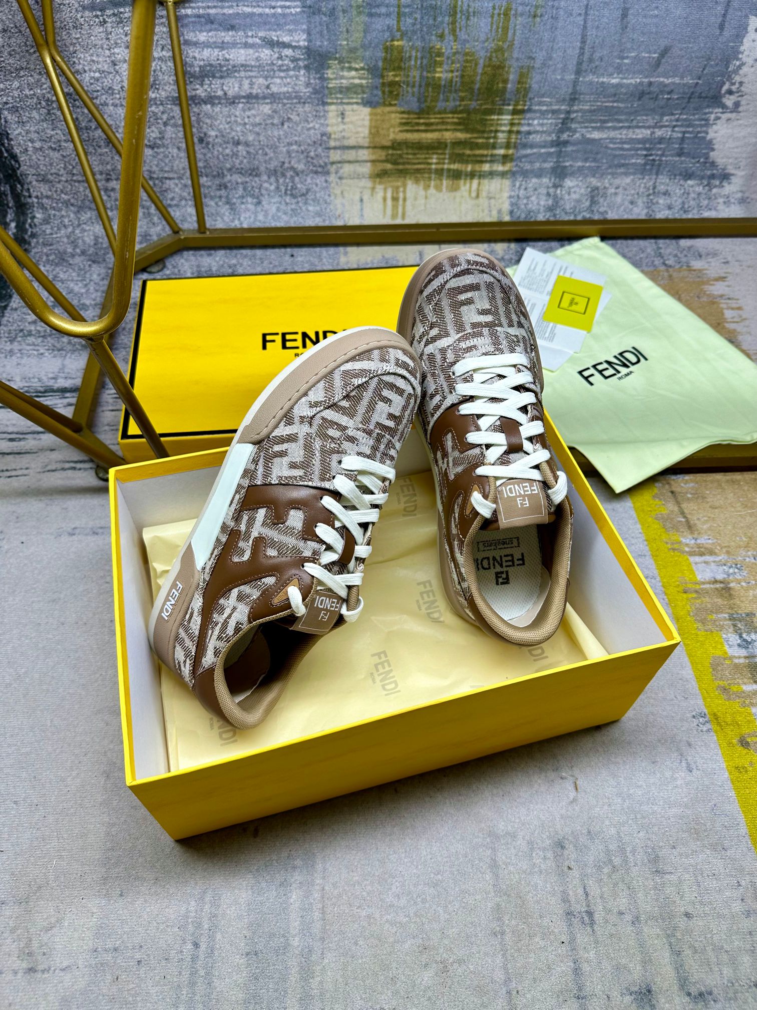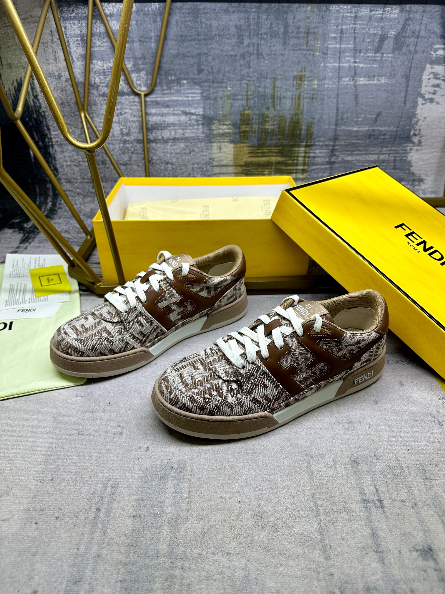 这款鞋子是AAAAA 1:1 质量 (非常棒). 使用了和原版一模一样的材料. 商标部分也保持了和芬迪/Fendi一样. 图片拍摄是实物鞋子拍摄, 您所收到的实物保证和我们图片一模一样.