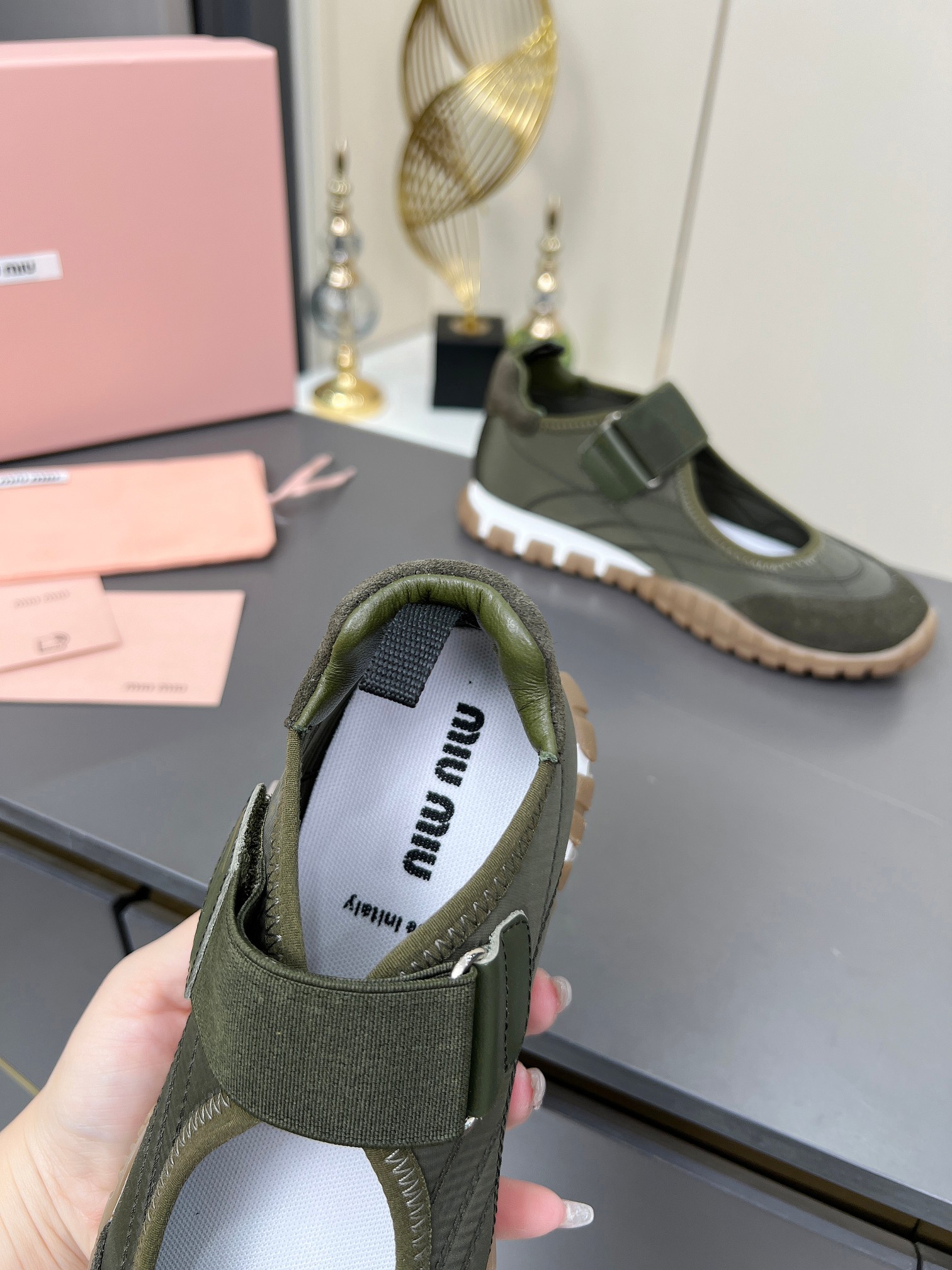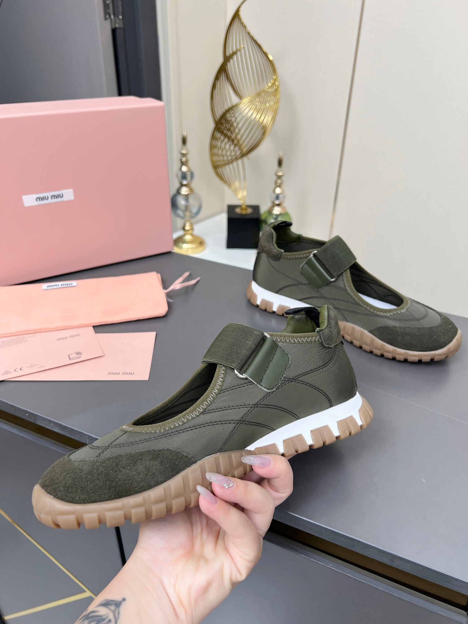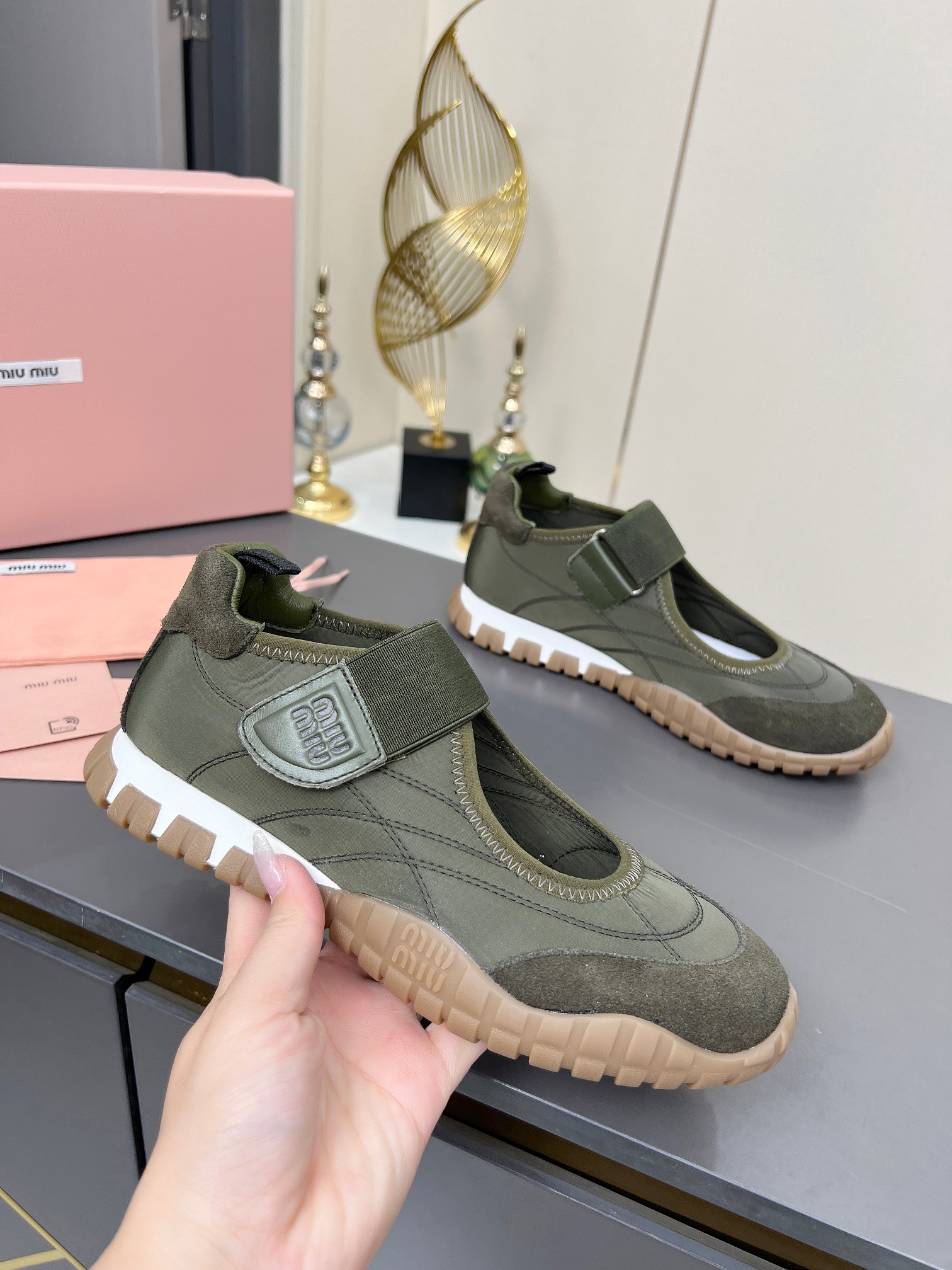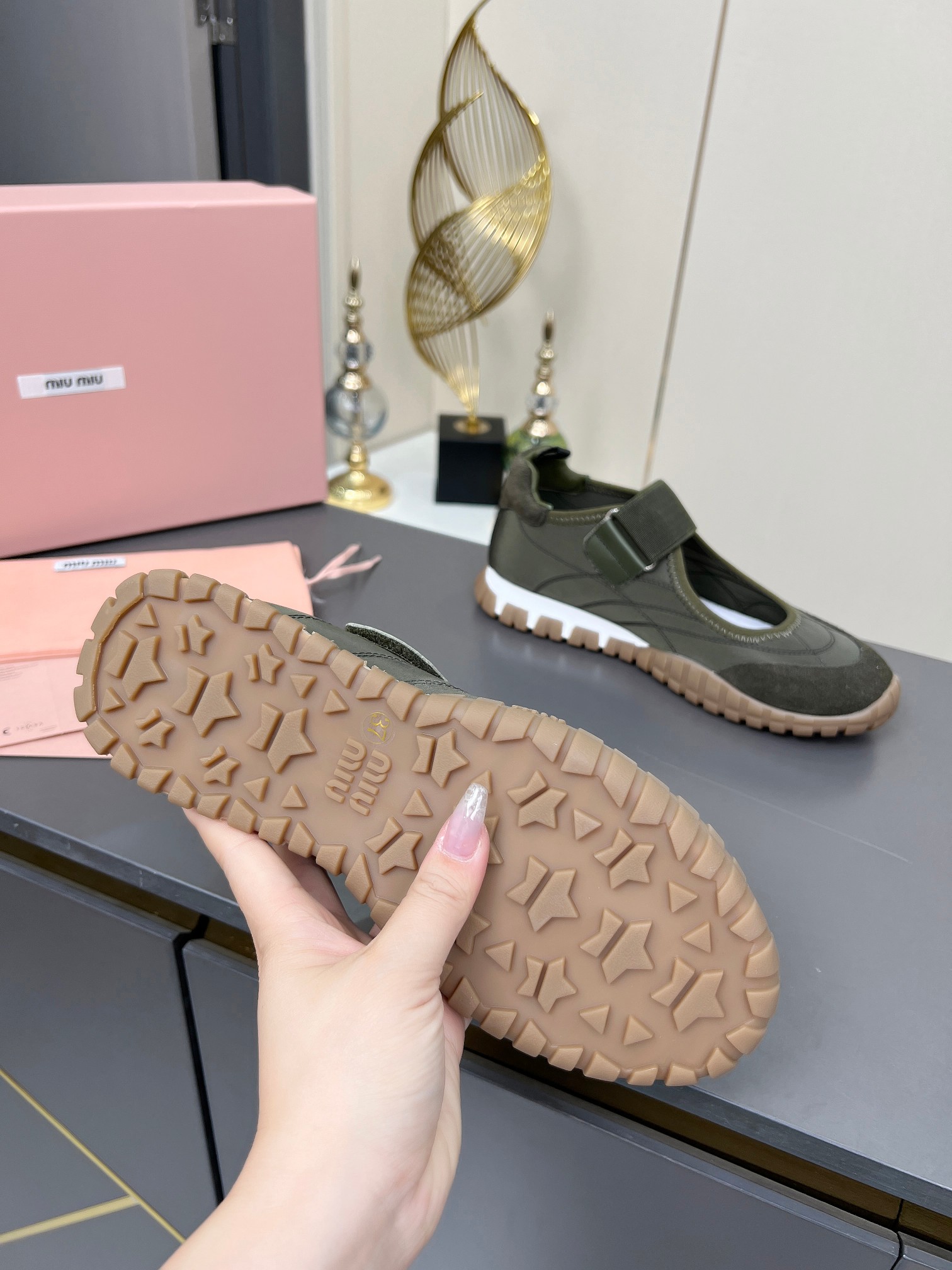 这款鞋子是AAAAA 1:1 质量 (非常棒). 使用了和原版一模一样的材料. 商标部分也保持了和缪缪/Miu Miu一样. 图片拍摄是实物鞋子拍摄, 您所收到的实物保证和我们图片一模一样.