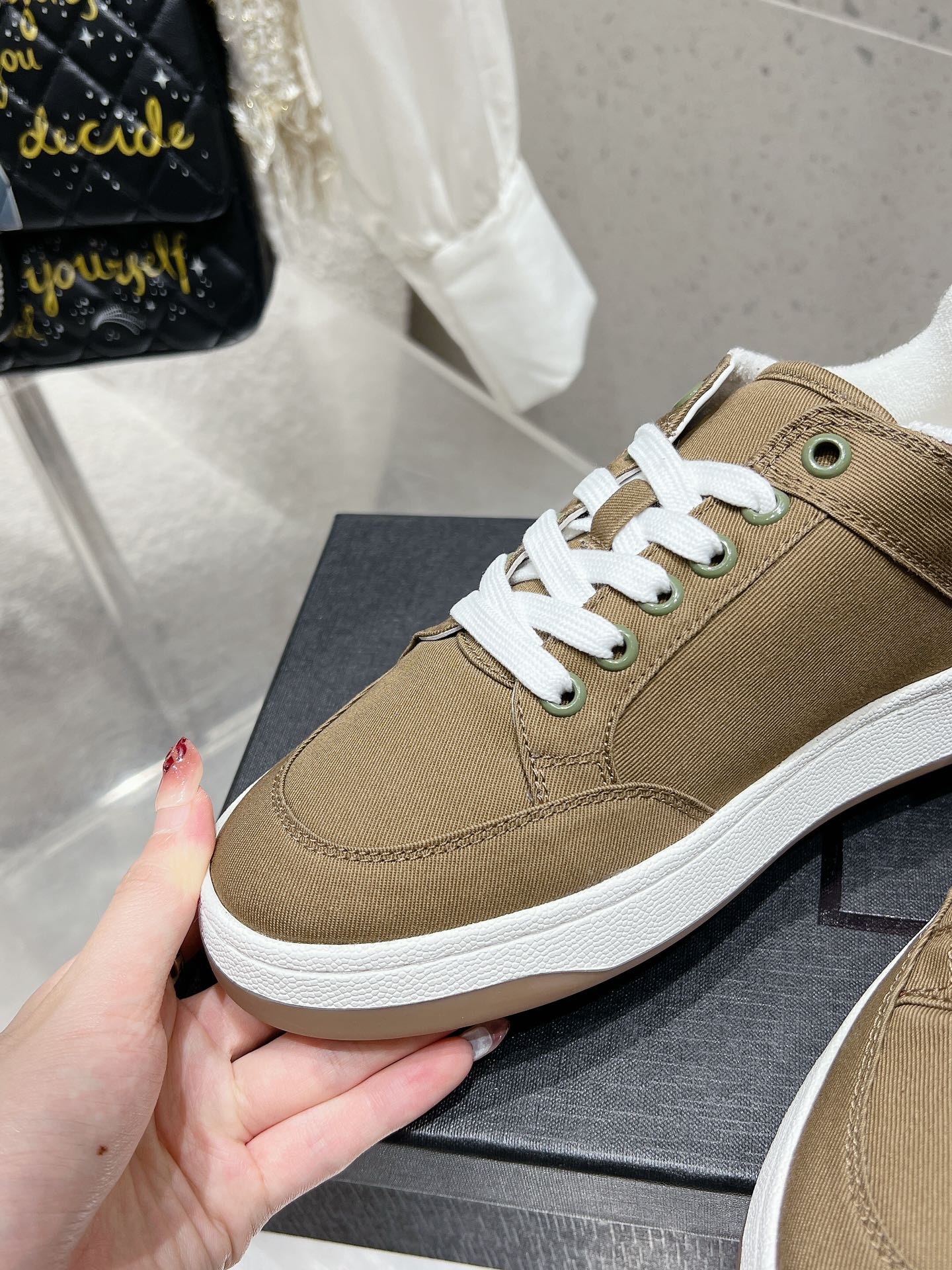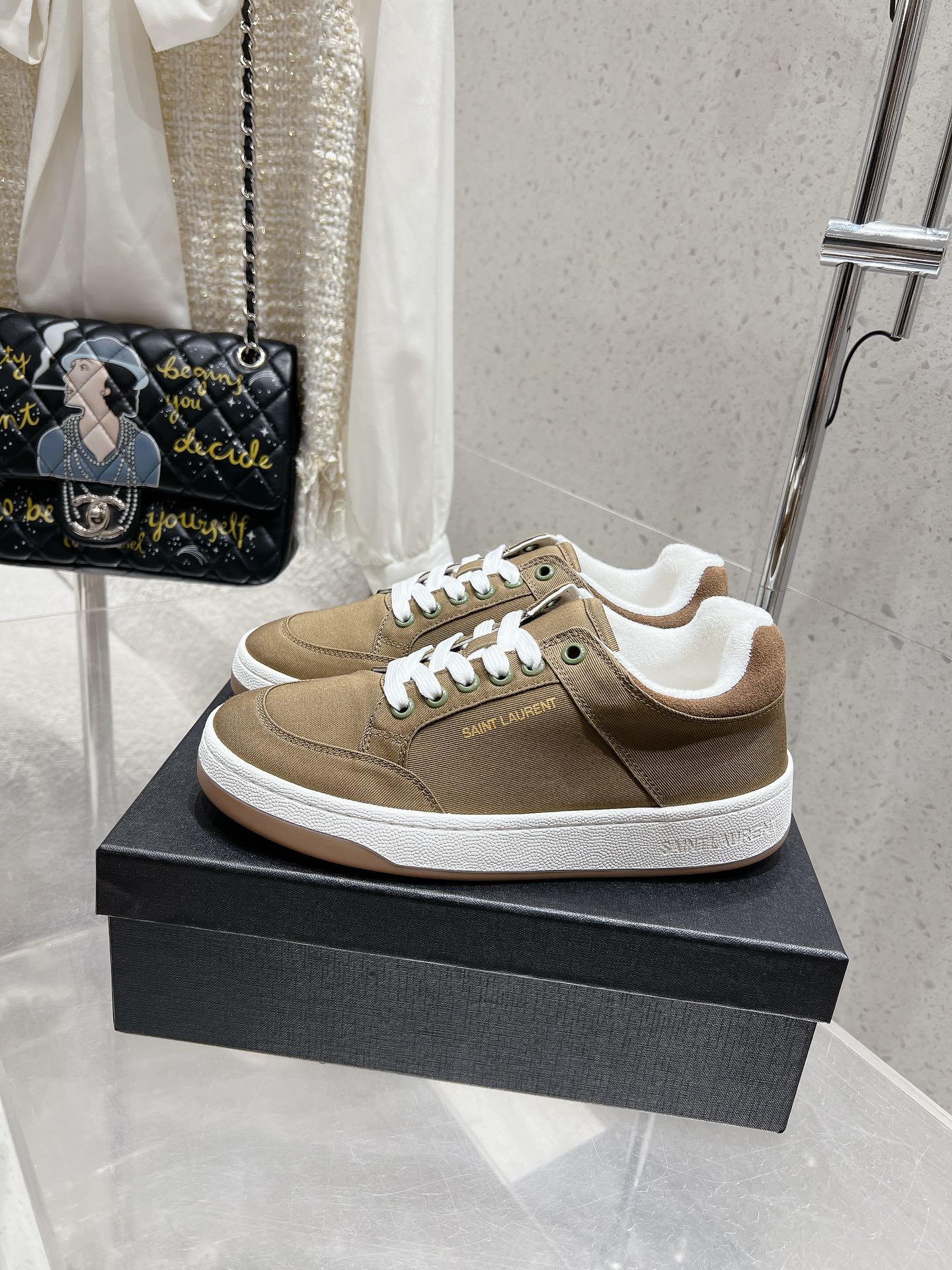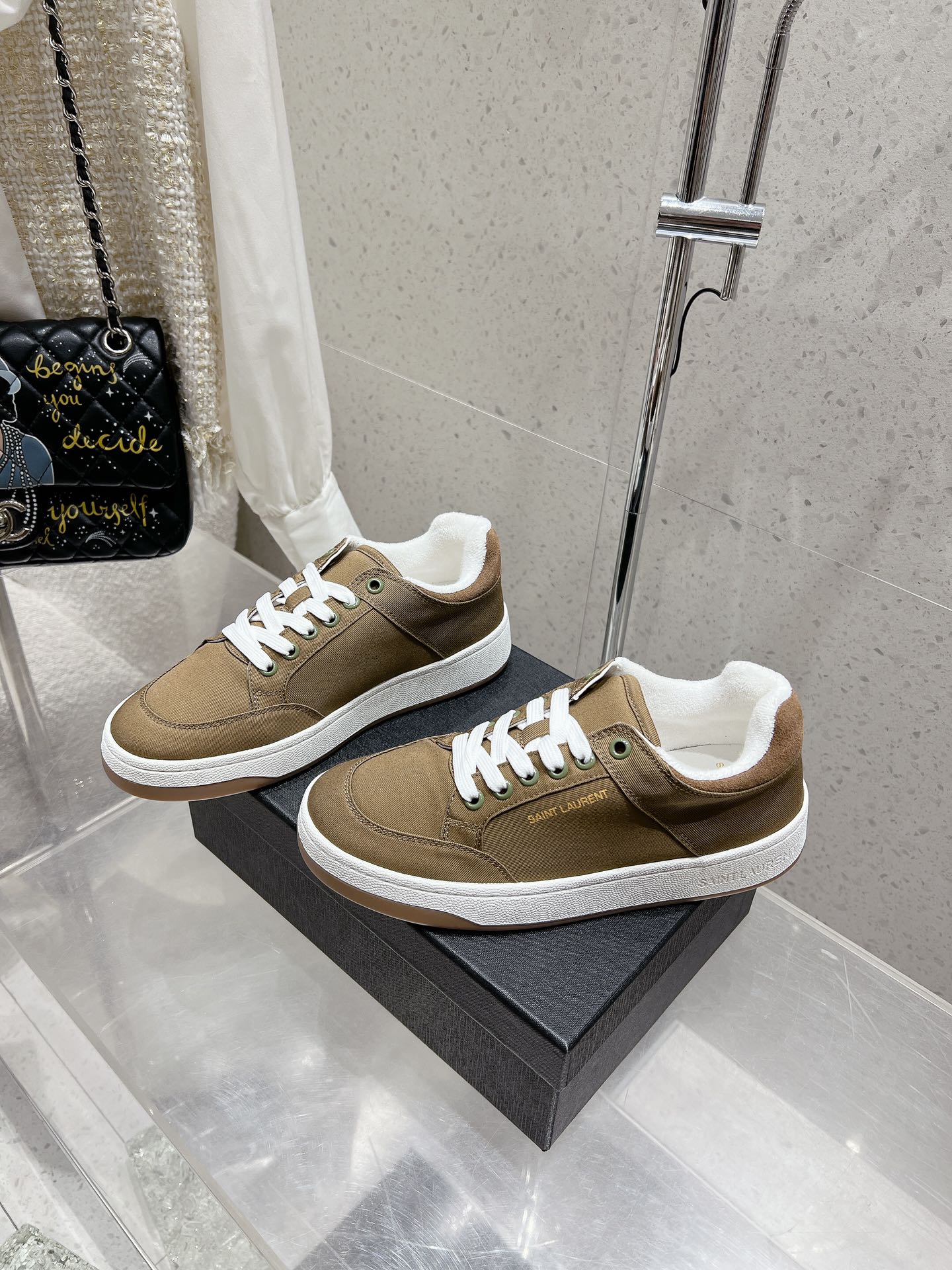这款鞋子是AAAAA 1:1 质量 (非常棒). 使用了和原版一模一样的材料. 商标部分也保持了和圣罗兰/Saint Laurent一样. 图片拍摄是实物鞋子拍摄, 您所收到的实物保证和我们图片一模一样.