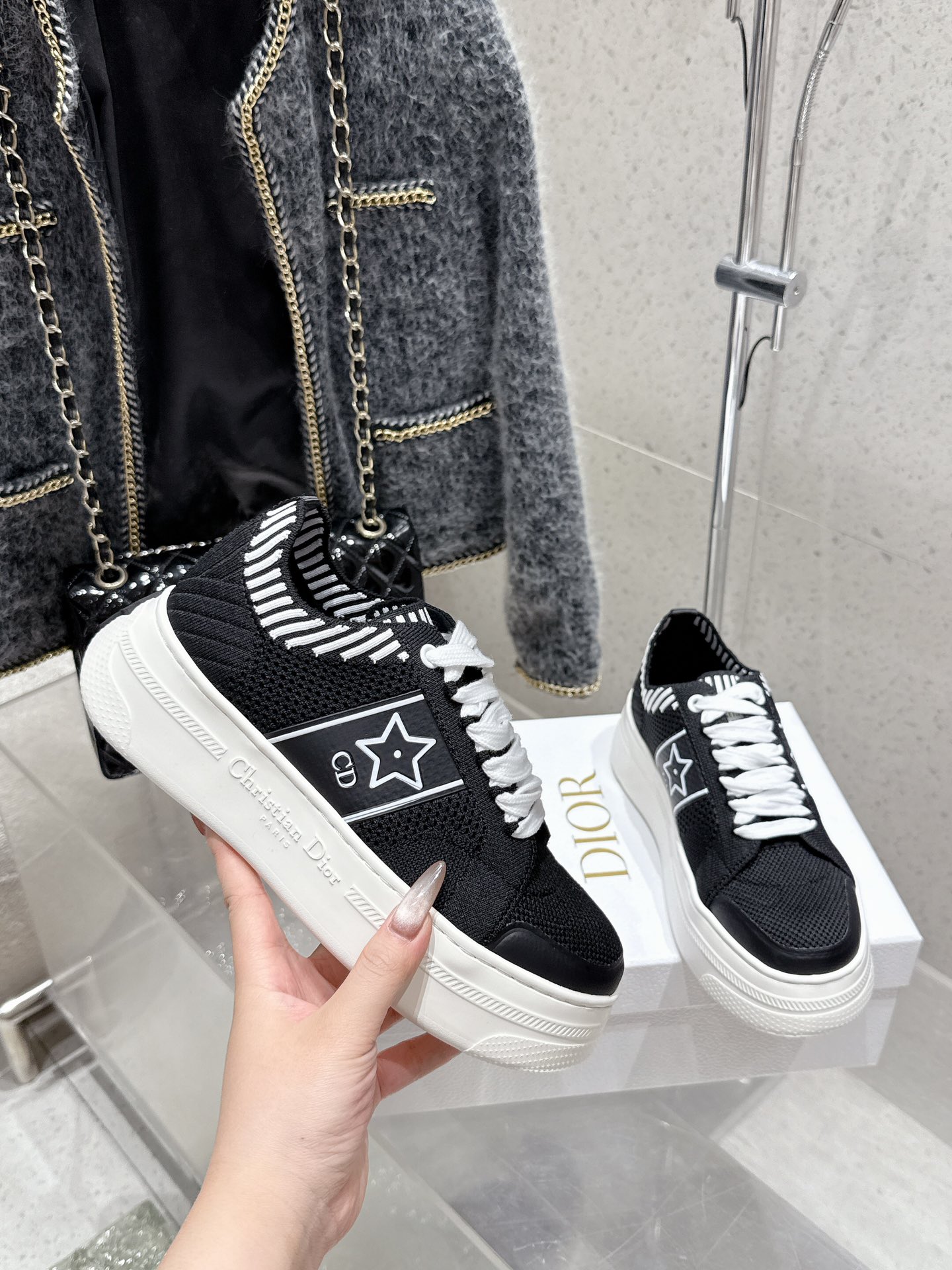 这款鞋子是AAAAA 1:1 质量 (非常棒). 使用了和原版一模一样的材料. 商标部分也保持了和迪奥/Dior一样. 图片拍摄是实物鞋子拍摄, 您所收到的实物保证和我们图片一模一样.