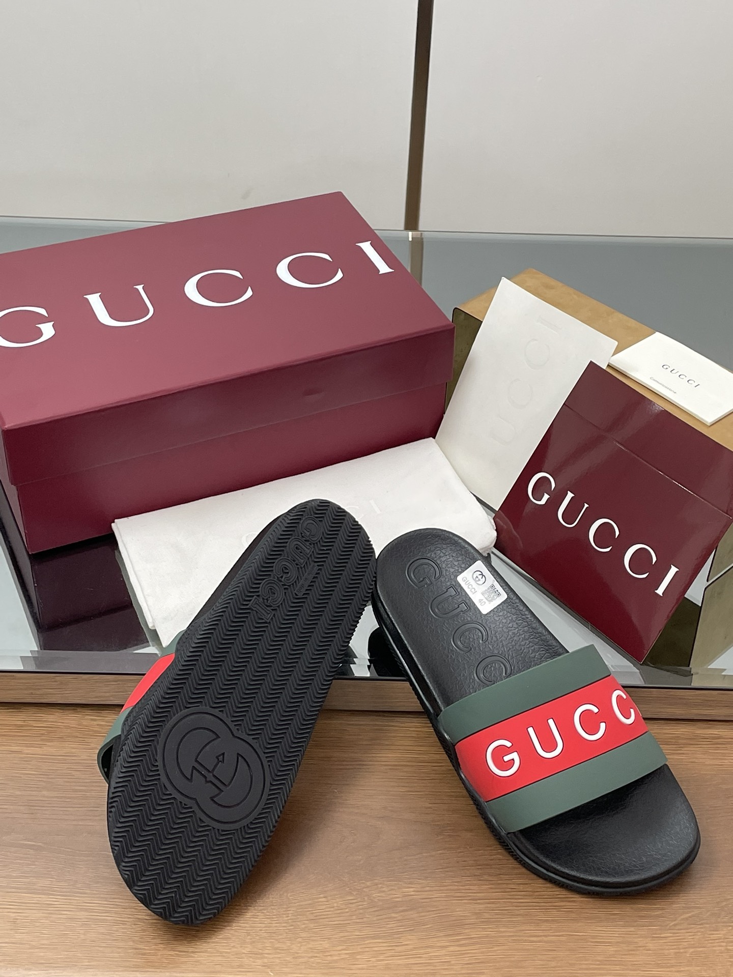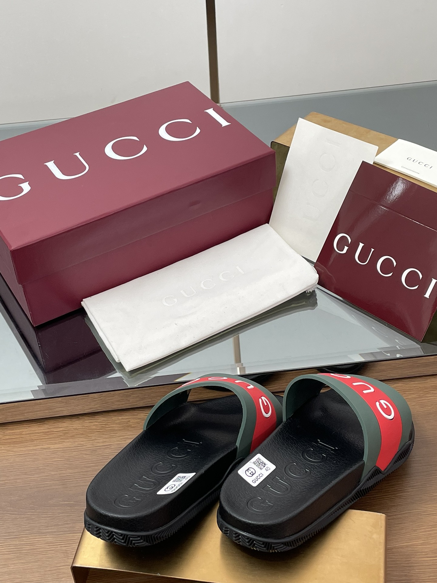 这款鞋子是AAAAA 1:1 质量 (非常棒). 使用了和原版一模一样的材料. 商标部分也保持了和古奇/Gucci一样. 图片拍摄是实物鞋子拍摄, 您所收到的实物保证和我们图片一模一样.