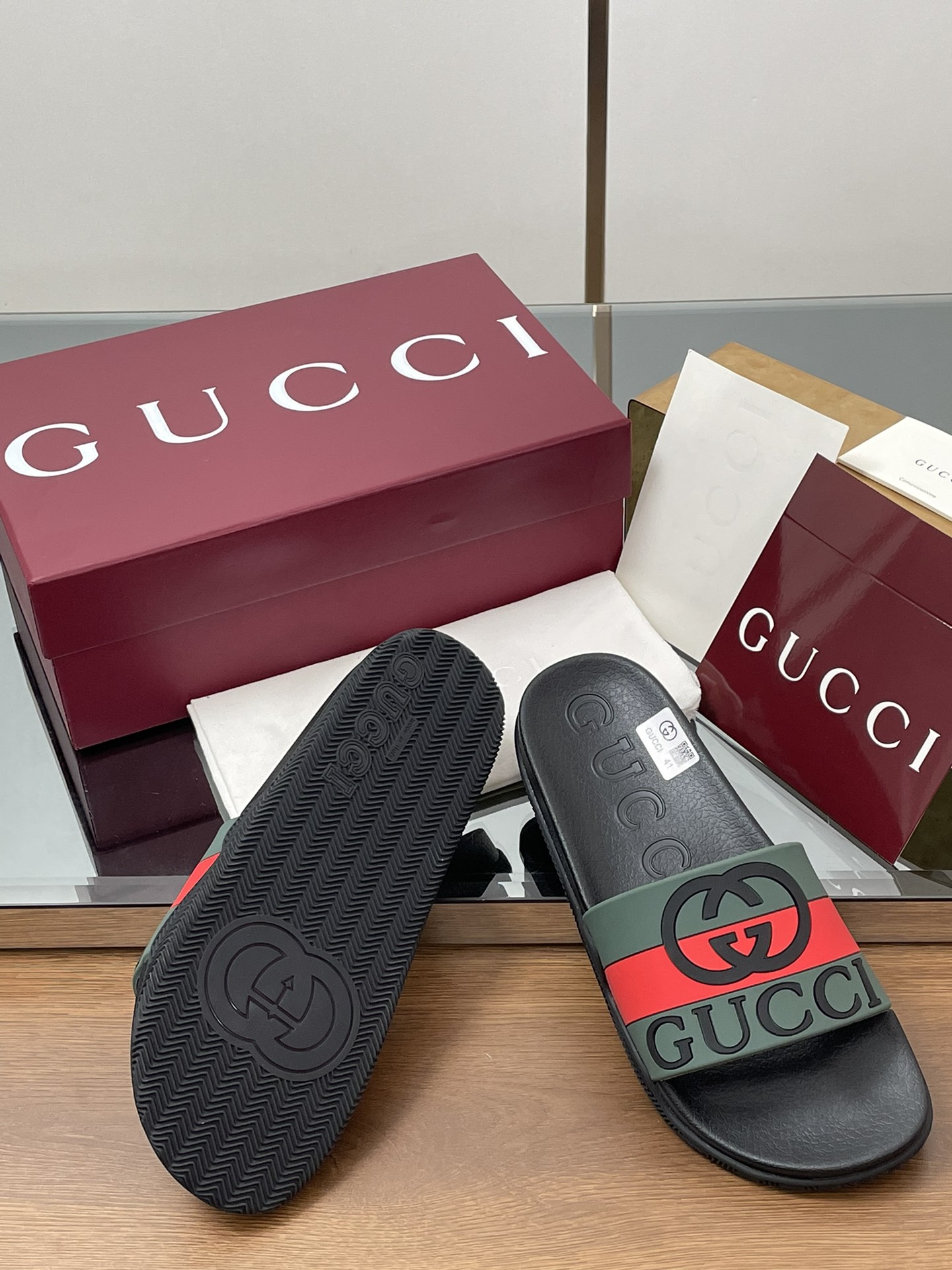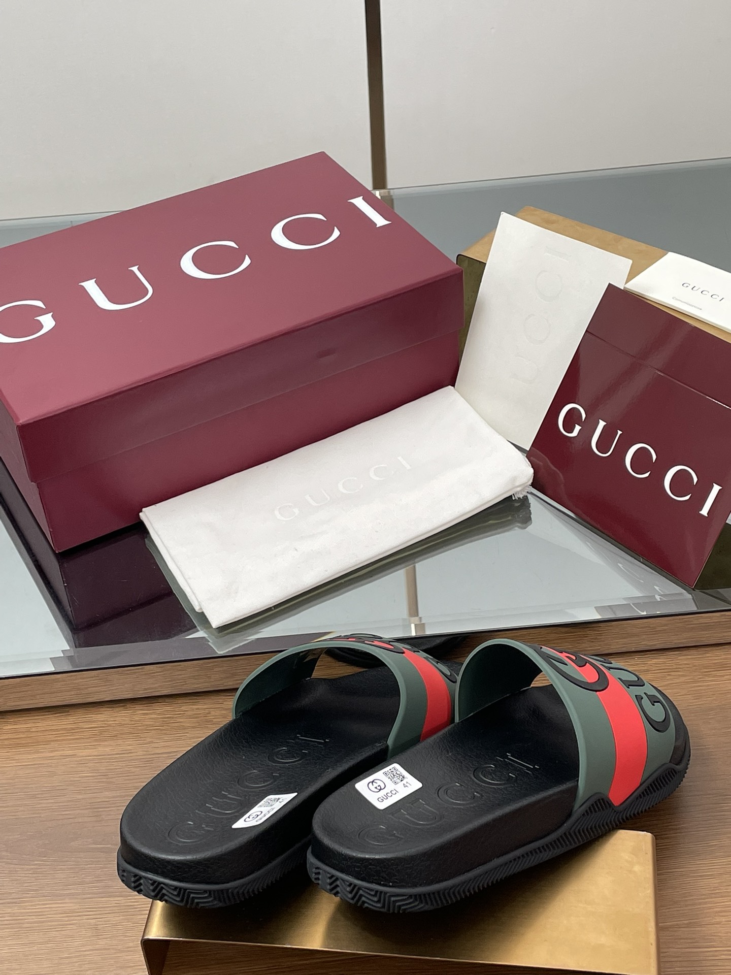 这款鞋子是AAAAA 1:1 质量 (非常棒). 使用了和原版一模一样的材料. 商标部分也保持了和古奇/Gucci一样. 图片拍摄是实物鞋子拍摄, 您所收到的实物保证和我们图片一模一样.