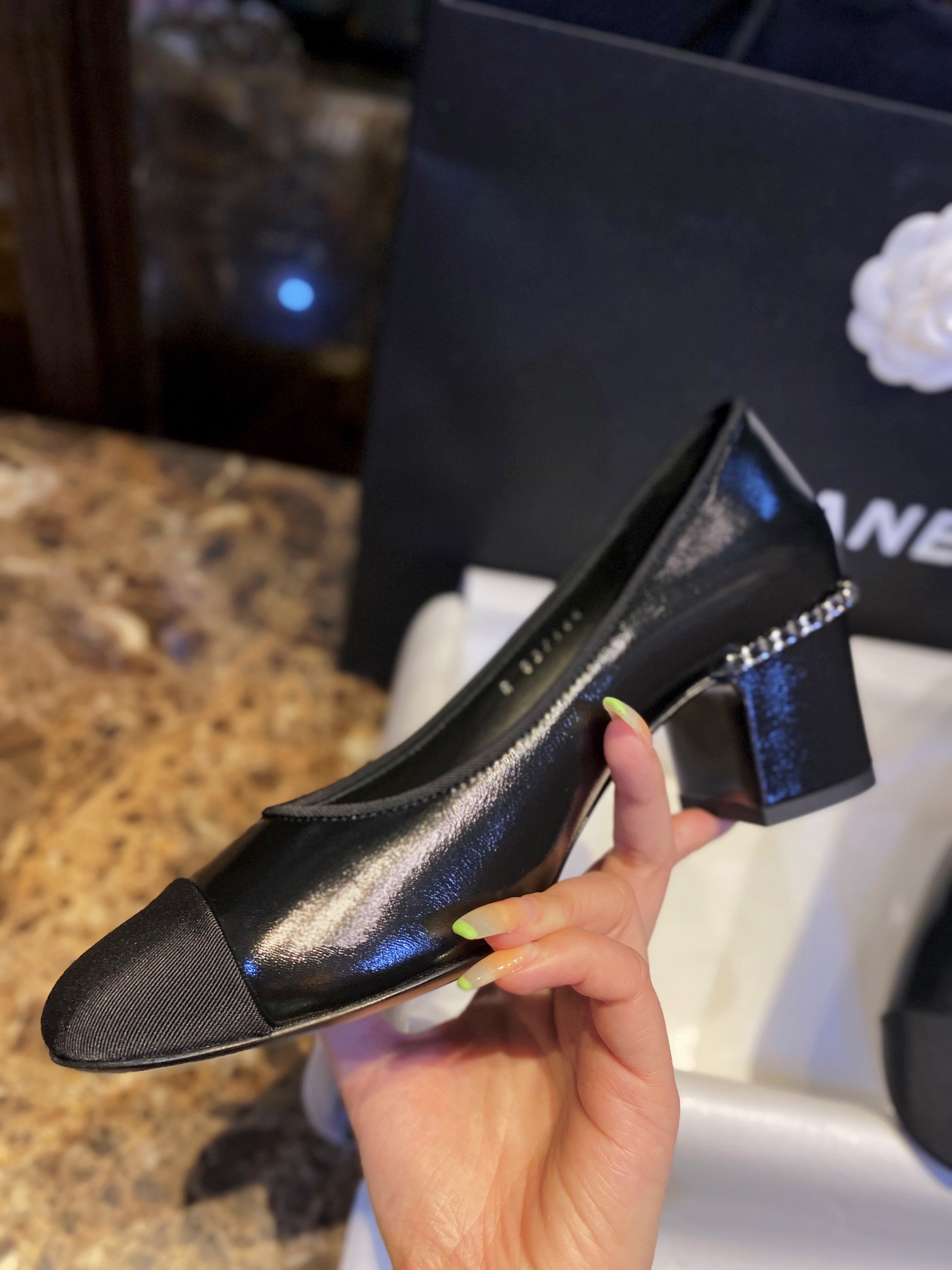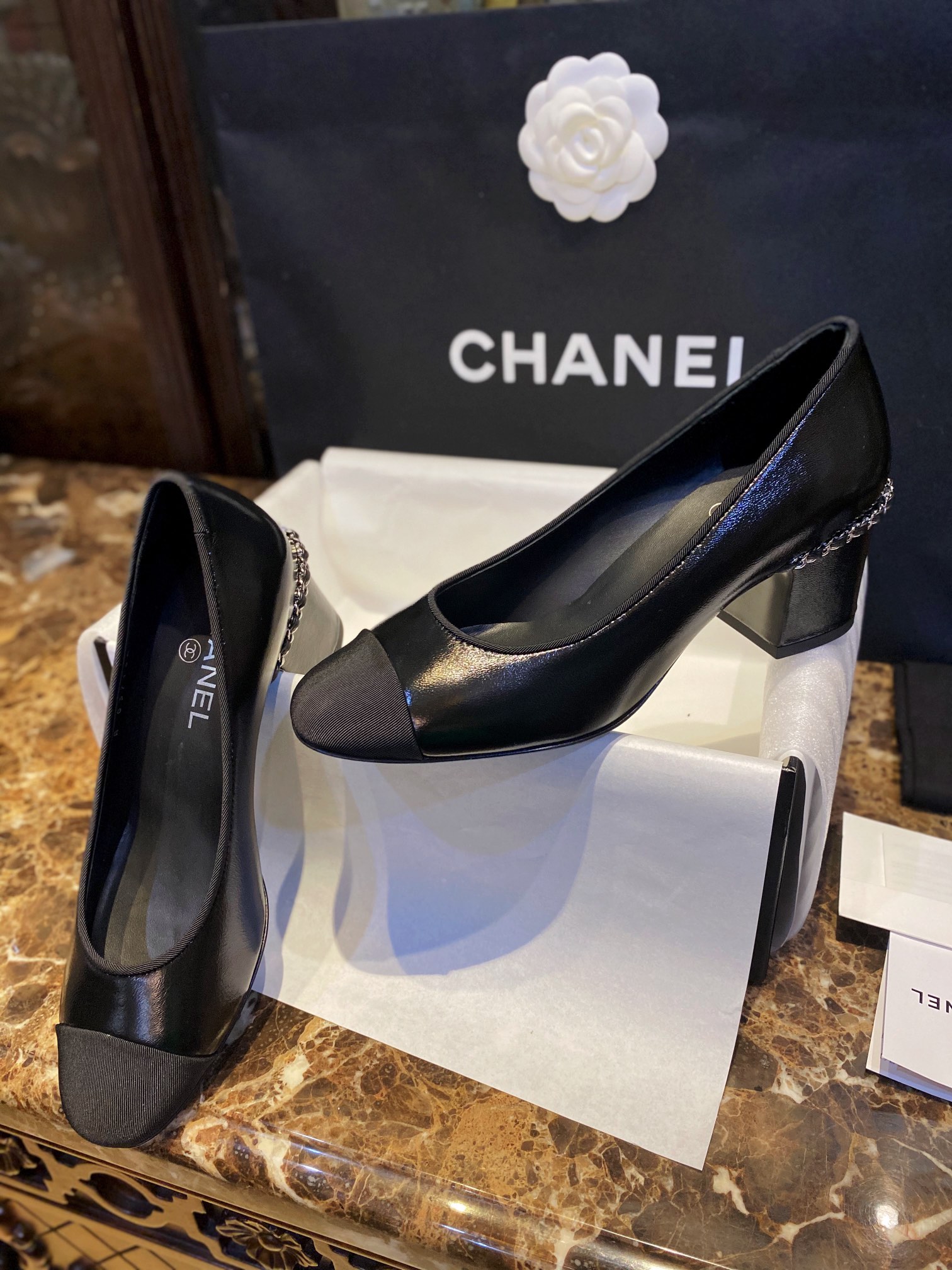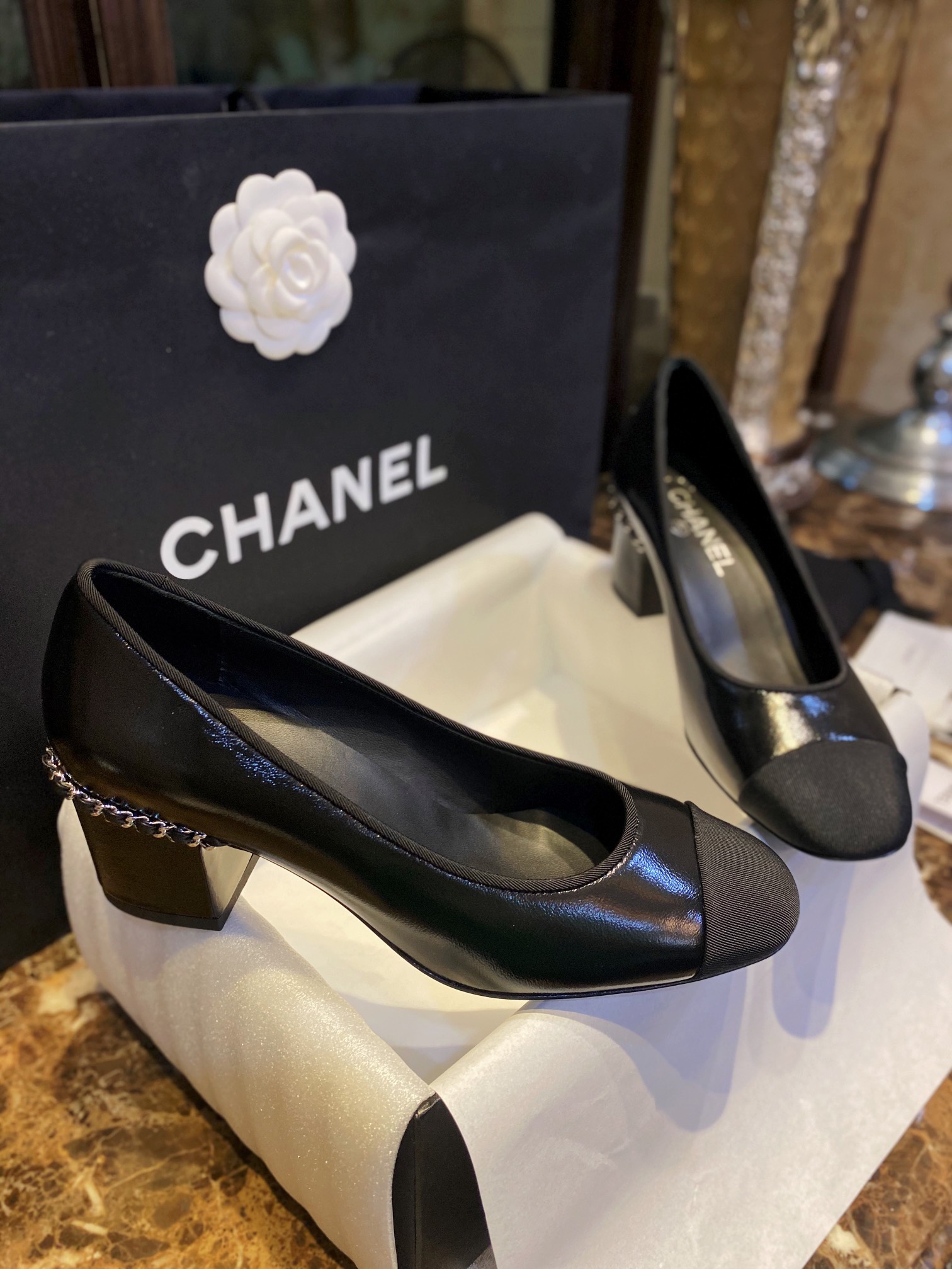 这款鞋子是AAAAA 1:1 质量 (非常棒). 使用了和原版一模一样的材料. 商标部分也保持了和香奈儿/Chanel一样. 图片拍摄是实物鞋子拍摄, 您所收到的实物保证和我们图片一模一样.