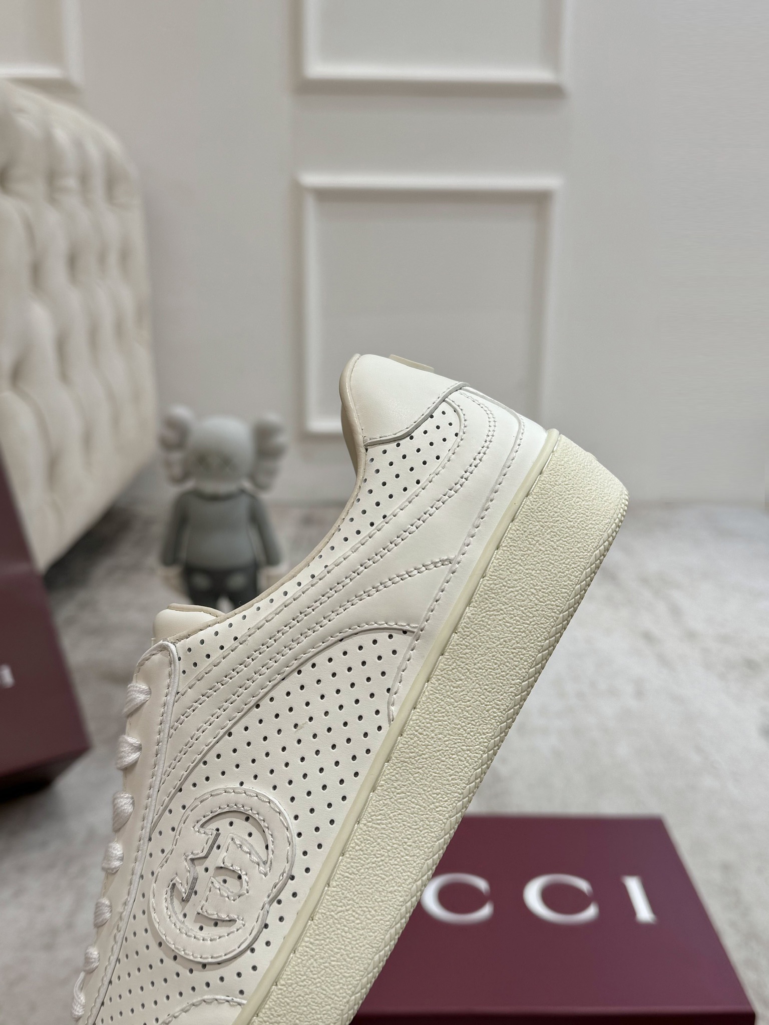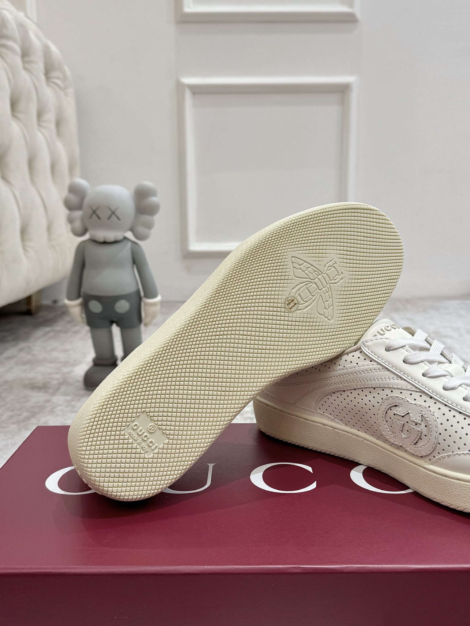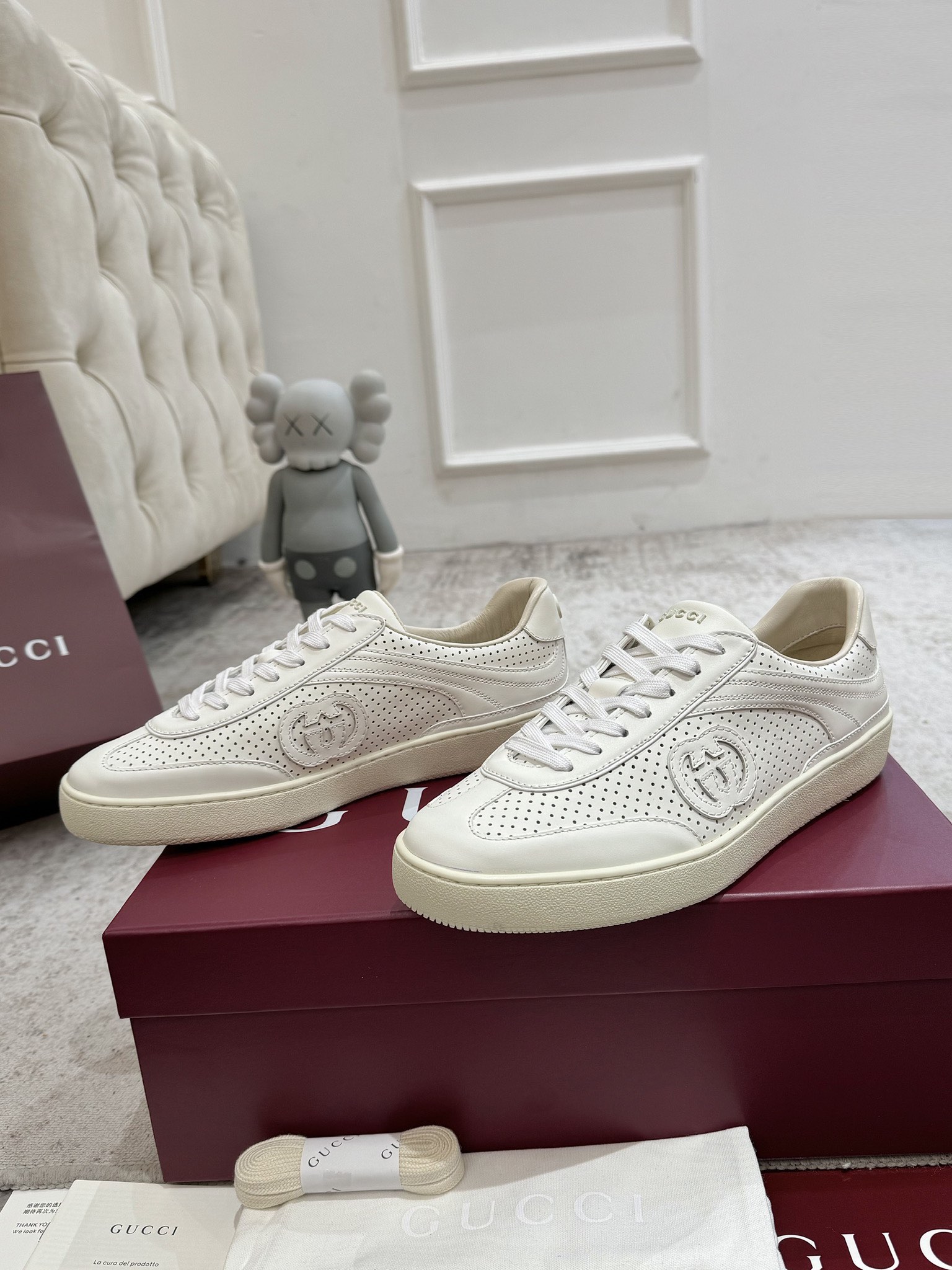 这款鞋子是AAAAA 1:1 质量 (非常棒). 使用了和原版一模一样的材料. 商标部分也保持了和古奇/Gucci一样. 图片拍摄是实物鞋子拍摄, 您所收到的实物保证和我们图片一模一样.