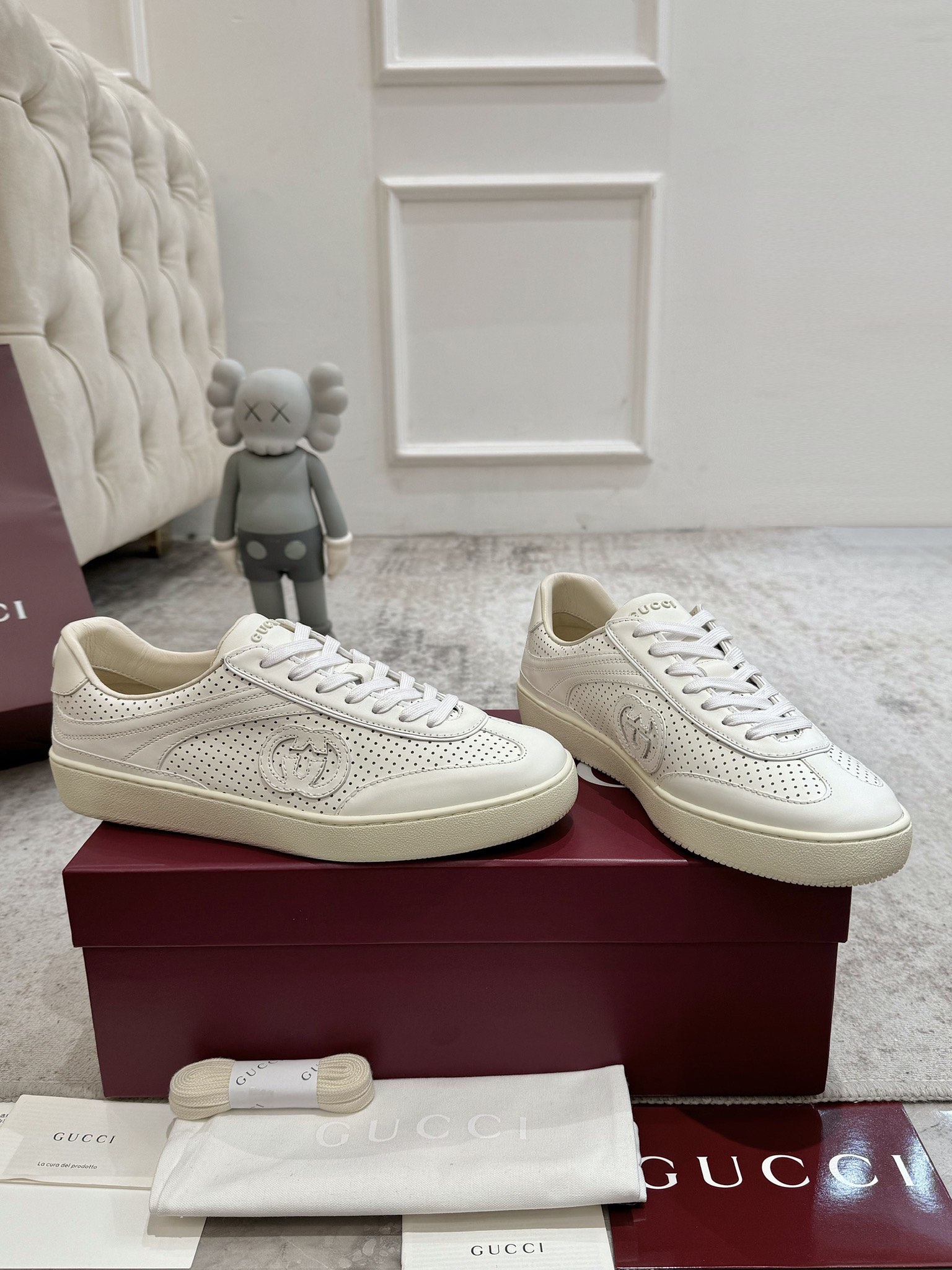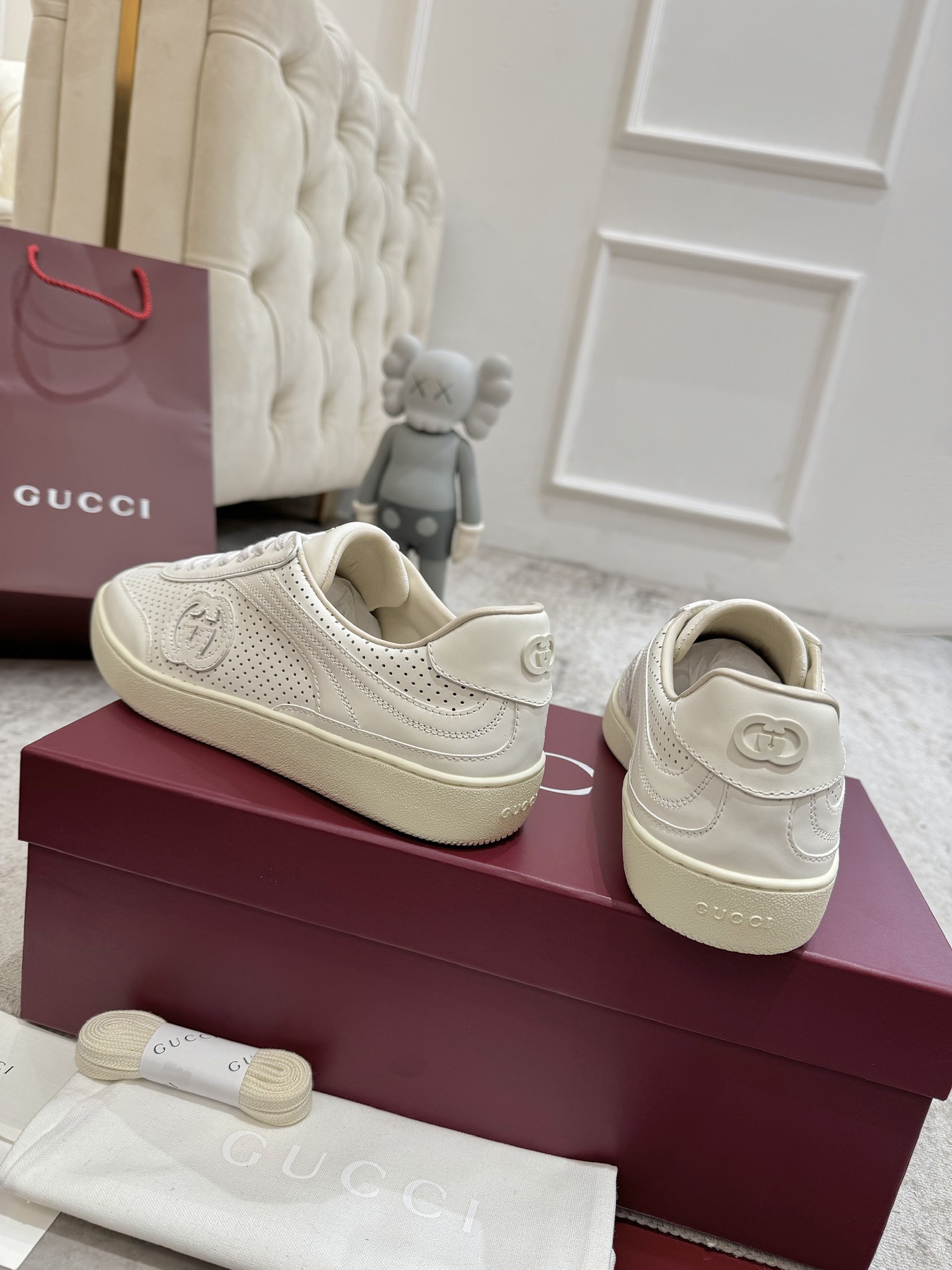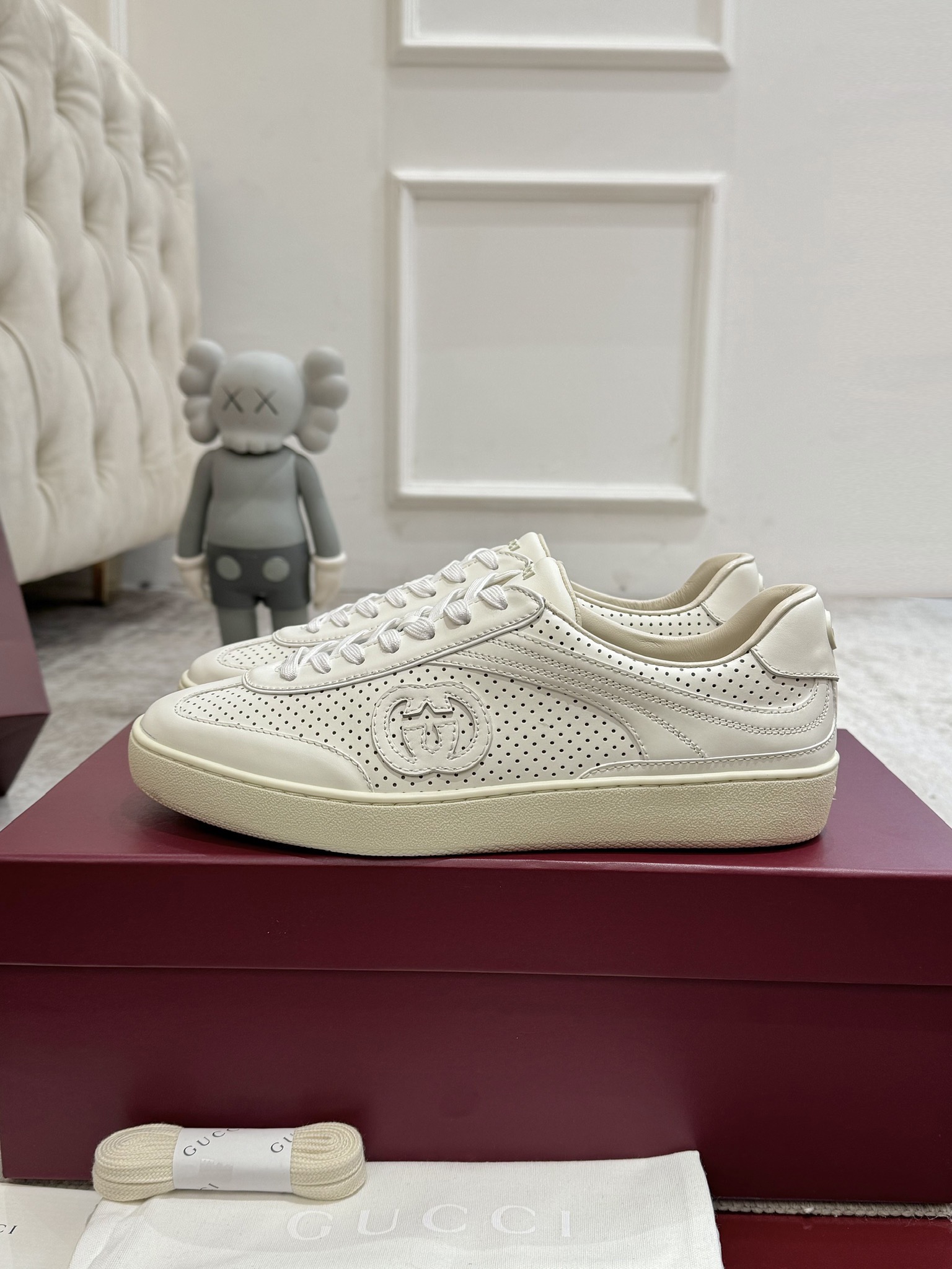 这款鞋子是AAAAA 1:1 质量 (非常棒). 使用了和原版一模一样的材料. 商标部分也保持了和古奇/Gucci一样. 图片拍摄是实物鞋子拍摄, 您所收到的实物保证和我们图片一模一样.