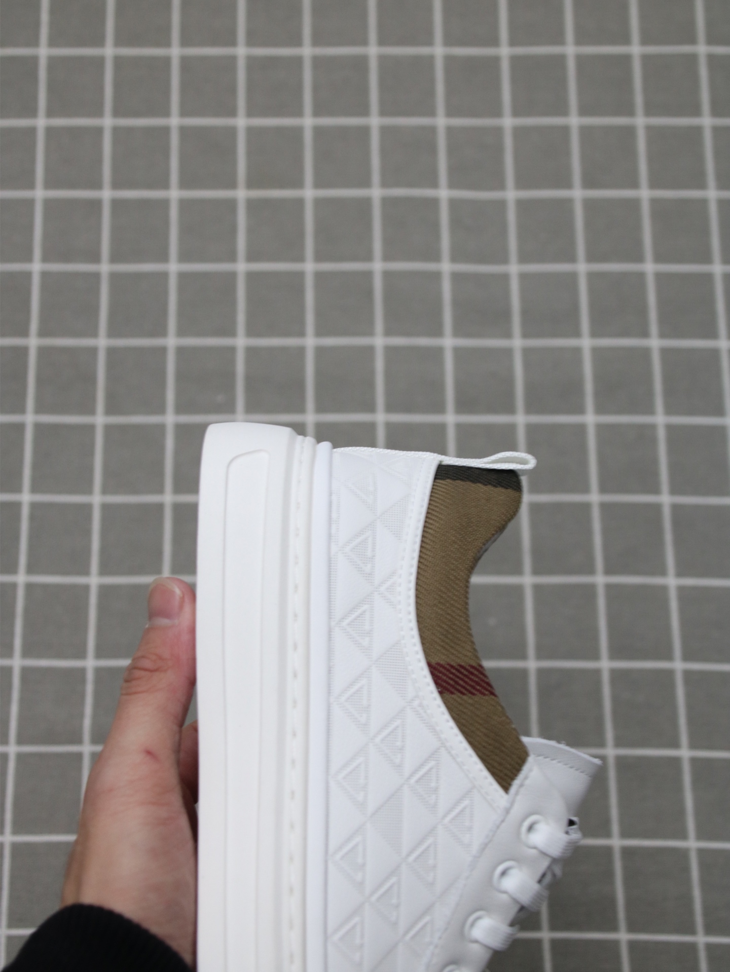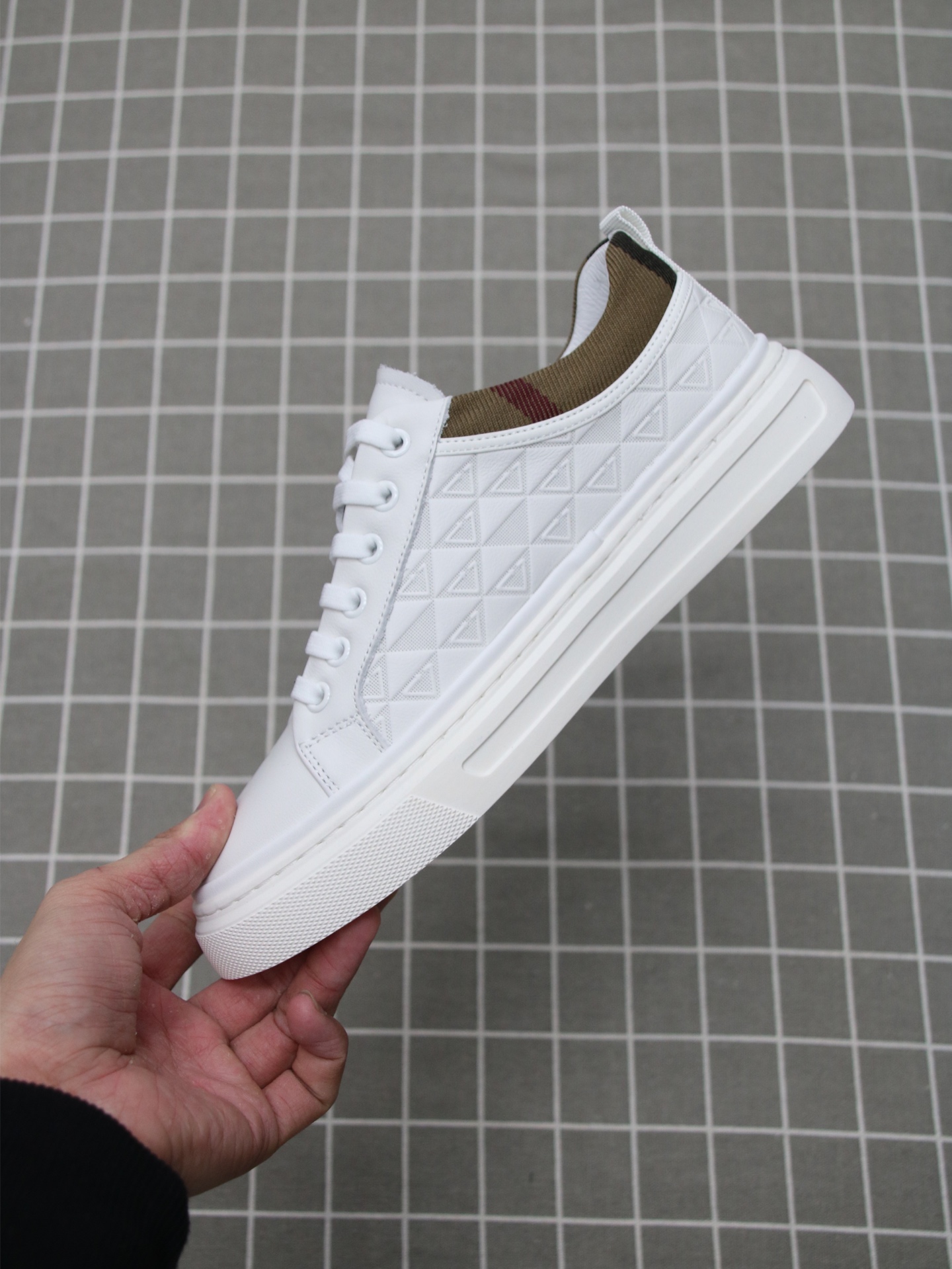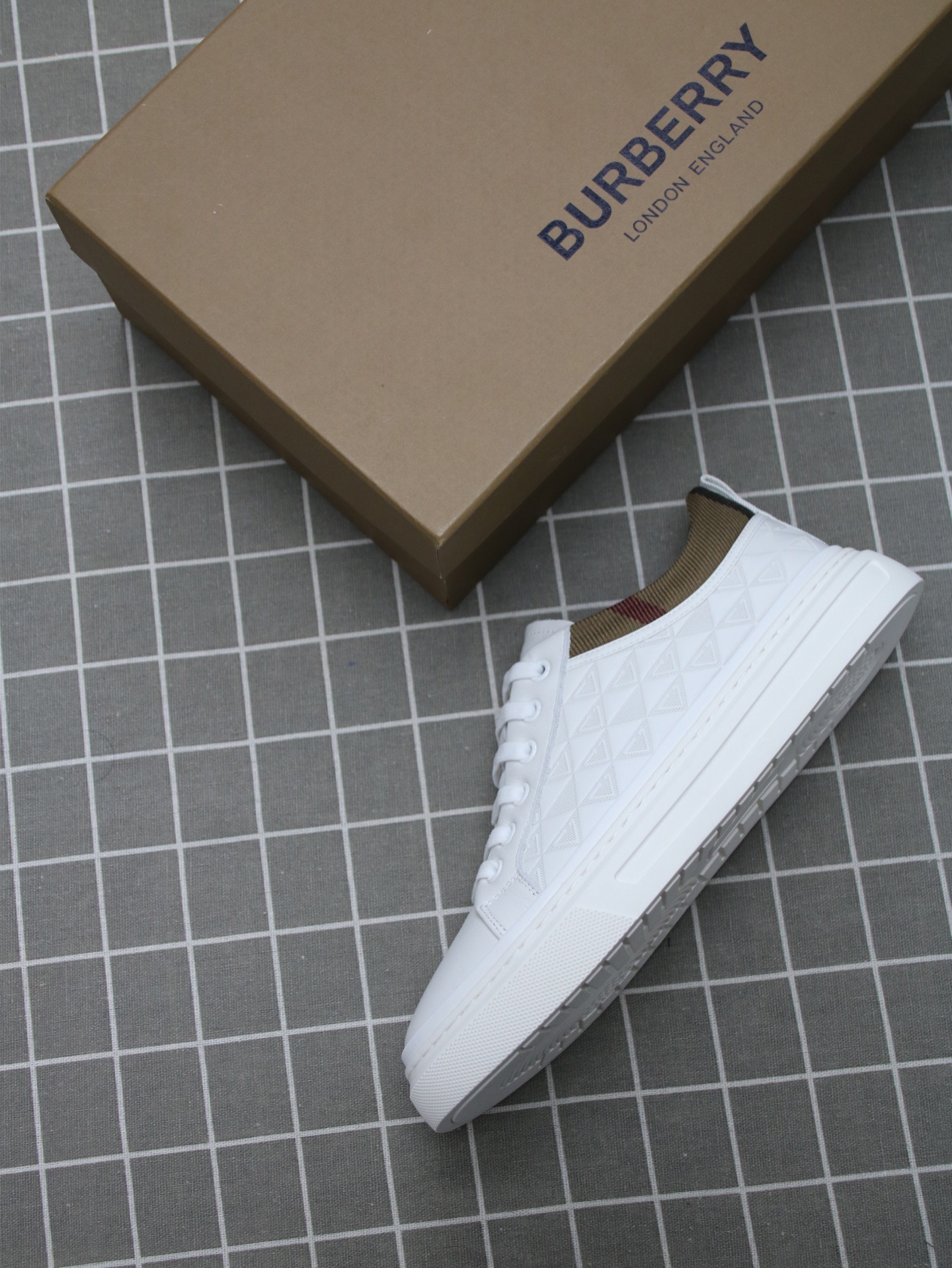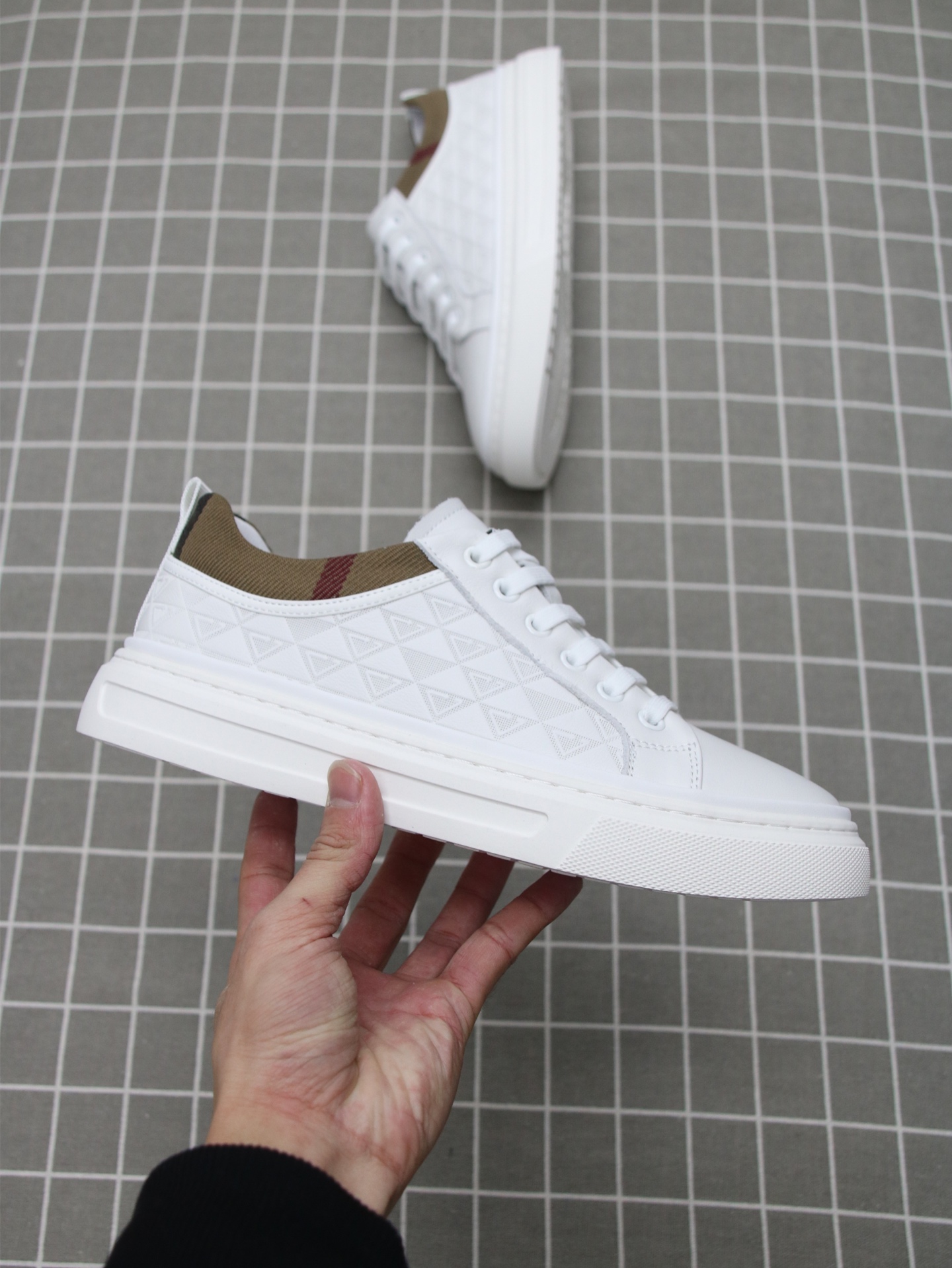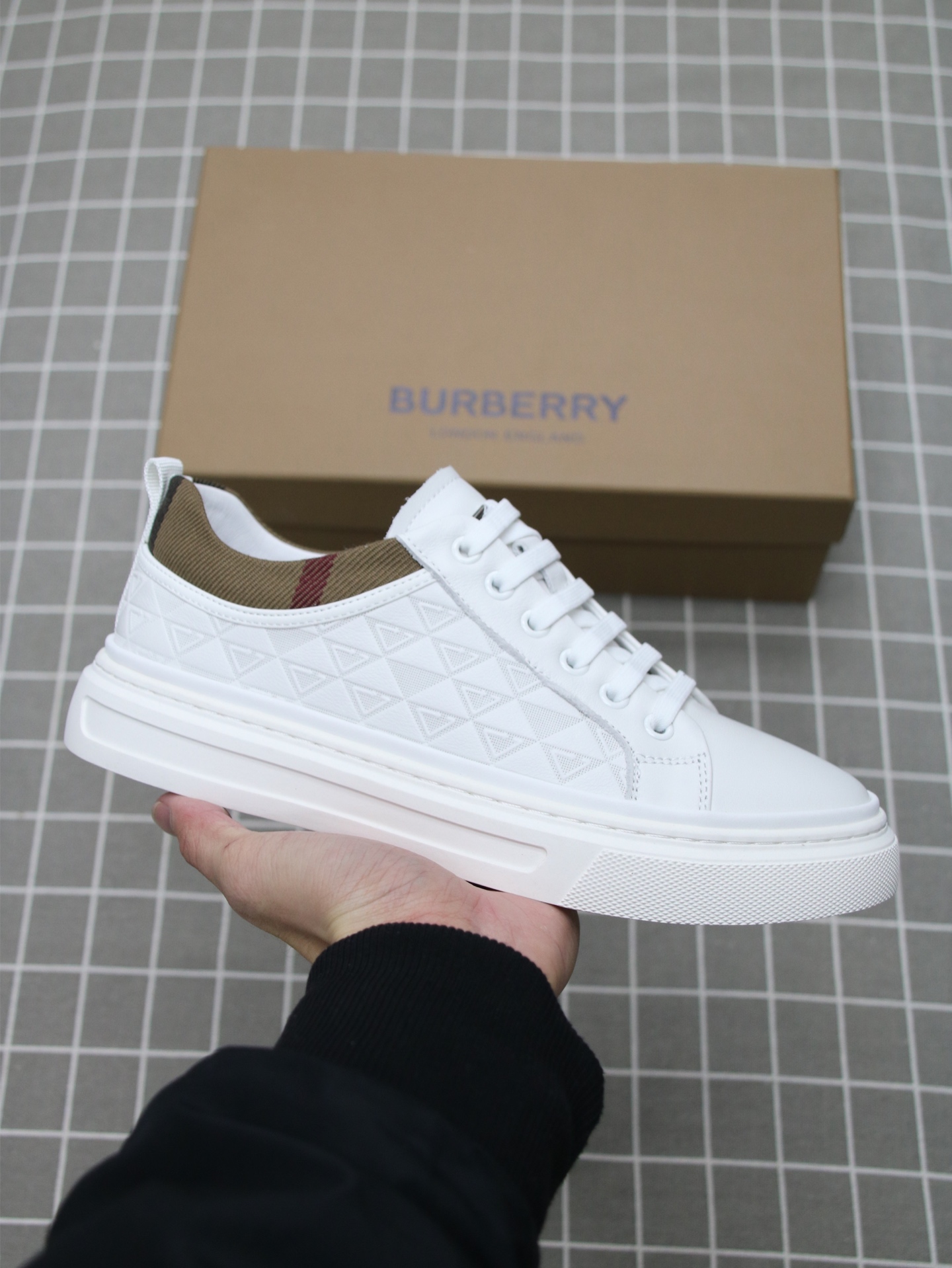 这款鞋子是AAAAA 1:1 质量 (非常棒). 使用了和原版一模一样的材料. 商标部分也保持了和巴宝莉/Burberry一样. 图片拍摄是实物鞋子拍摄, 您所收到的实物保证和我们图片一模一样.