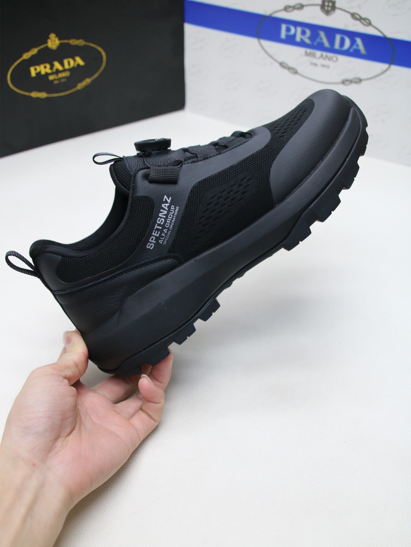 这款鞋子是AAAAA 1:1 质量 (非常棒). 使用了和原版一模一样的材料. 商标部分也保持了和普拉达/Prada一样. 图片拍摄是实物鞋子拍摄, 您所收到的实物保证和我们图片一模一样.