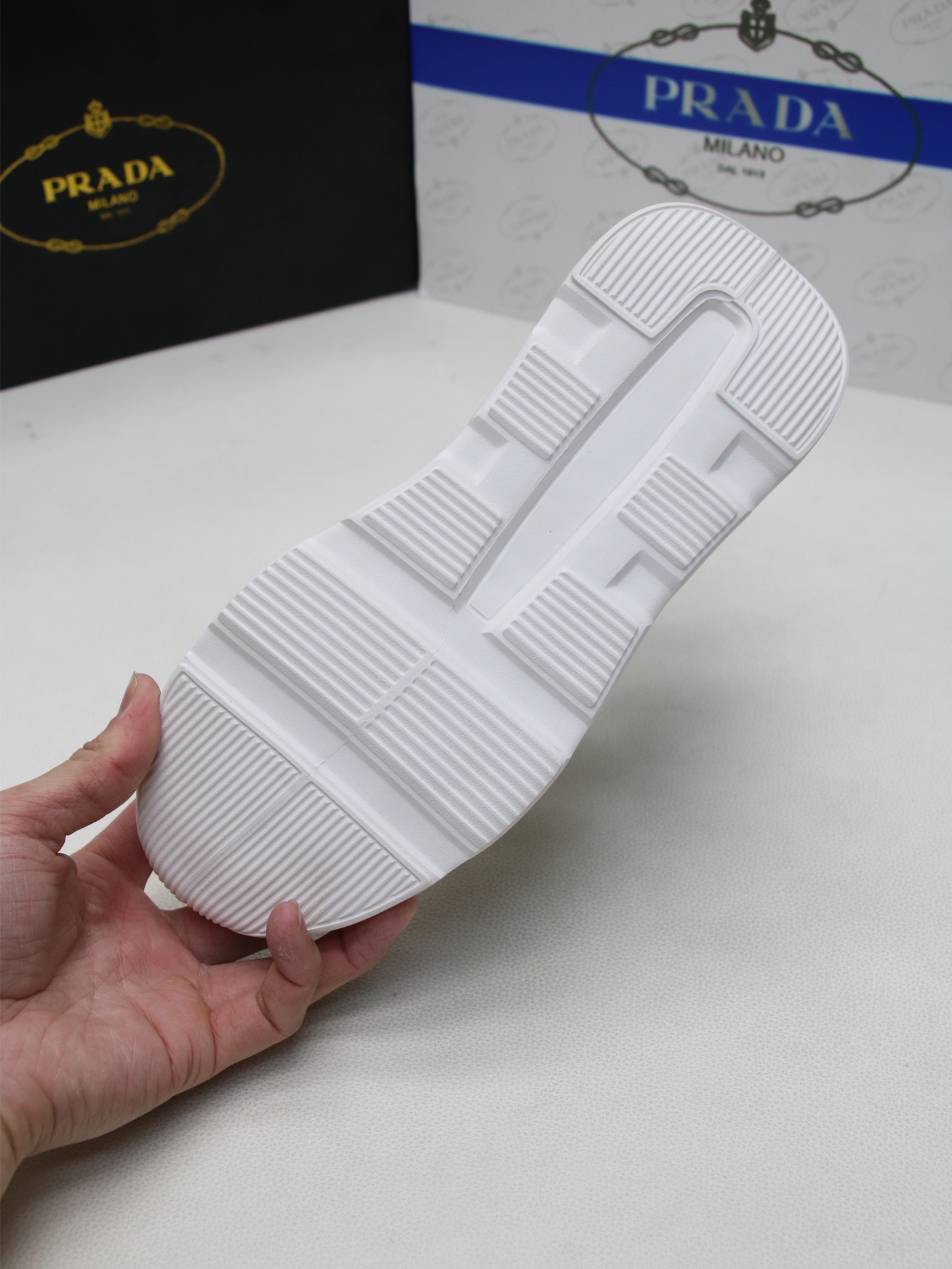 这款鞋子是AAAAA 1:1 质量 (非常棒). 使用了和原版一模一样的材料. 商标部分也保持了和普拉达/Prada一样. 图片拍摄是实物鞋子拍摄, 您所收到的实物保证和我们图片一模一样.