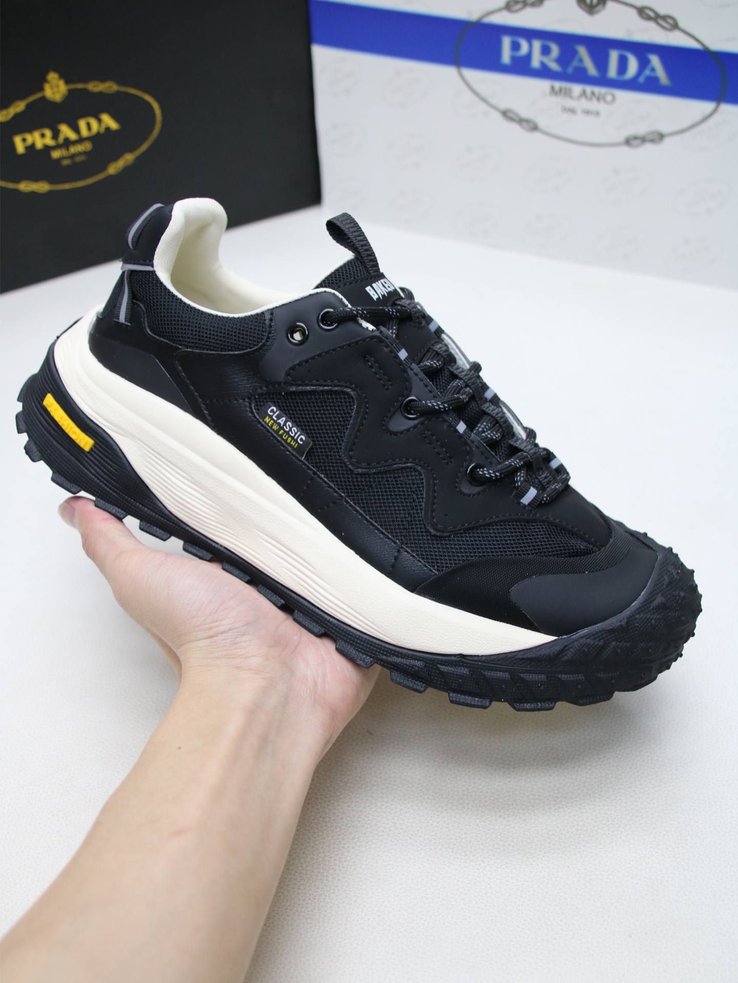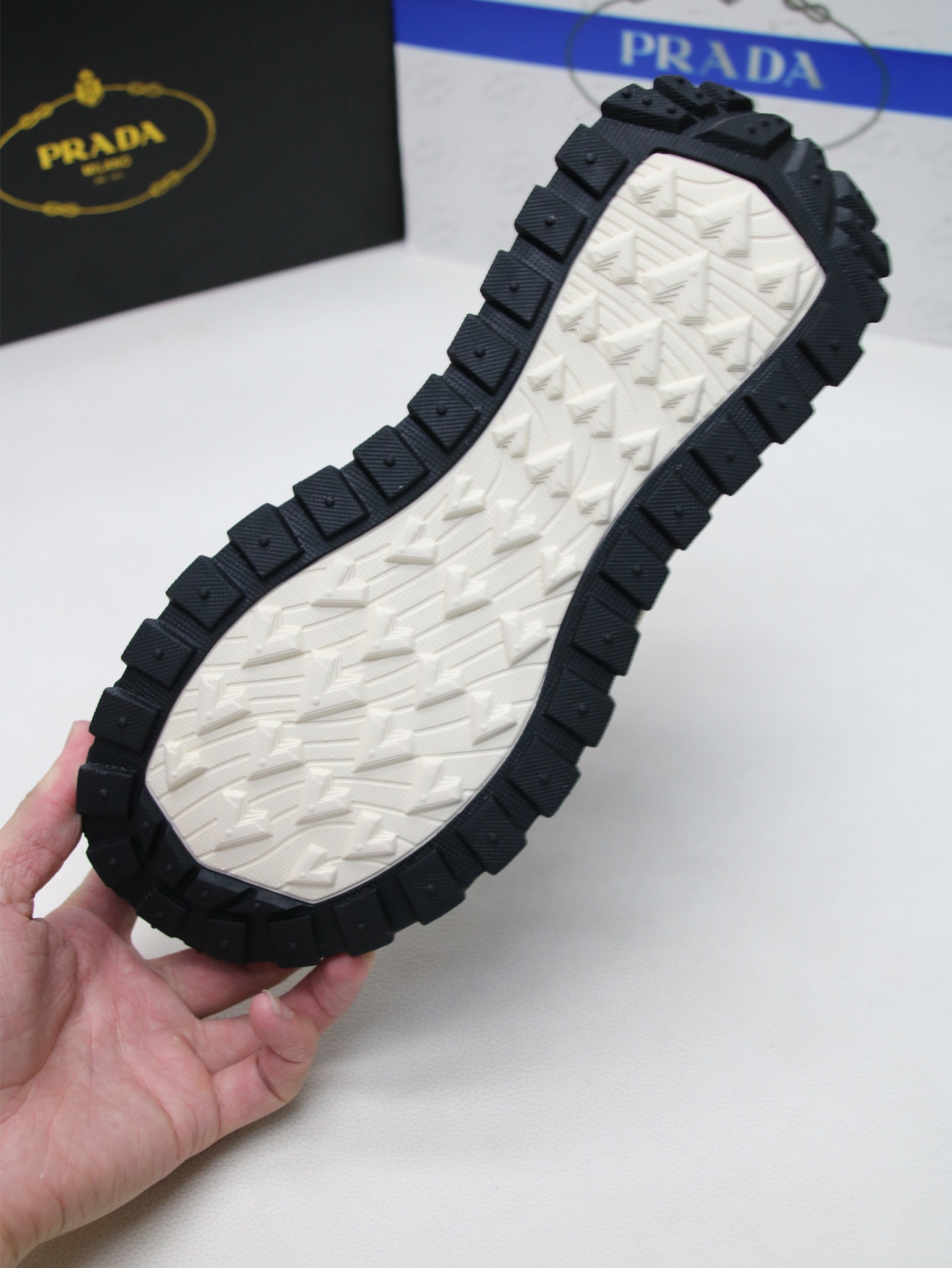 这款鞋子是AAAAA 1:1 质量 (非常棒). 使用了和原版一模一样的材料. 商标部分也保持了和普拉达/Prada一样. 图片拍摄是实物鞋子拍摄, 您所收到的实物保证和我们图片一模一样.