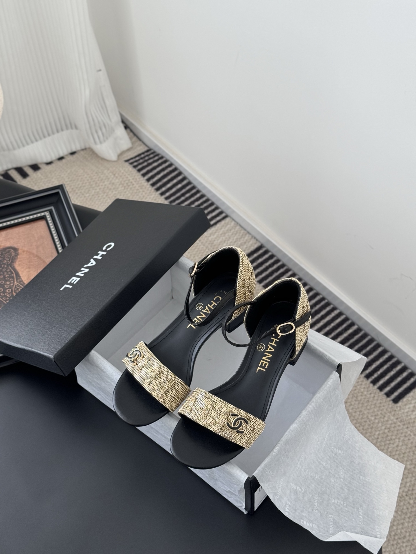 这款鞋子是AAAAA 1:1 质量 (非常棒). 使用了和原版一模一样的材料. 商标部分也保持了和香奈儿/Chanel一样. 图片拍摄是实物鞋子拍摄, 您所收到的实物保证和我们图片一模一样.