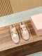这款鞋子是AAAAA 1:1 质量 (非常棒). 使用了和原版一模一样的材料. 商标部分也保持了和缪缪/Miu Miu一样. 图片拍摄是实物鞋子拍摄, 您所收到的实物保证和我们图片一模一样.