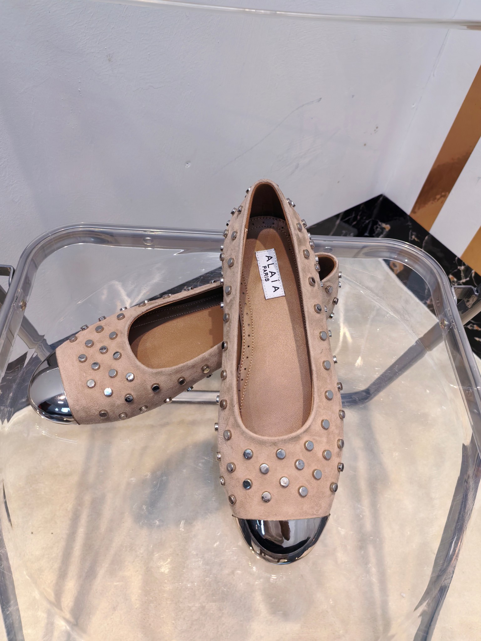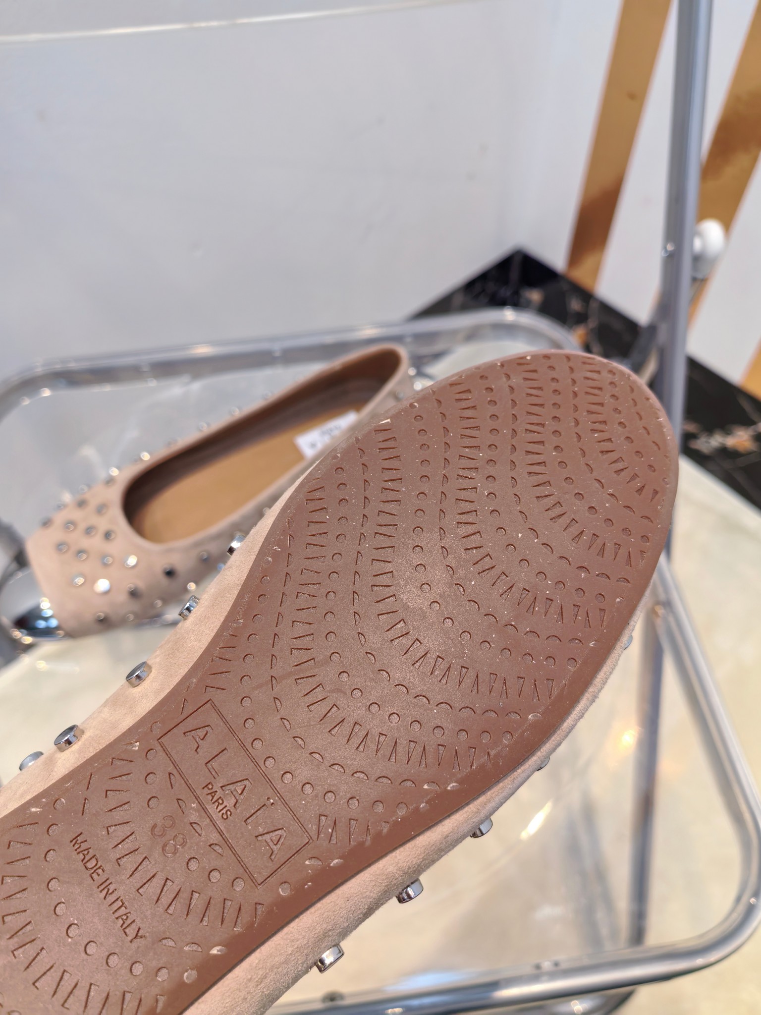 这款鞋子是AAAAA 1:1 质量 (非常棒). 使用了和原版一模一样的材料. 商标部分也保持了和Alaia一样. 图片拍摄是实物鞋子拍摄, 您所收到的实物保证和我们图片一模一样.