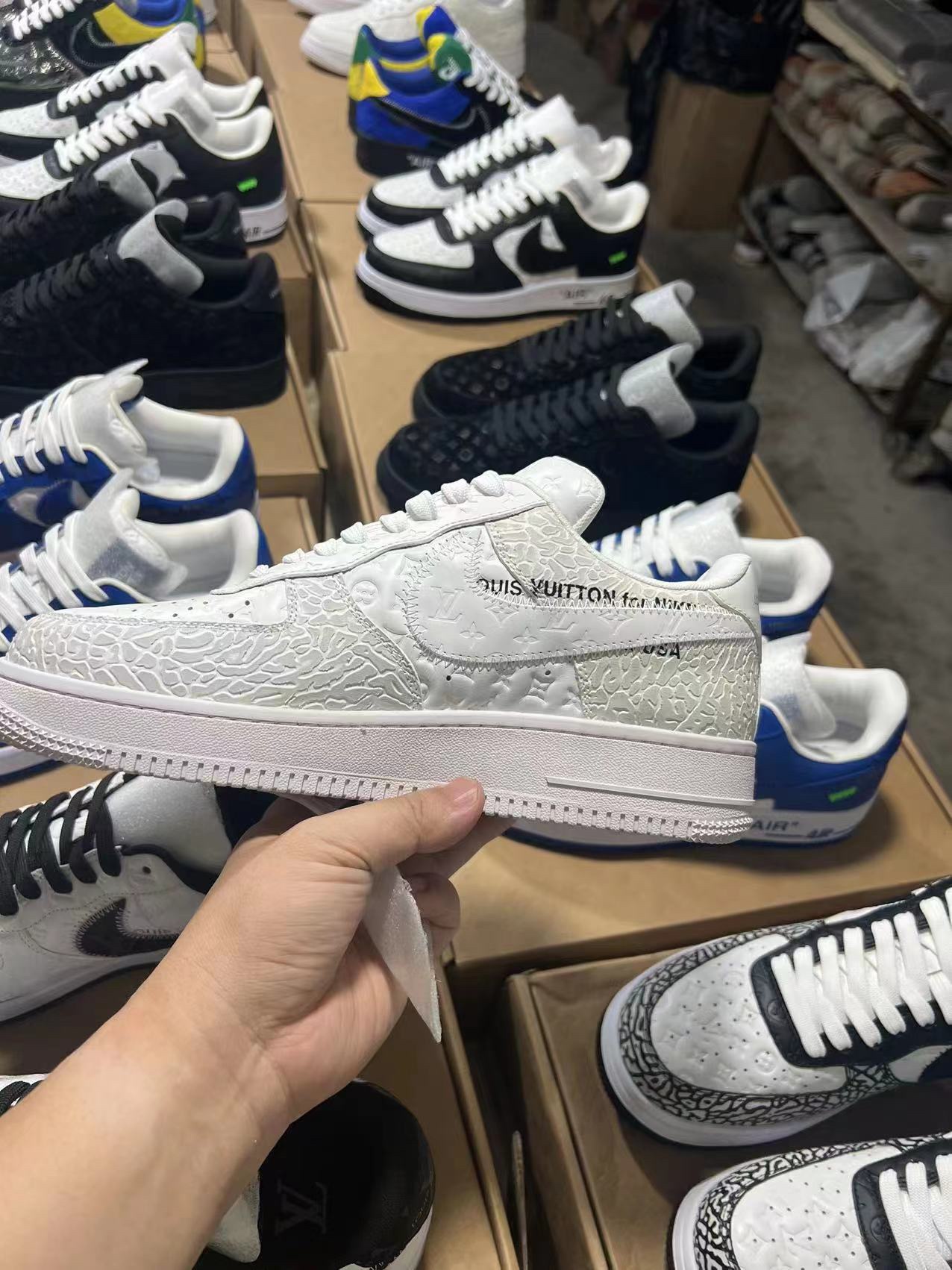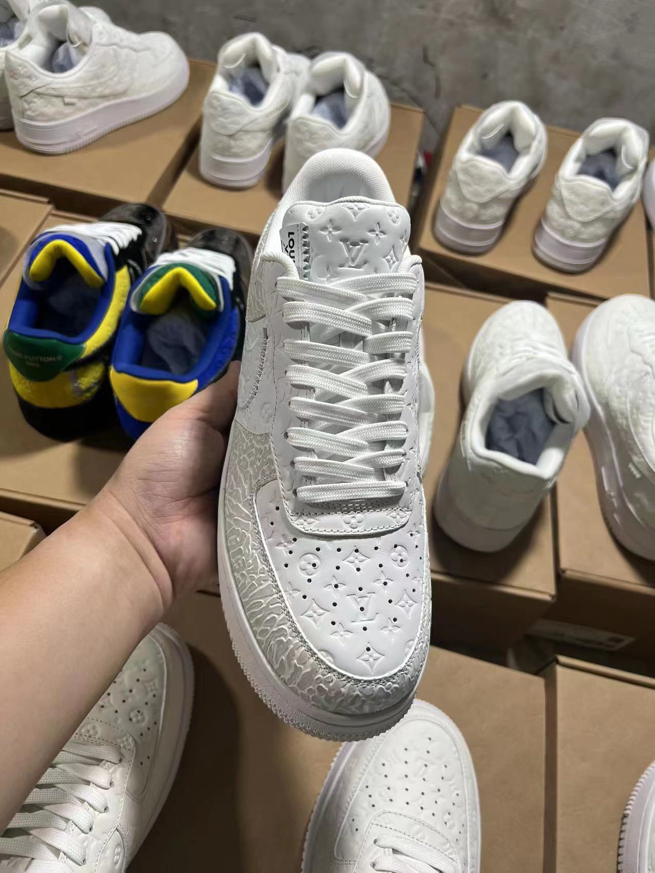 这款鞋子是AAAAA 1:1 质量 (非常棒). 使用了和原版一模一样的材料. 商标部分也保持了和路易威登/Louis Vuitton一样. 图片拍摄是实物鞋子拍摄, 您所收到的实物保证和我们图片一模一样.