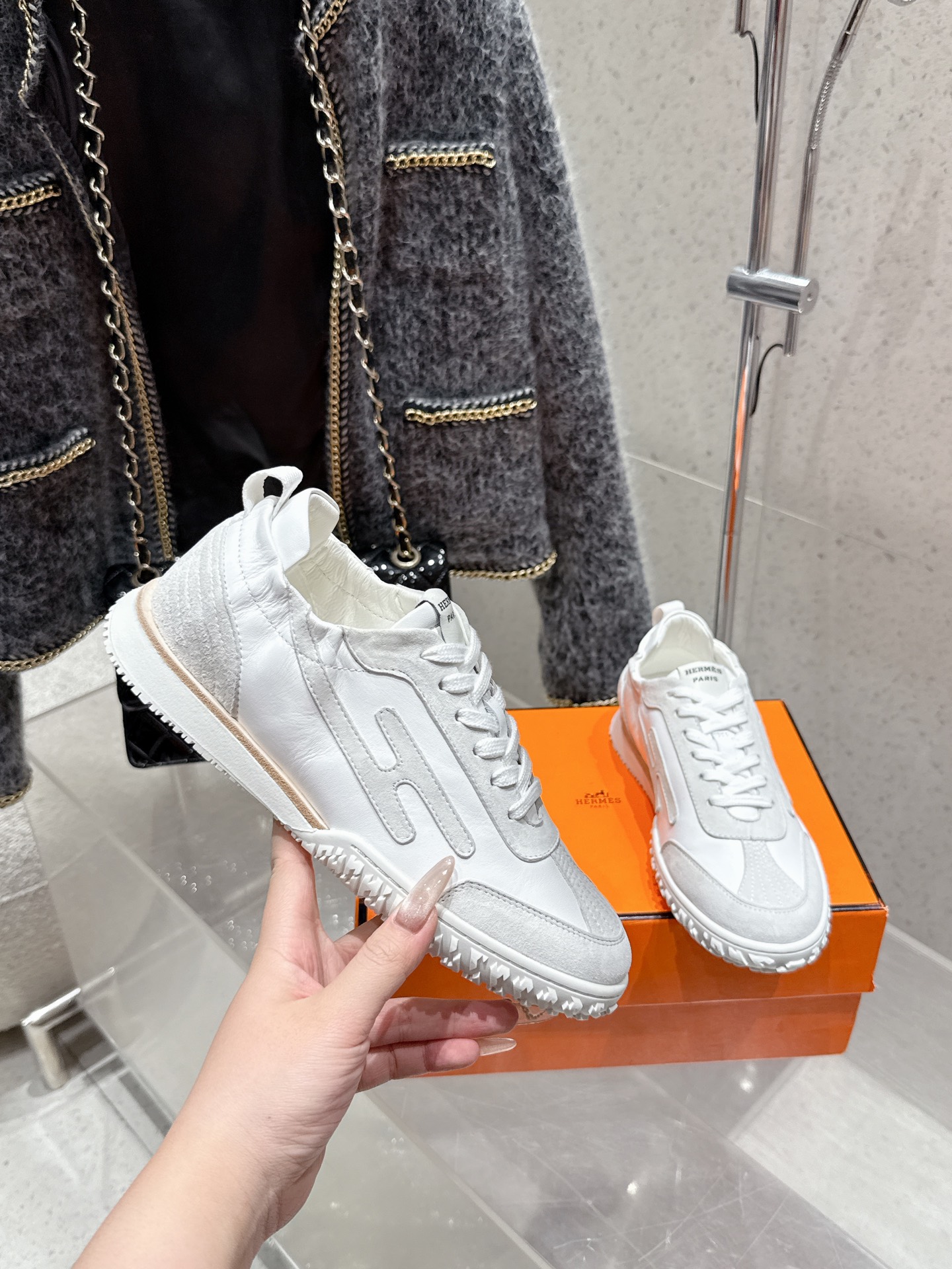 这款鞋子是AAAAA 1:1 质量 (非常棒). 使用了和原版一模一样的材料. 商标部分也保持了和爱马仕/Hermes一样. 图片拍摄是实物鞋子拍摄, 您所收到的实物保证和我们图片一模一样.