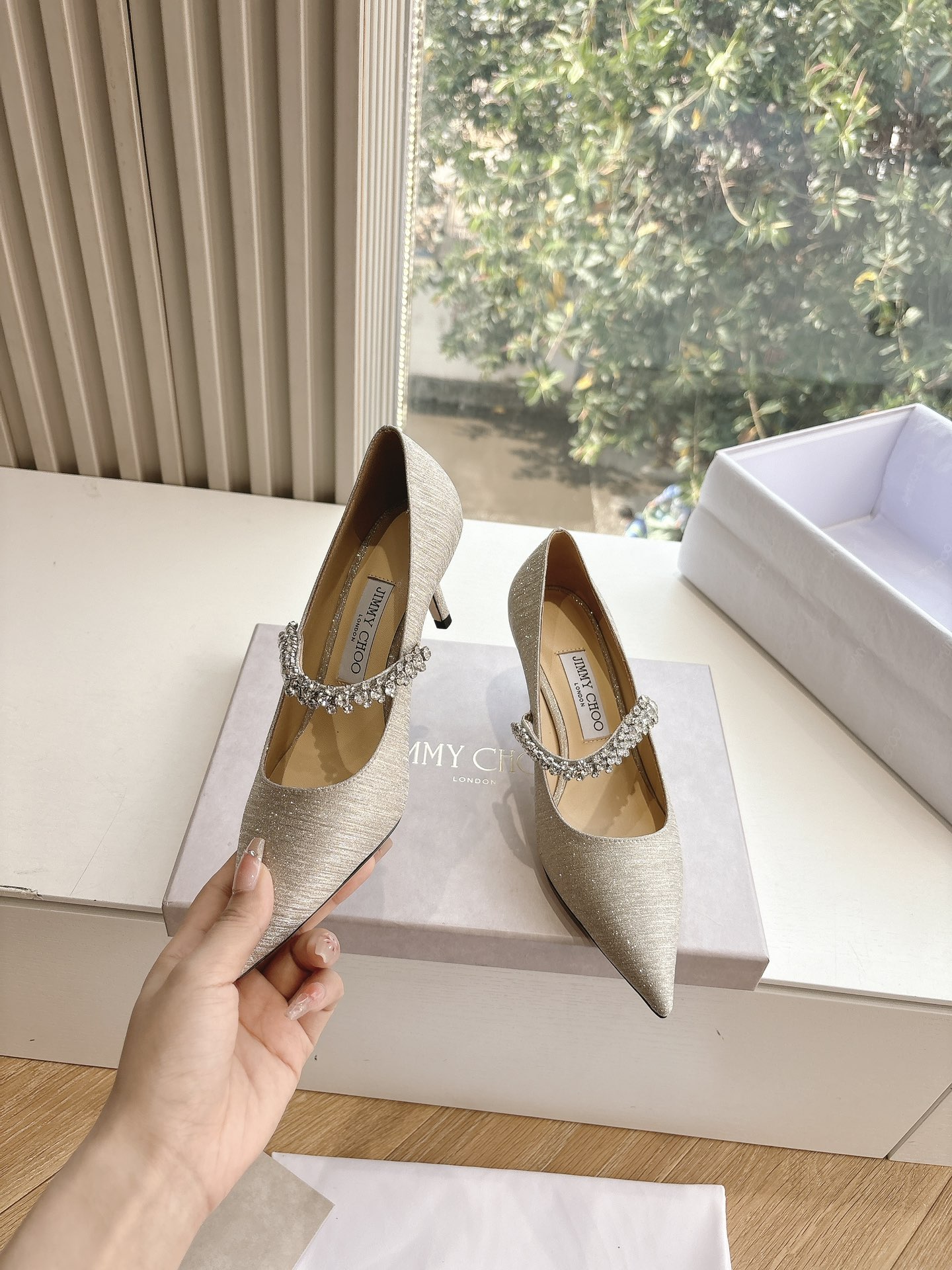 这款鞋子是AAAAA 1:1 质量 (非常棒). 使用了和原版一模一样的材料. 商标部分也保持了和吉米乔/JIMMY CHOO一样. 图片拍摄是实物鞋子拍摄, 您所收到的实物保证和我们图片一模一样.