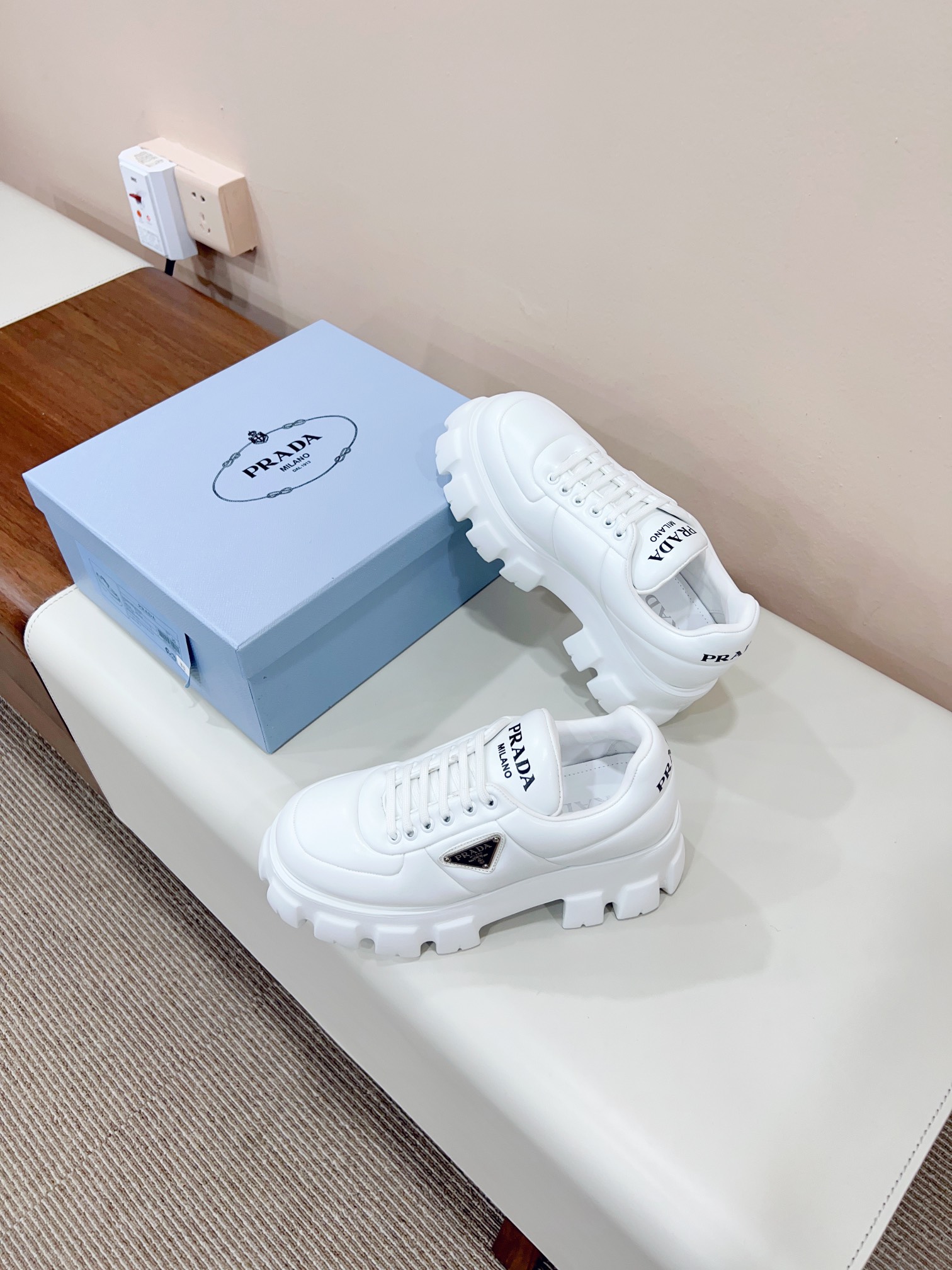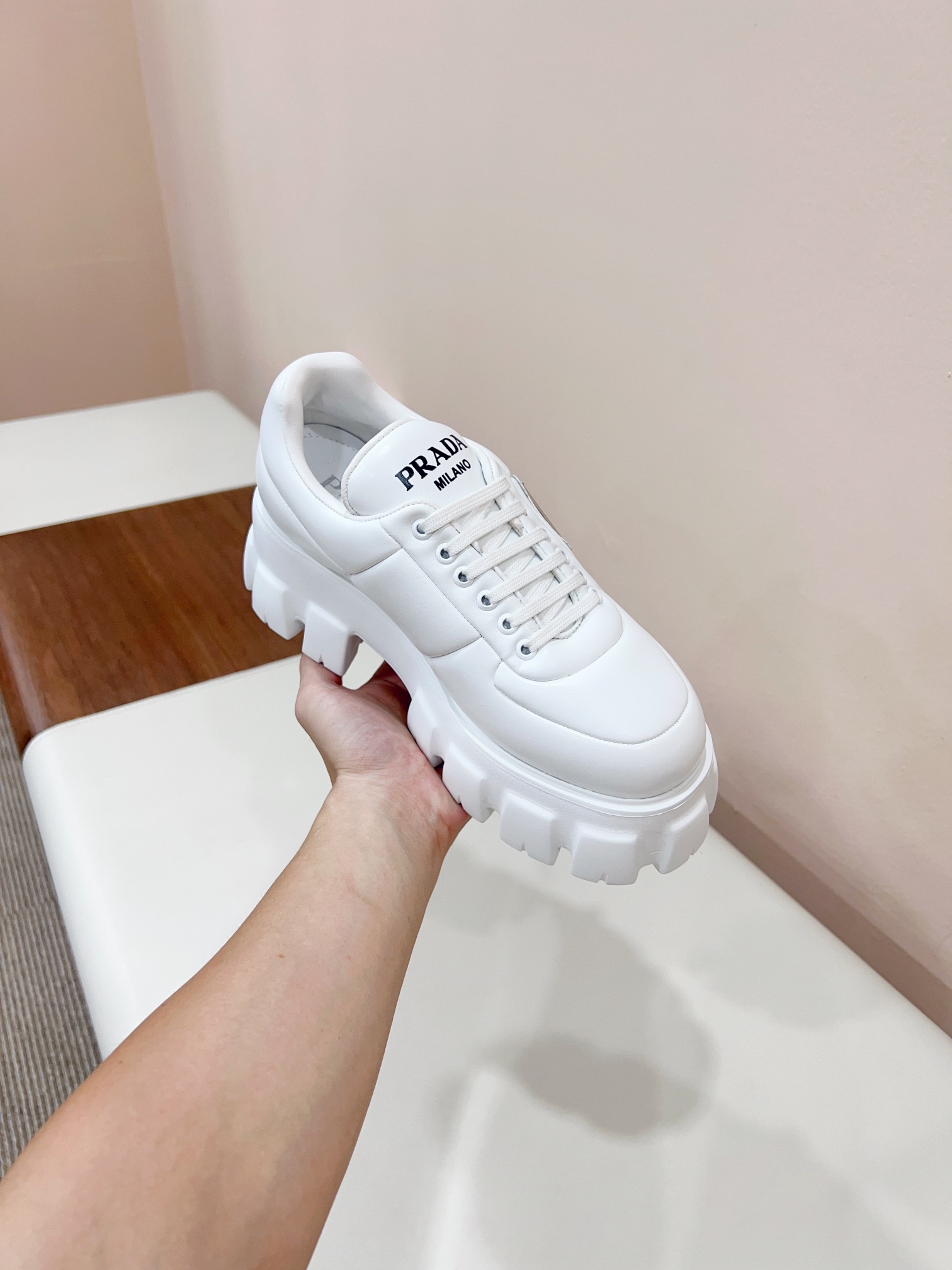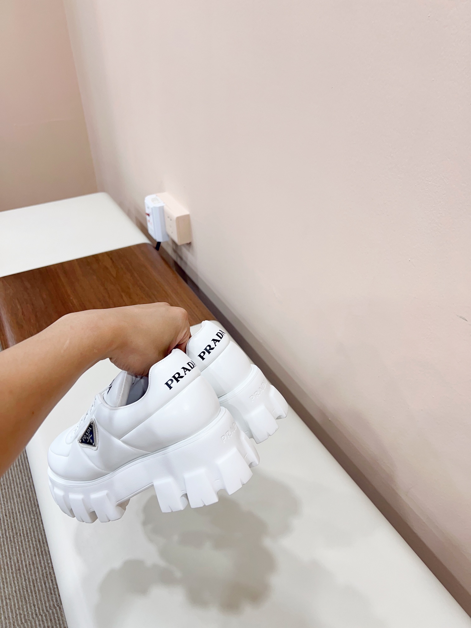 这款鞋子是AAAAA 1:1 质量 (非常棒). 使用了和原版一模一样的材料. 商标部分也保持了和普拉达/Prada一样. 图片拍摄是实物鞋子拍摄, 您所收到的实物保证和我们图片一模一样.