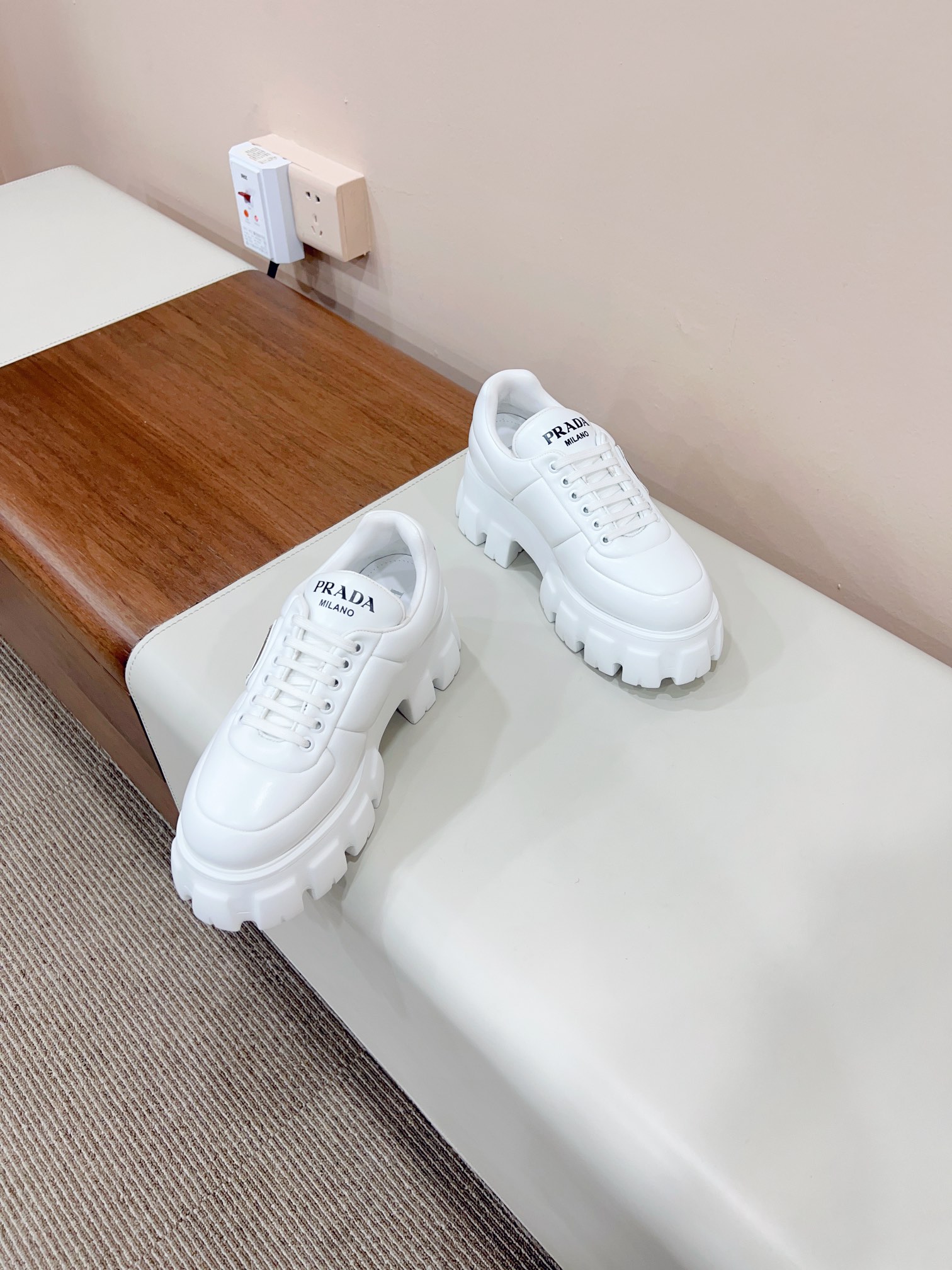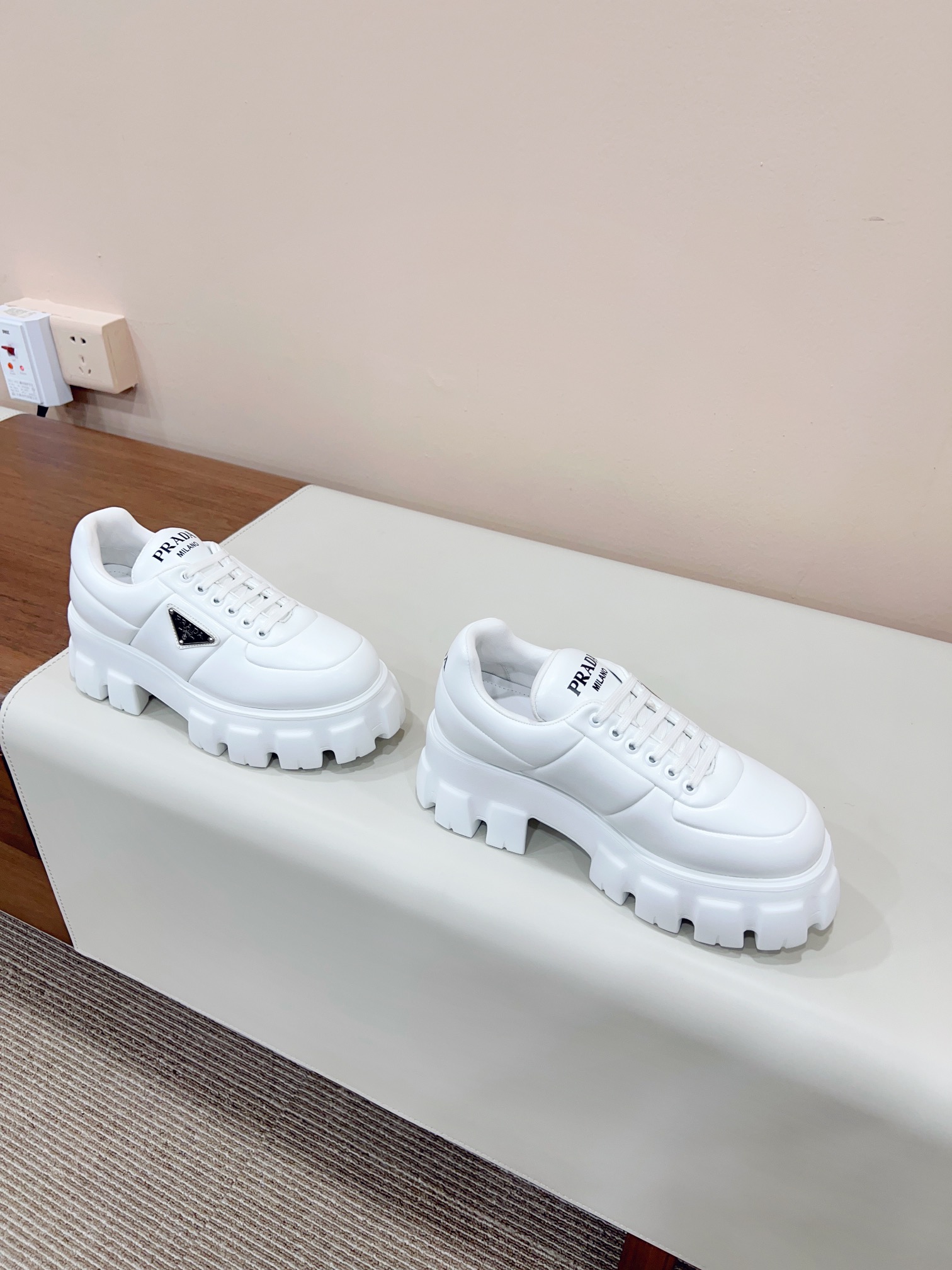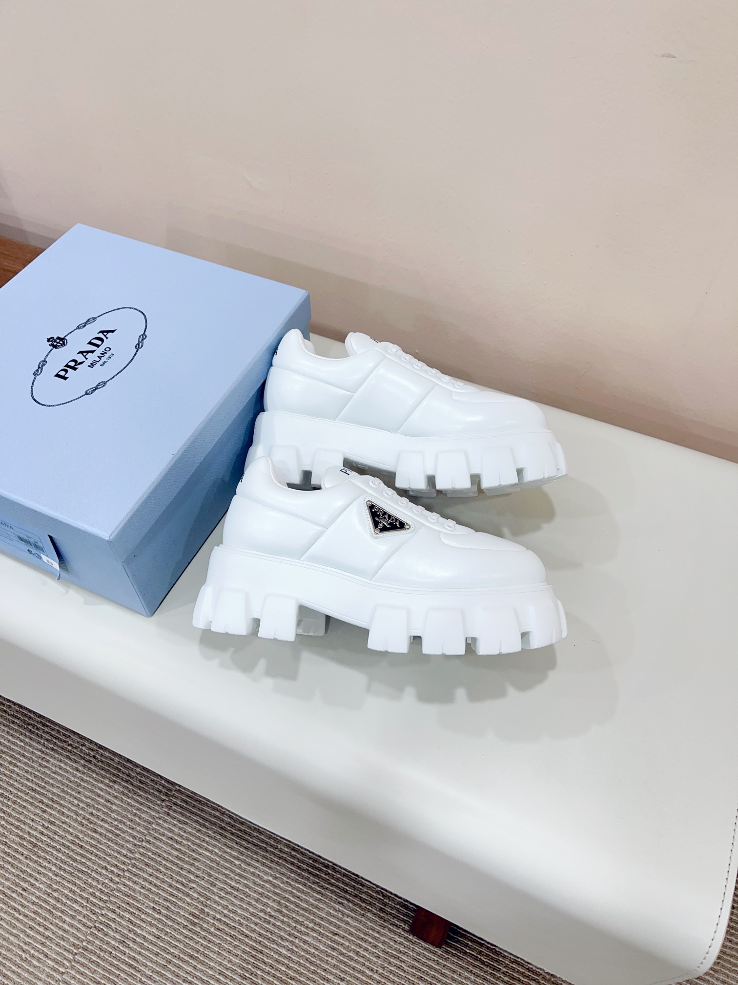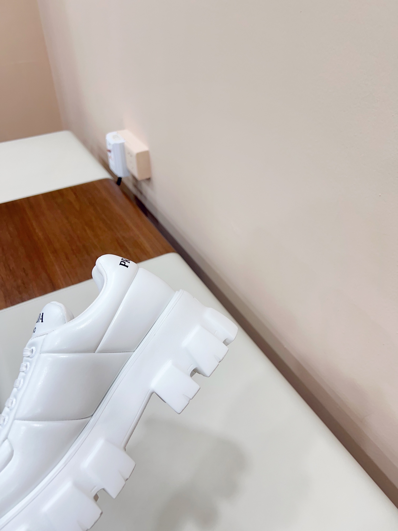 这款鞋子是AAAAA 1:1 质量 (非常棒). 使用了和原版一模一样的材料. 商标部分也保持了和普拉达/Prada一样. 图片拍摄是实物鞋子拍摄, 您所收到的实物保证和我们图片一模一样.