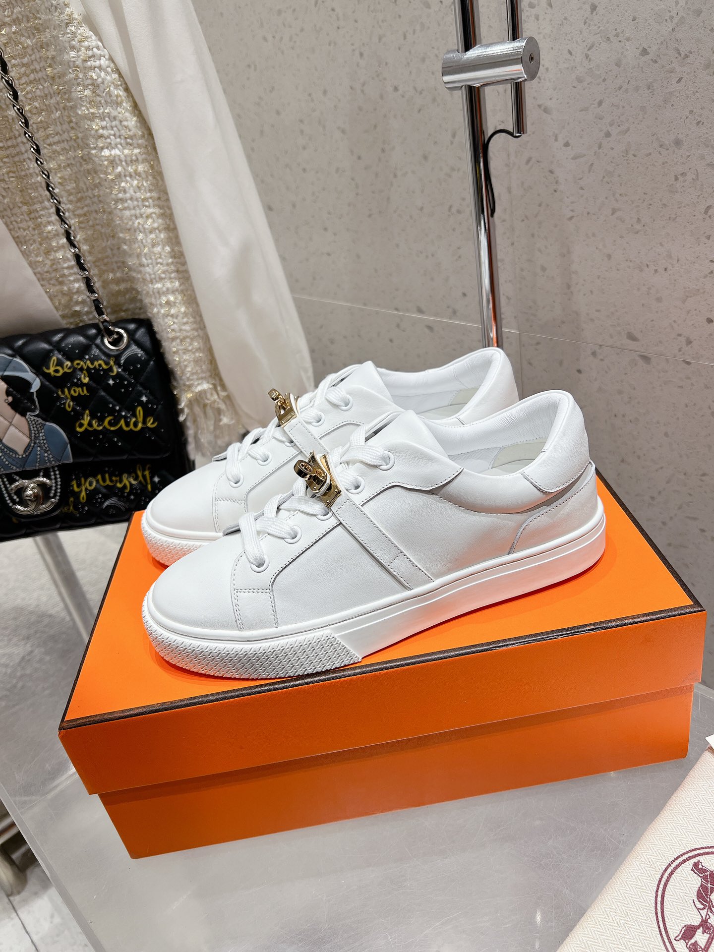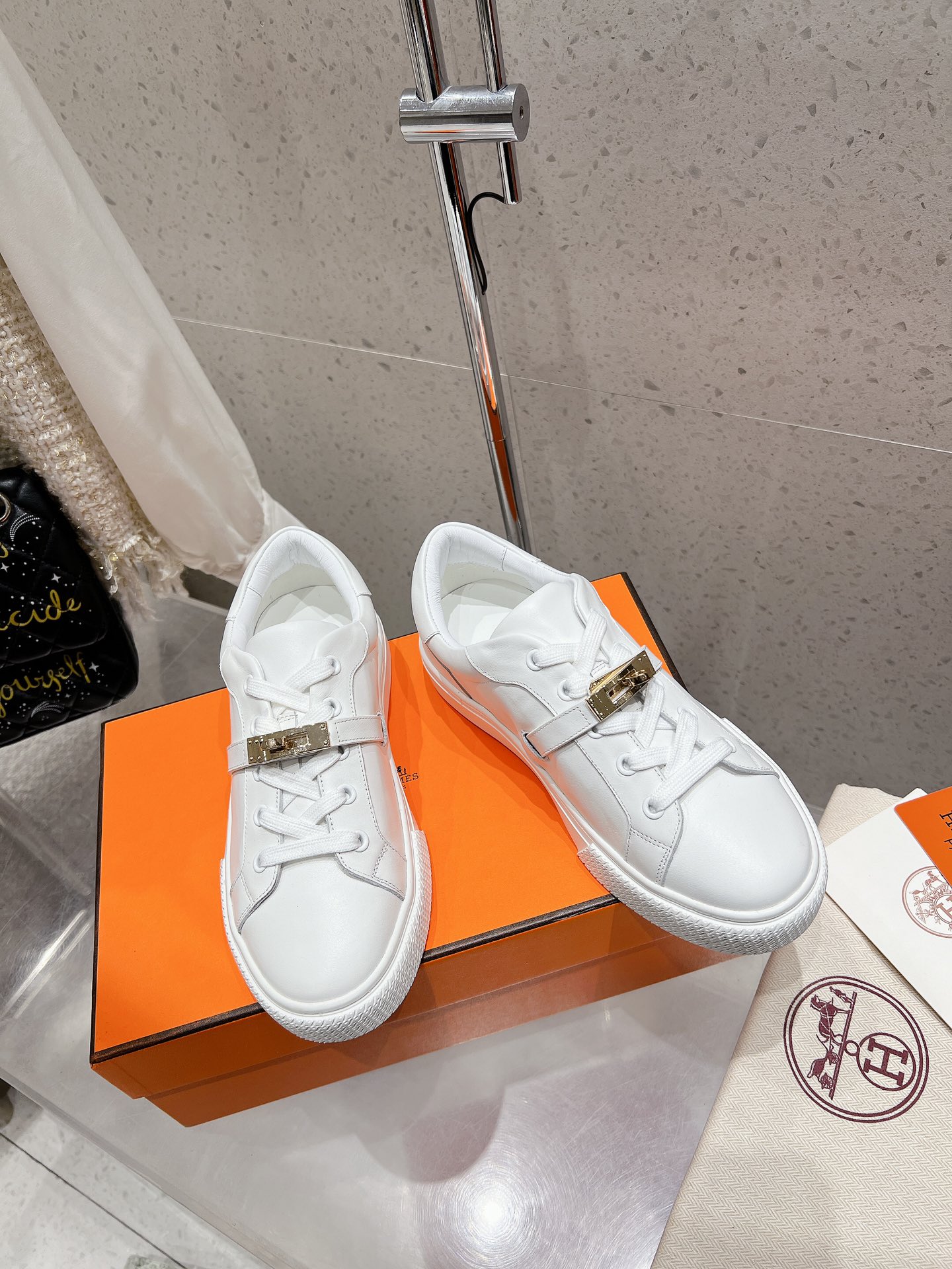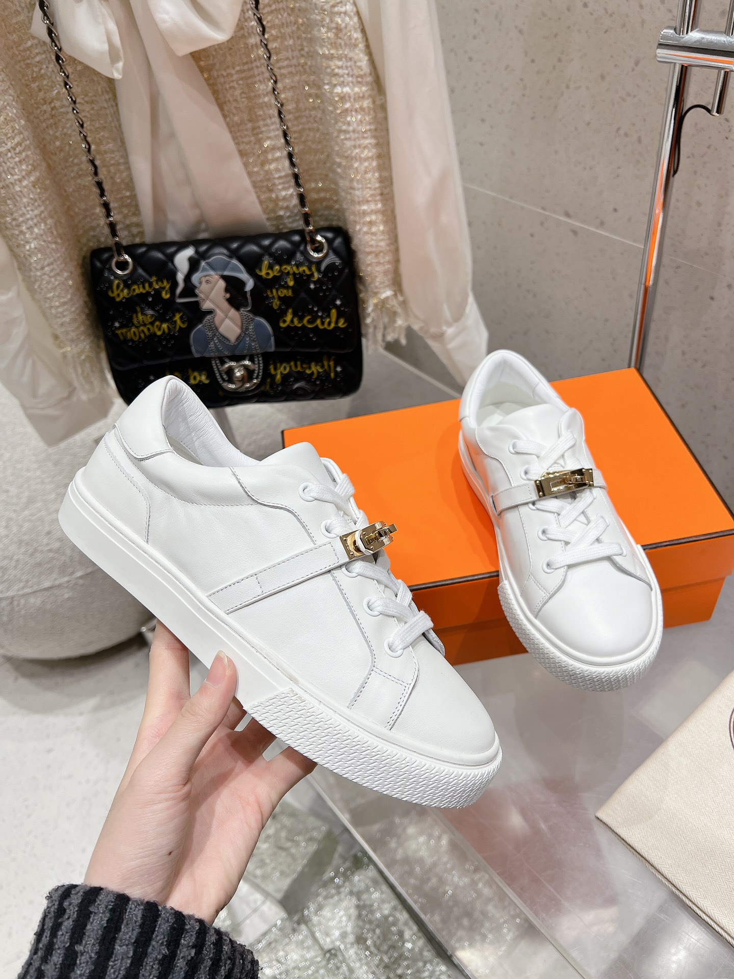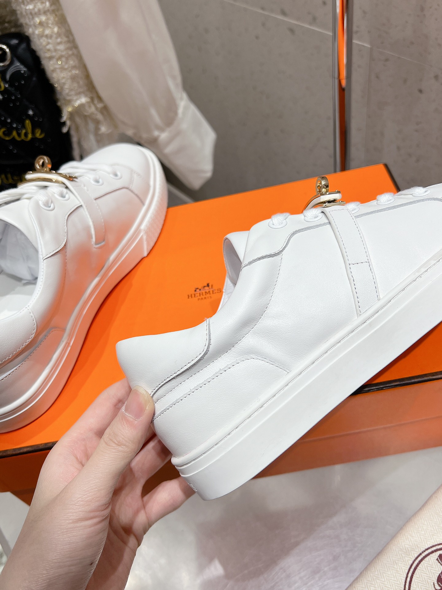 这款鞋子是AAAAA 1:1 质量 (非常棒). 使用了和原版一模一样的材料. 商标部分也保持了和爱马仕/Hermes一样. 图片拍摄是实物鞋子拍摄, 您所收到的实物保证和我们图片一模一样.