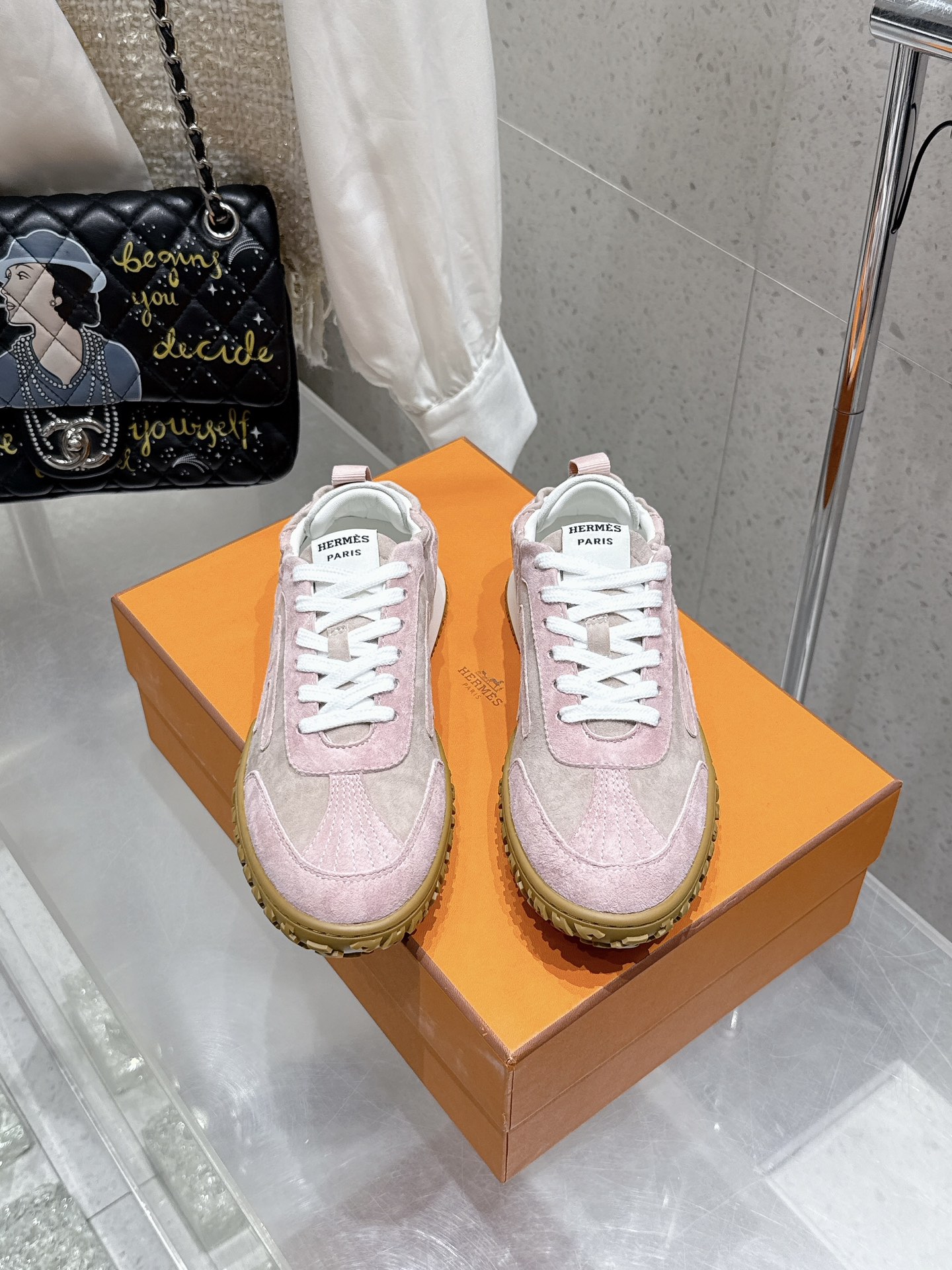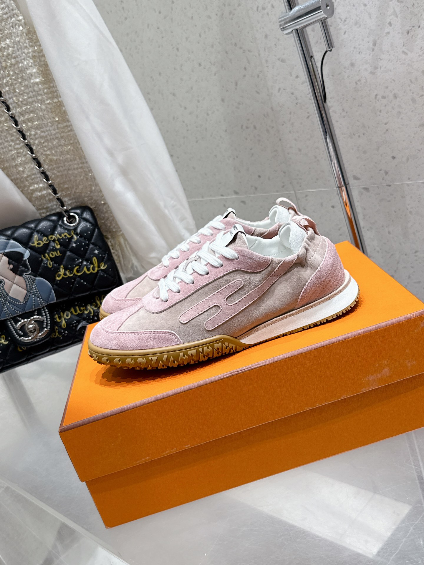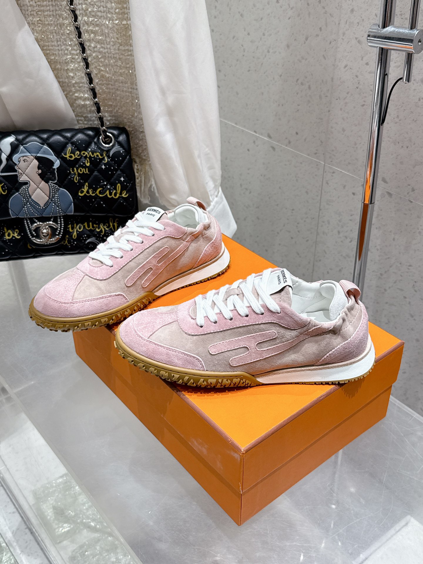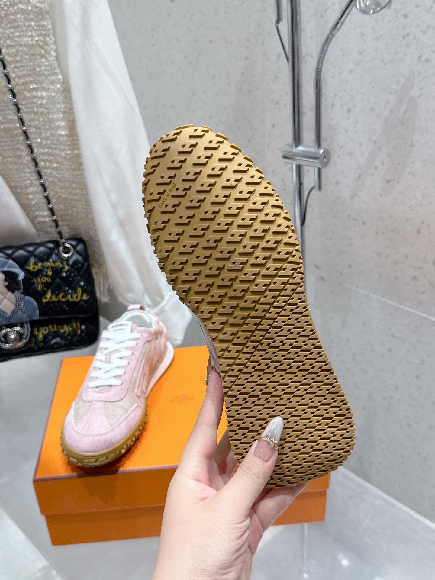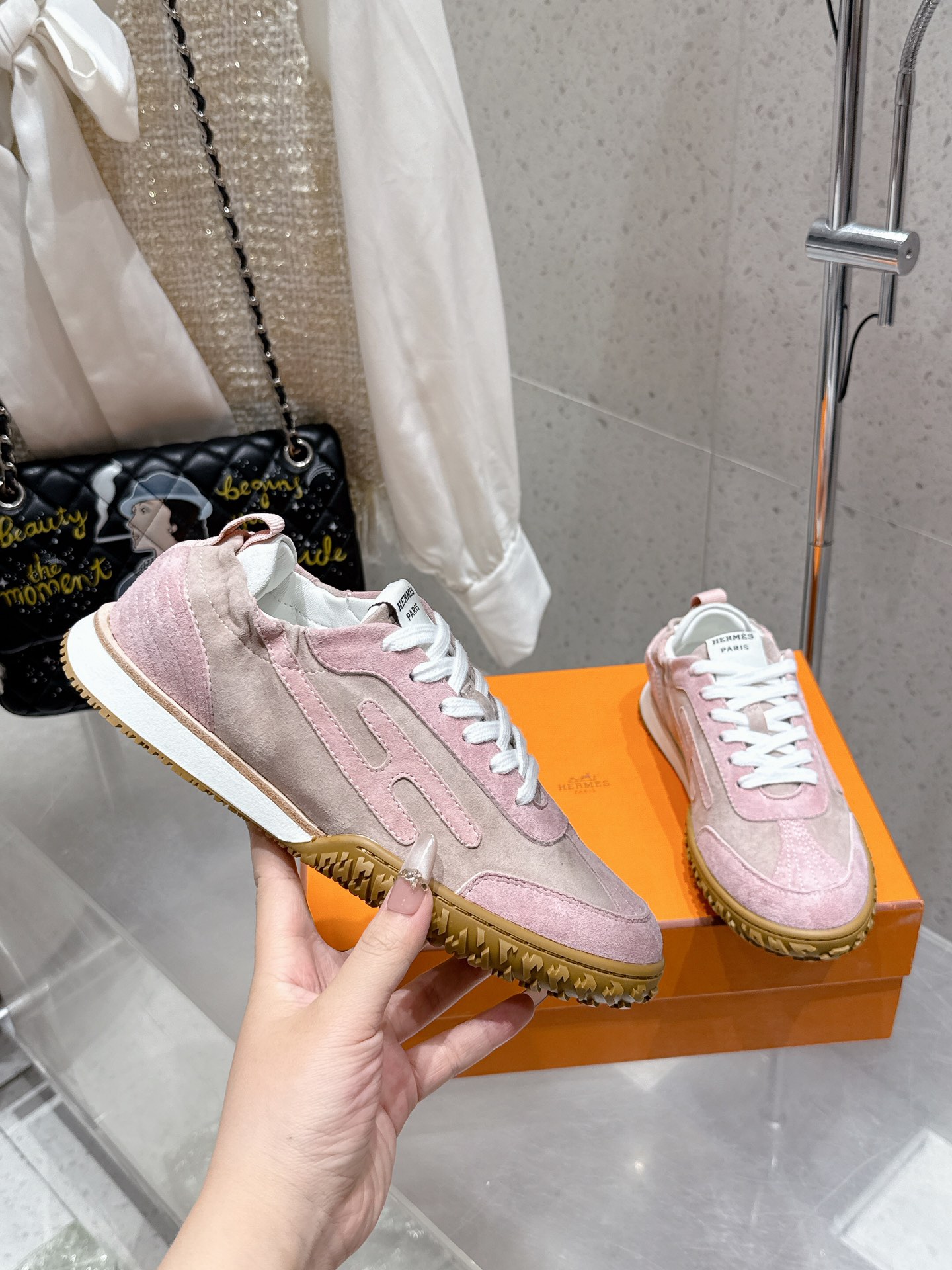 这款鞋子是AAAAA 1:1 质量 (非常棒). 使用了和原版一模一样的材料. 商标部分也保持了和爱马仕/Hermes一样. 图片拍摄是实物鞋子拍摄, 您所收到的实物保证和我们图片一模一样.