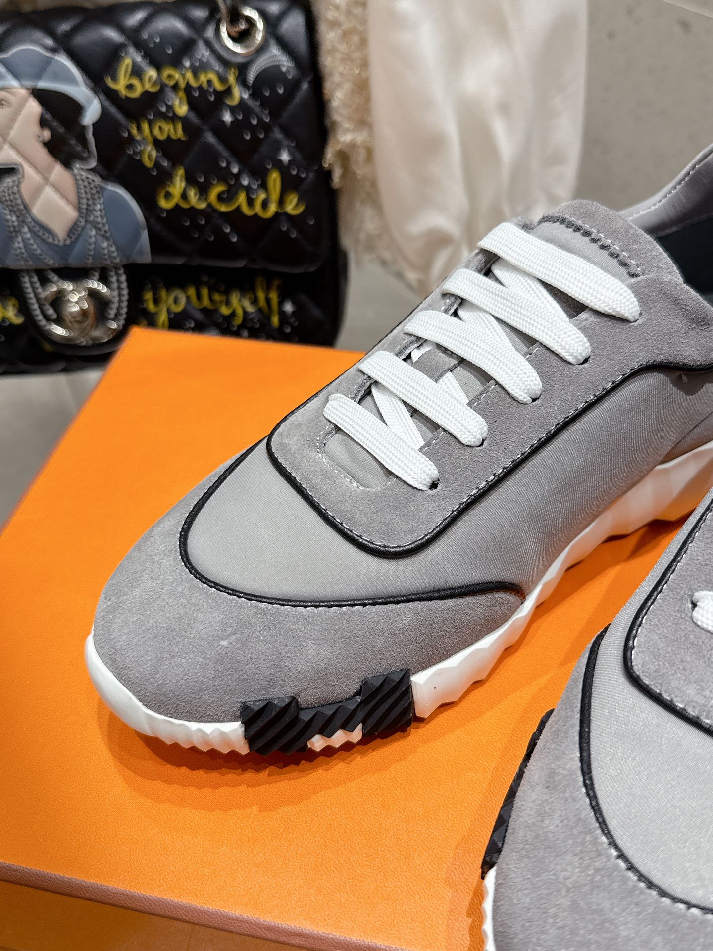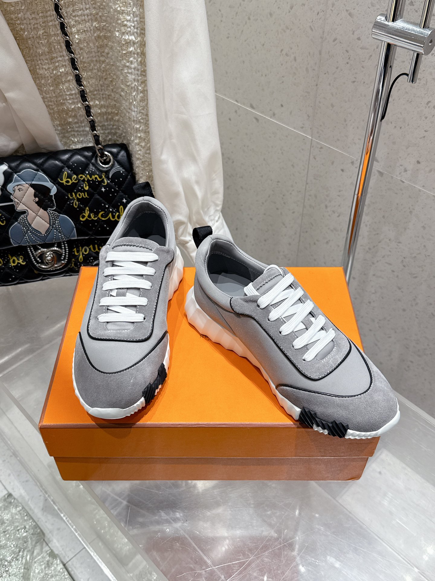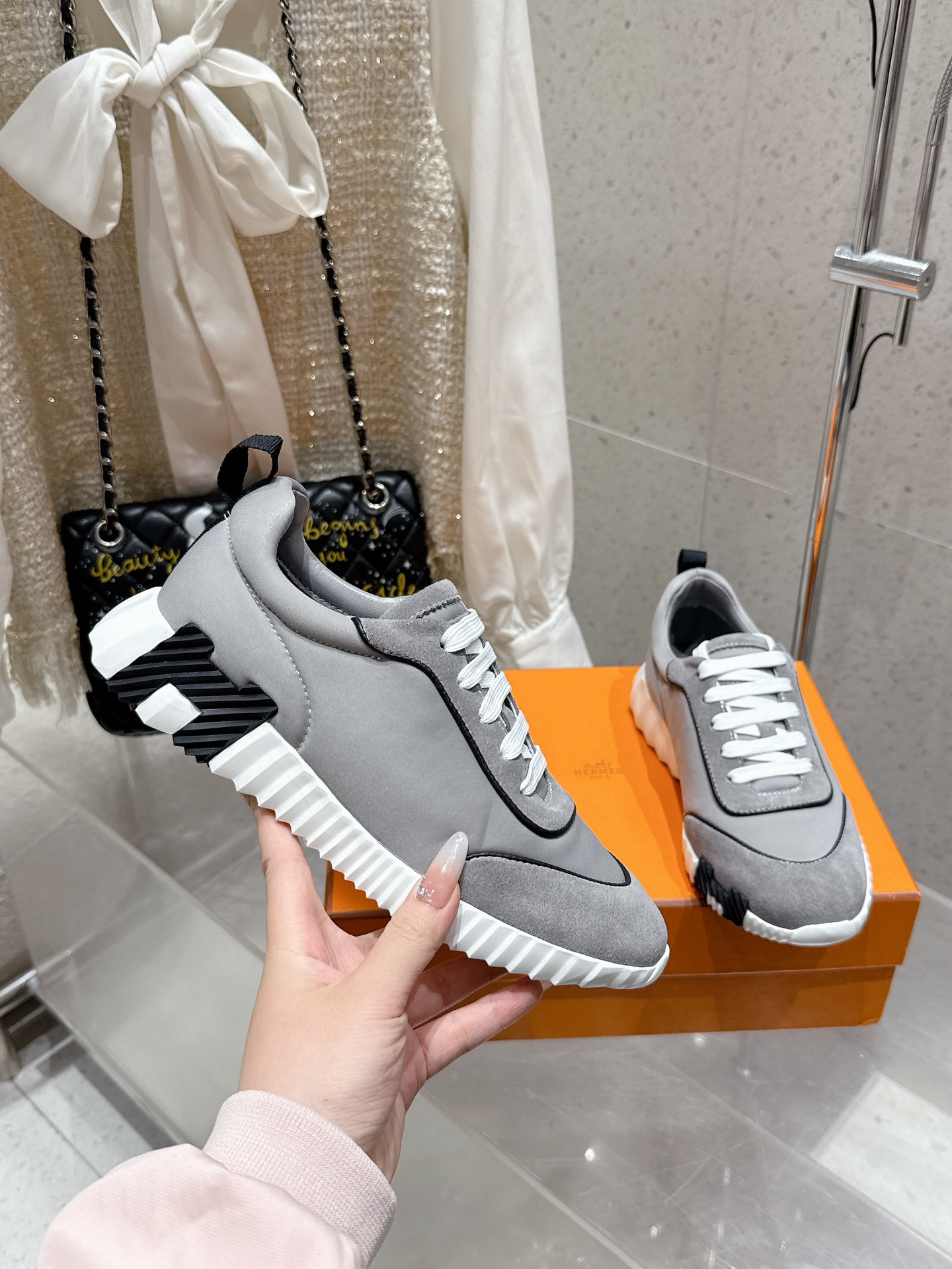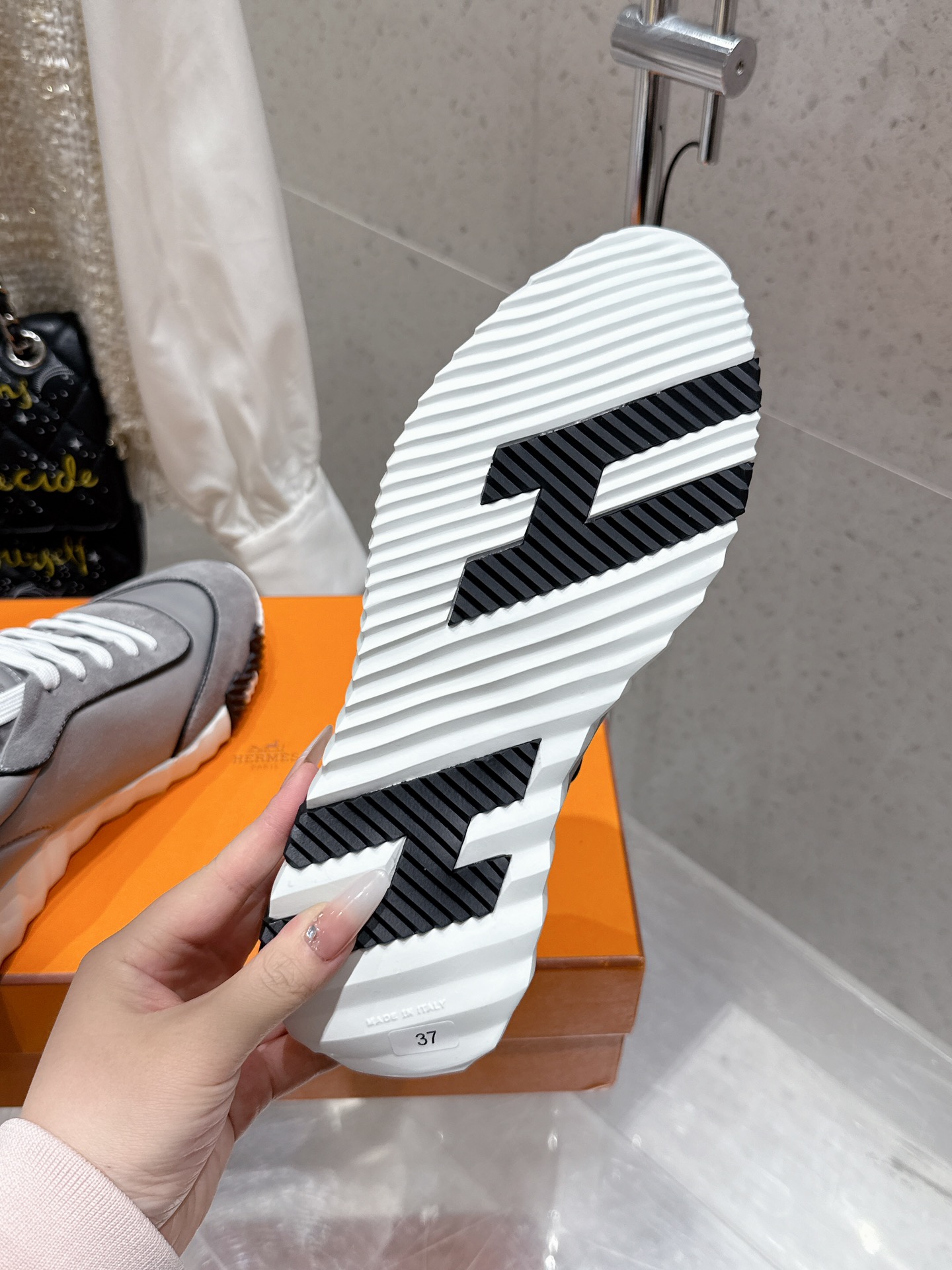 这款鞋子是AAAAA 1:1 质量 (非常棒). 使用了和原版一模一样的材料. 商标部分也保持了和爱马仕/Hermes一样. 图片拍摄是实物鞋子拍摄, 您所收到的实物保证和我们图片一模一样.