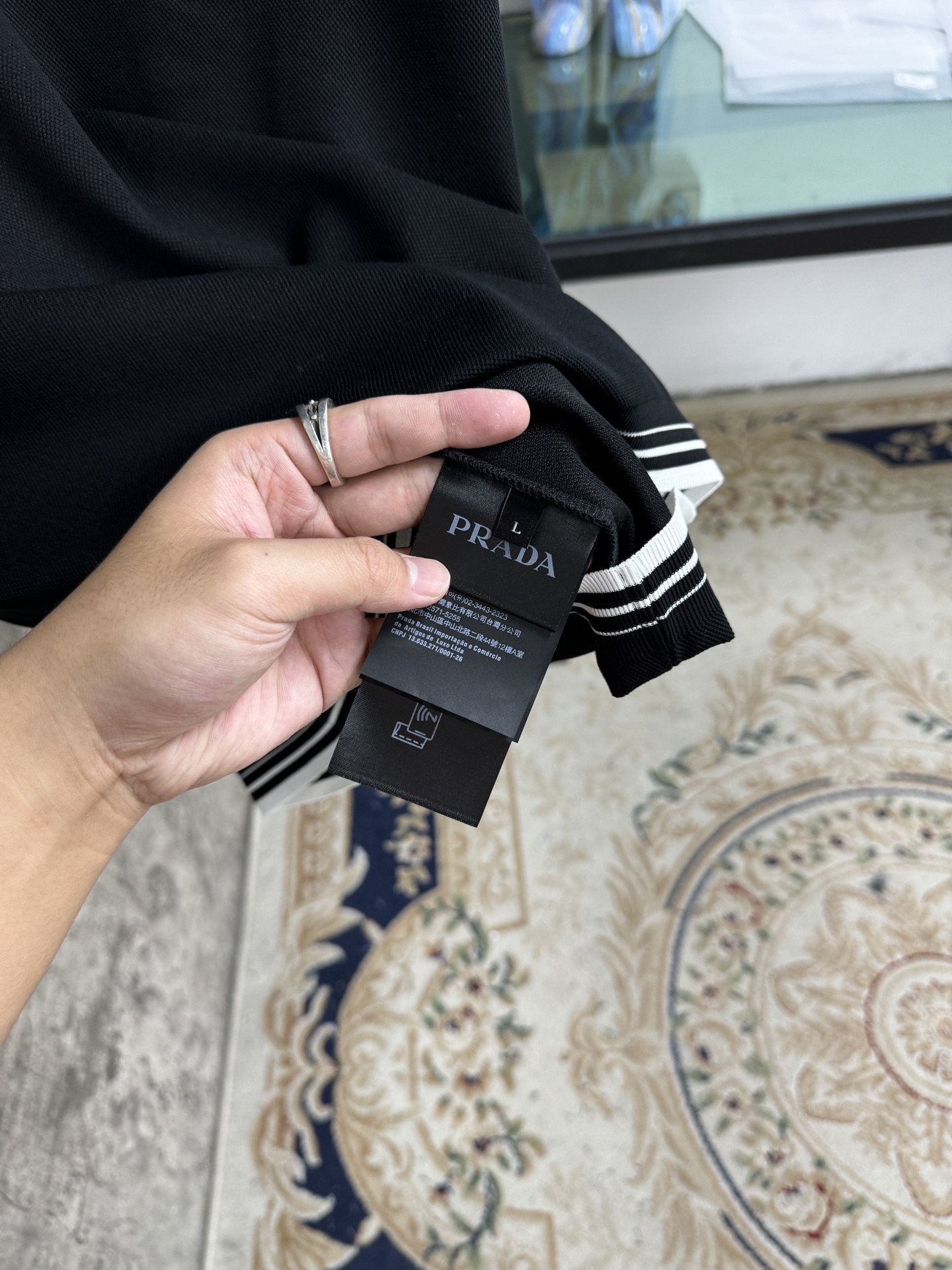 这款衣服是AAAAA 1:1 质量 (非常棒). 使用了和原版一模一样的材料. 商标部分也保持了和普拉达/Prada一样. 图片拍摄是实物衣服拍摄, 您所收到的实物保证和我们图片一模一样.