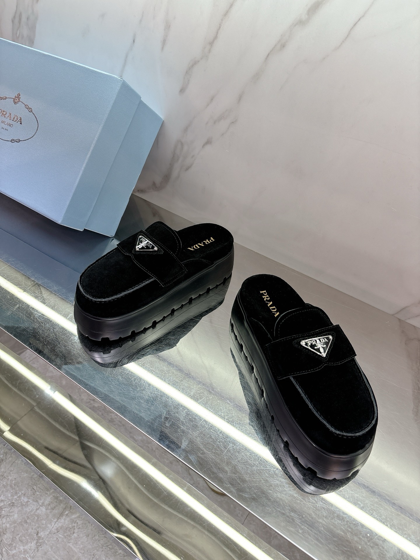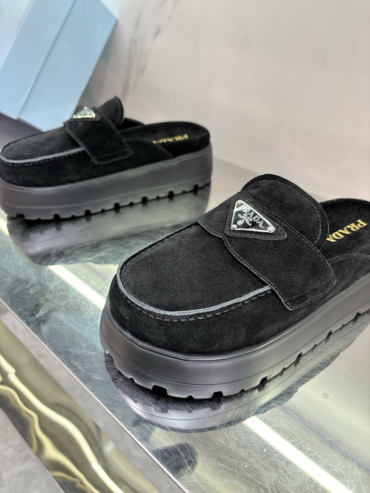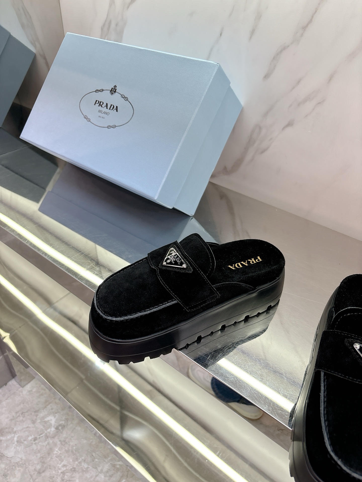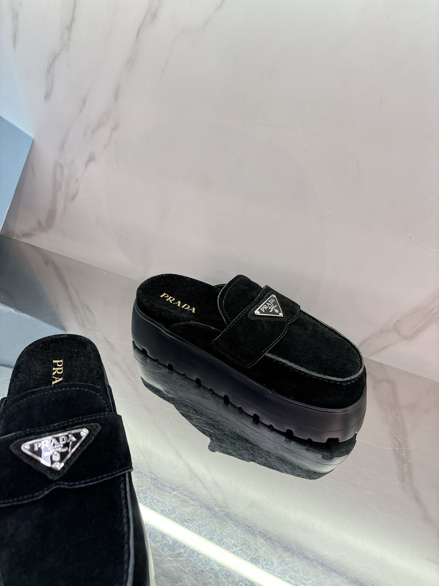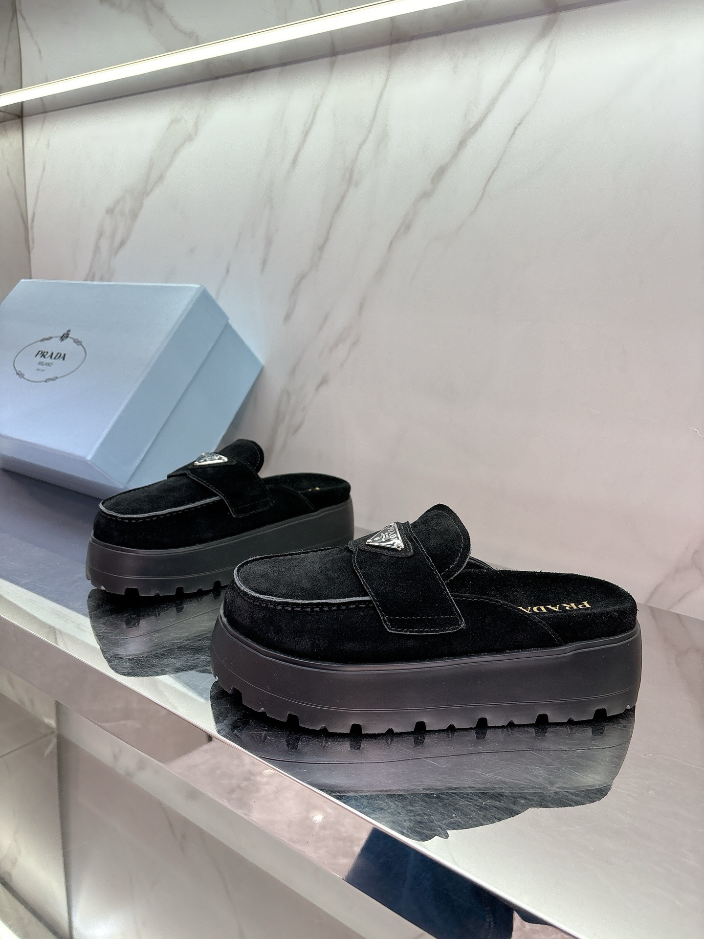 这款鞋子是AAAAA 1:1 质量 (非常棒). 使用了和原版一模一样的材料. 商标部分也保持了和普拉达/Prada一样. 图片拍摄是实物鞋子拍摄, 您所收到的实物保证和我们图片一模一样.