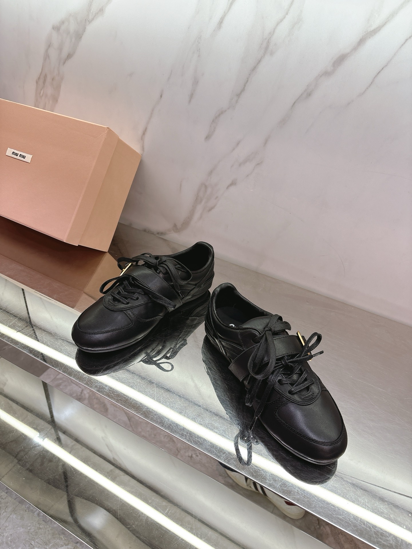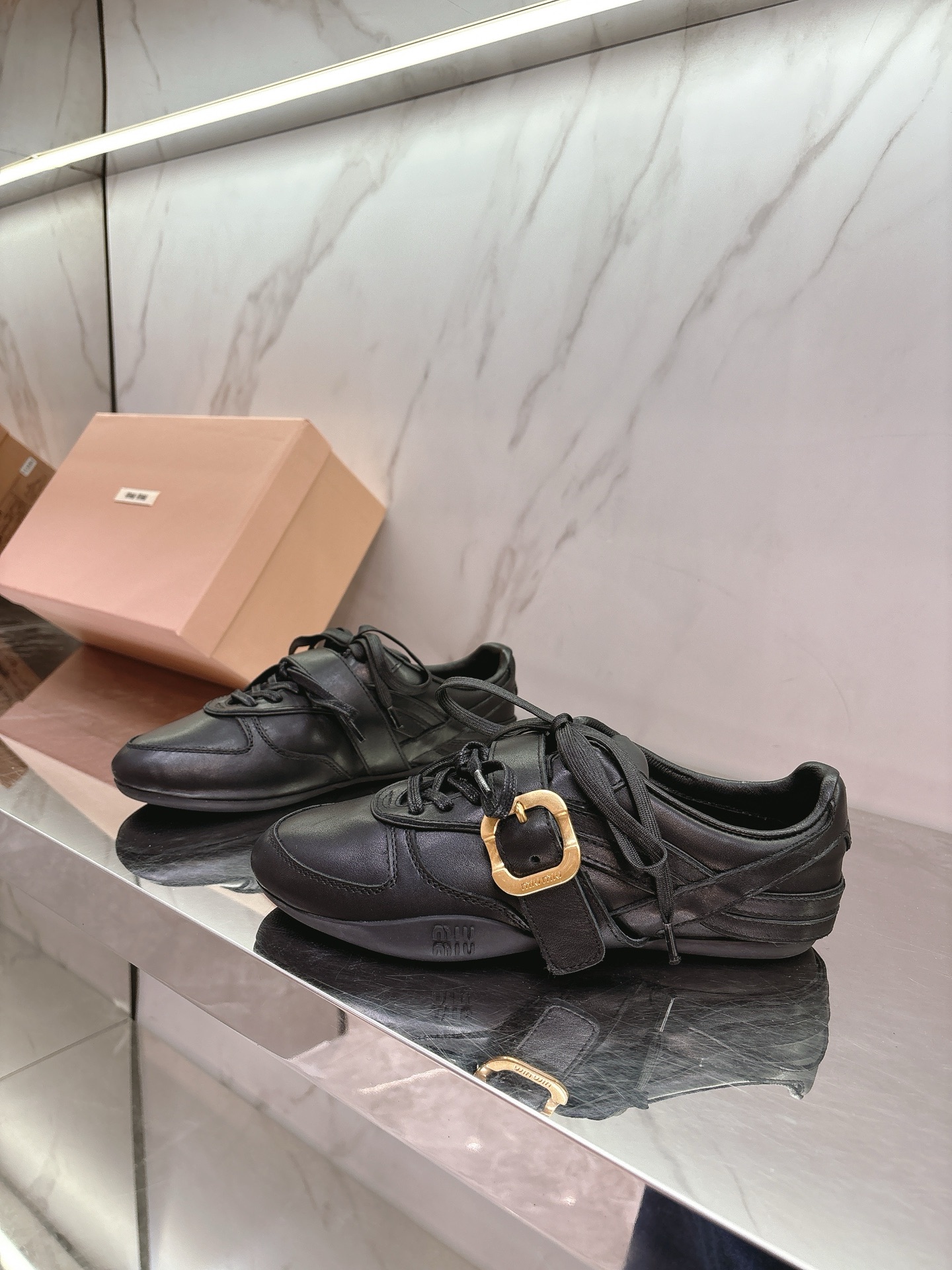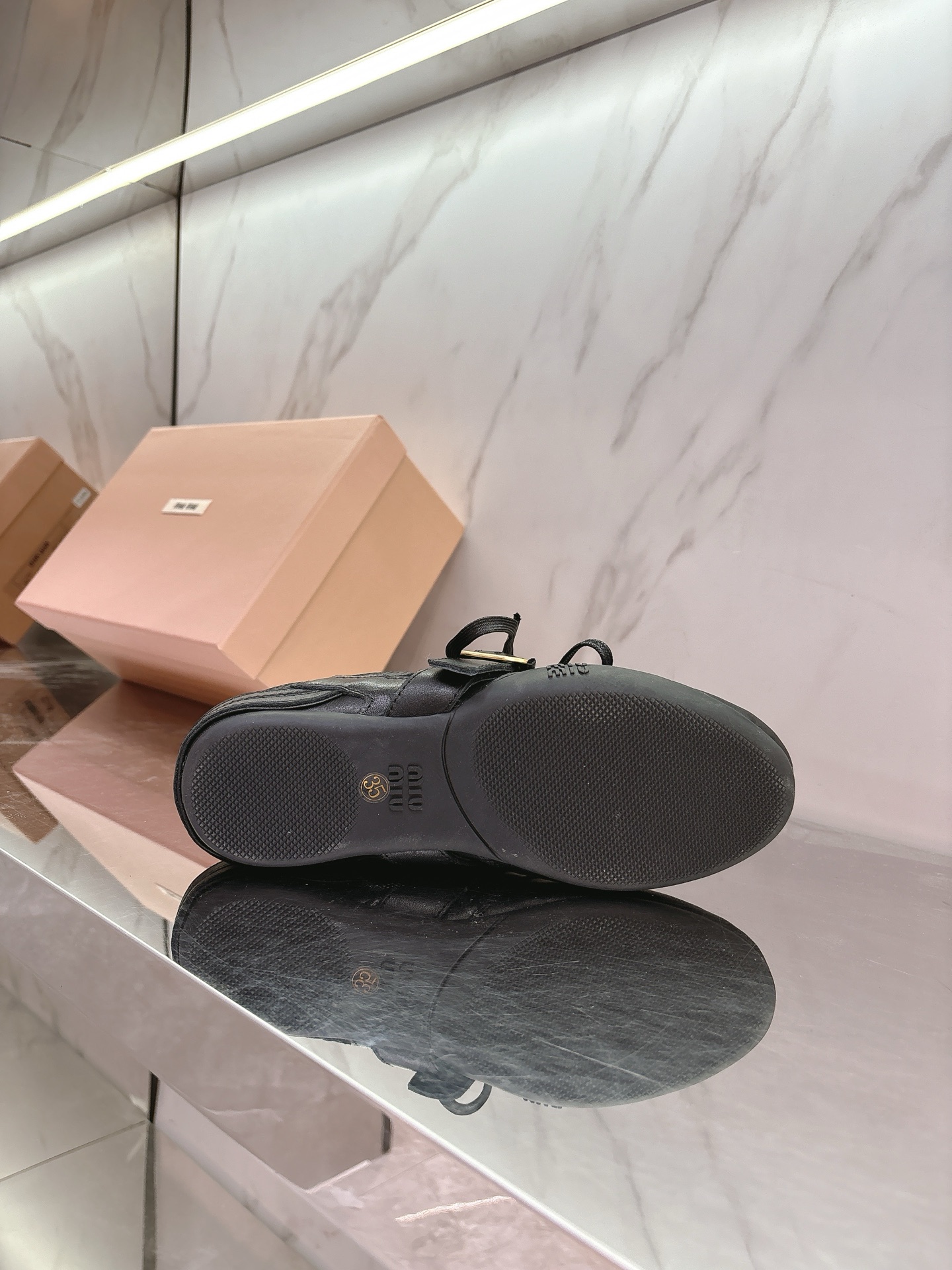 这款鞋子是AAAAA 1:1 质量 (非常棒). 使用了和原版一模一样的材料. 商标部分也保持了和缪缪/Miu Miu一样. 图片拍摄是实物鞋子拍摄, 您所收到的实物保证和我们图片一模一样.
