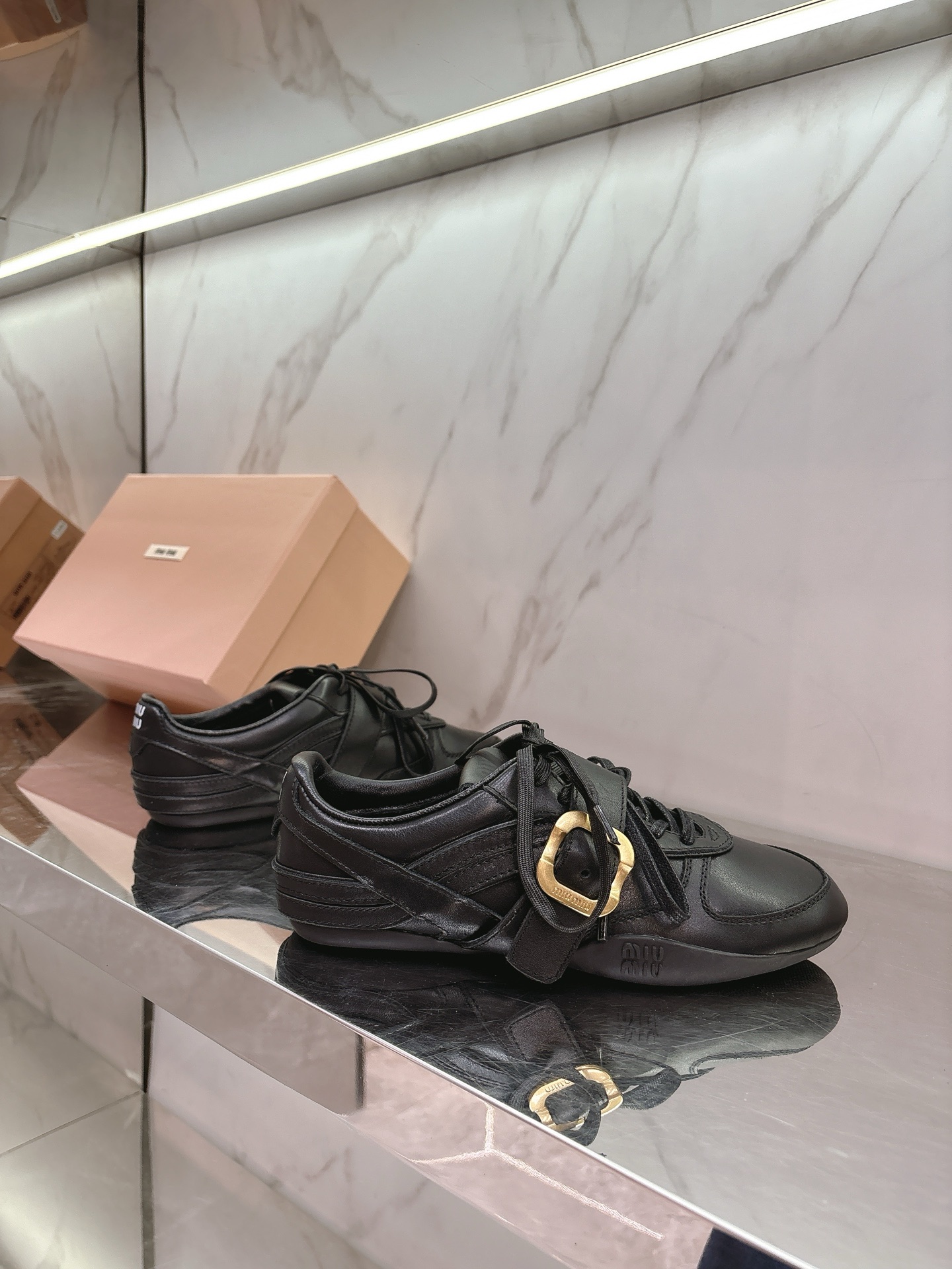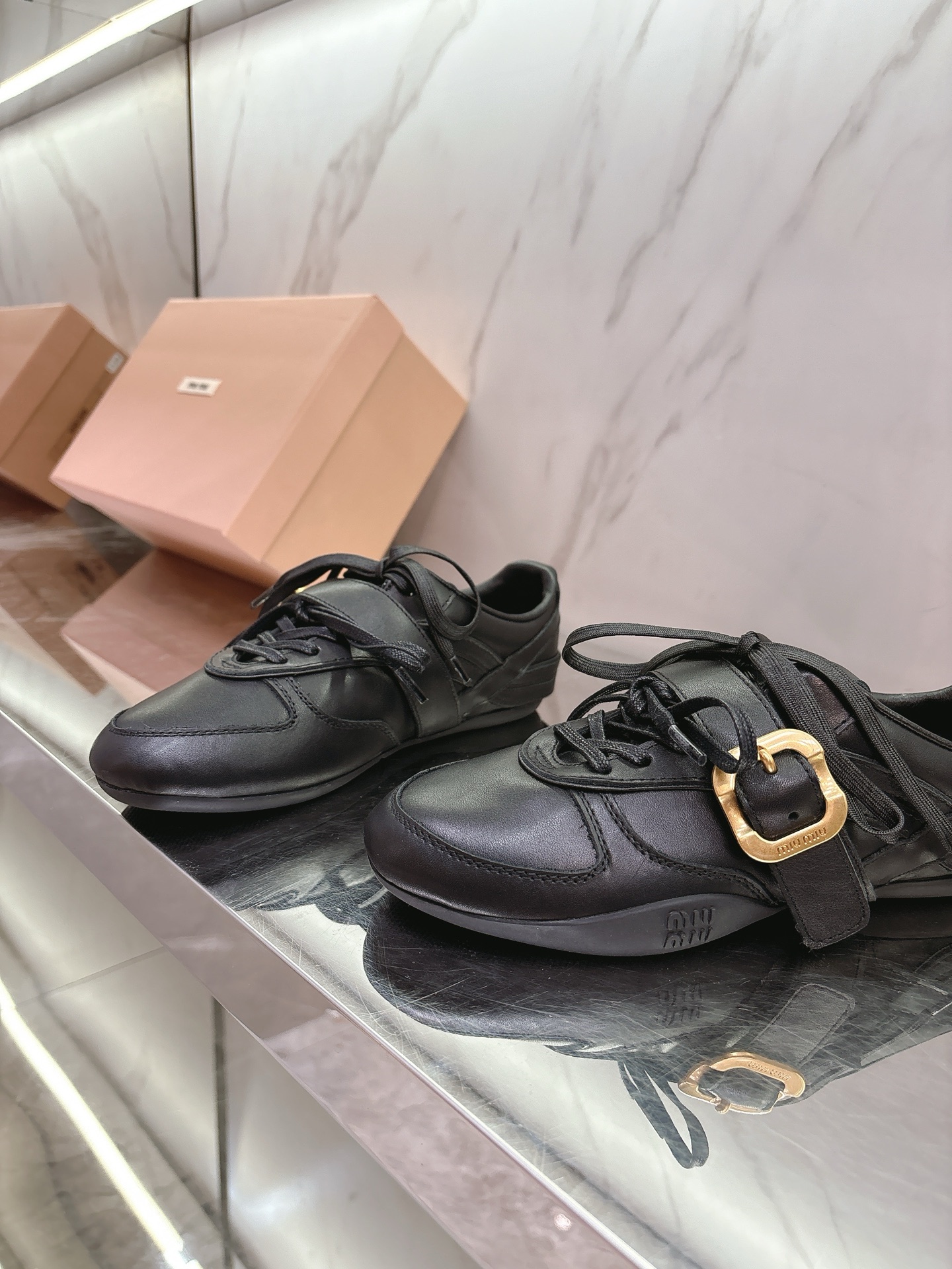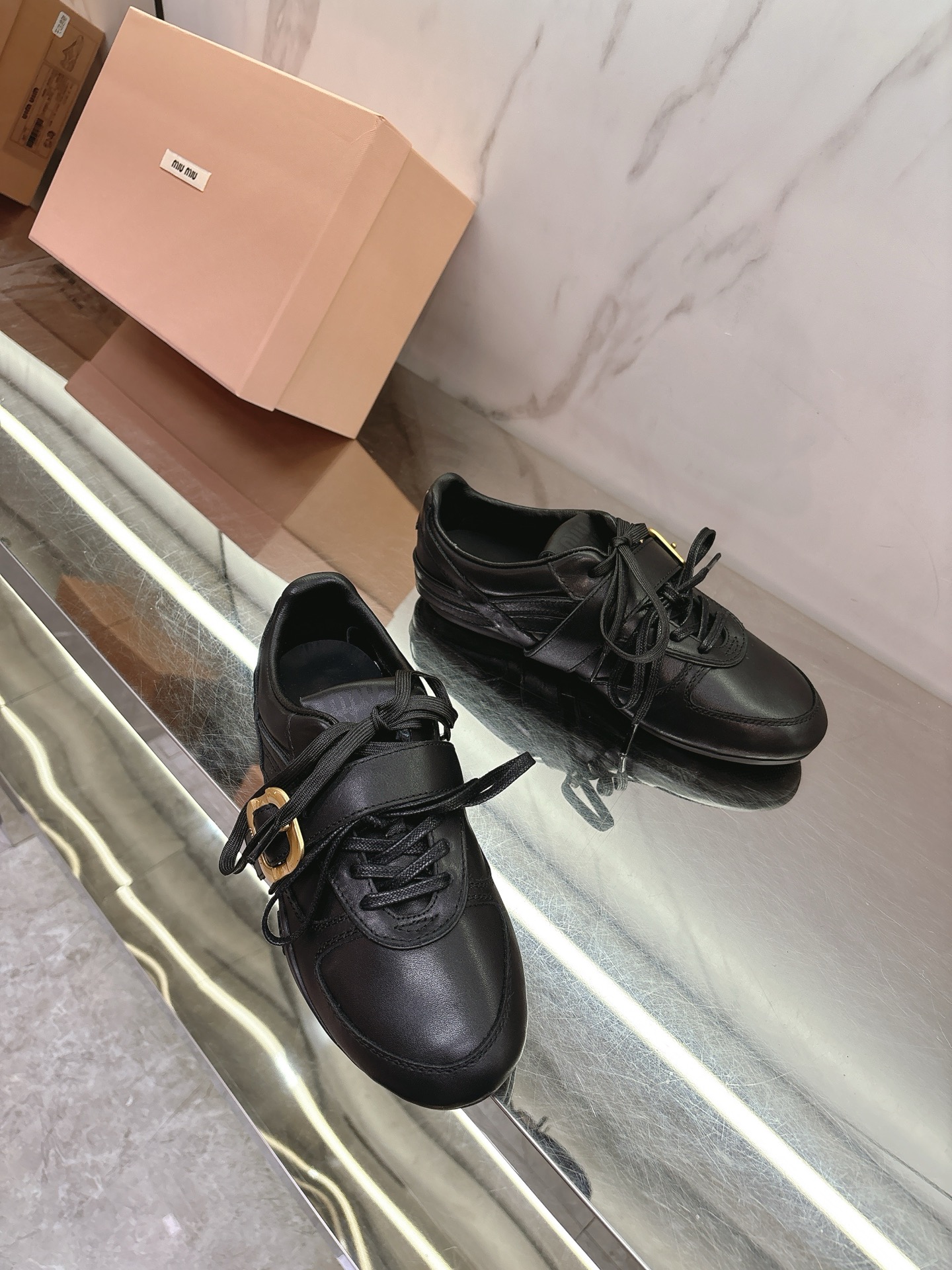 这款鞋子是AAAAA 1:1 质量 (非常棒). 使用了和原版一模一样的材料. 商标部分也保持了和缪缪/Miu Miu一样. 图片拍摄是实物鞋子拍摄, 您所收到的实物保证和我们图片一模一样.