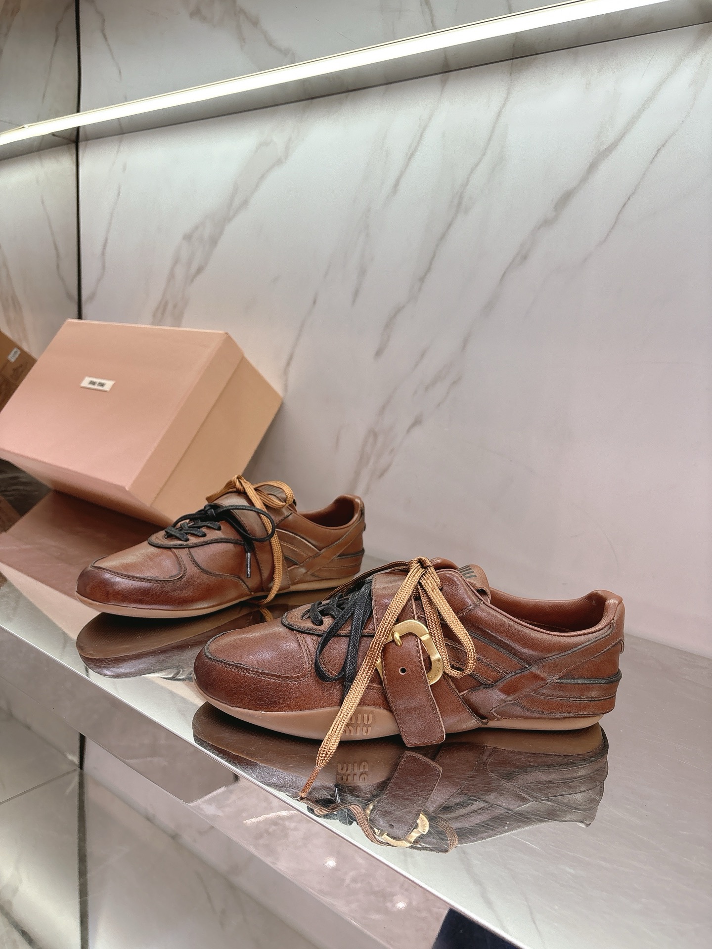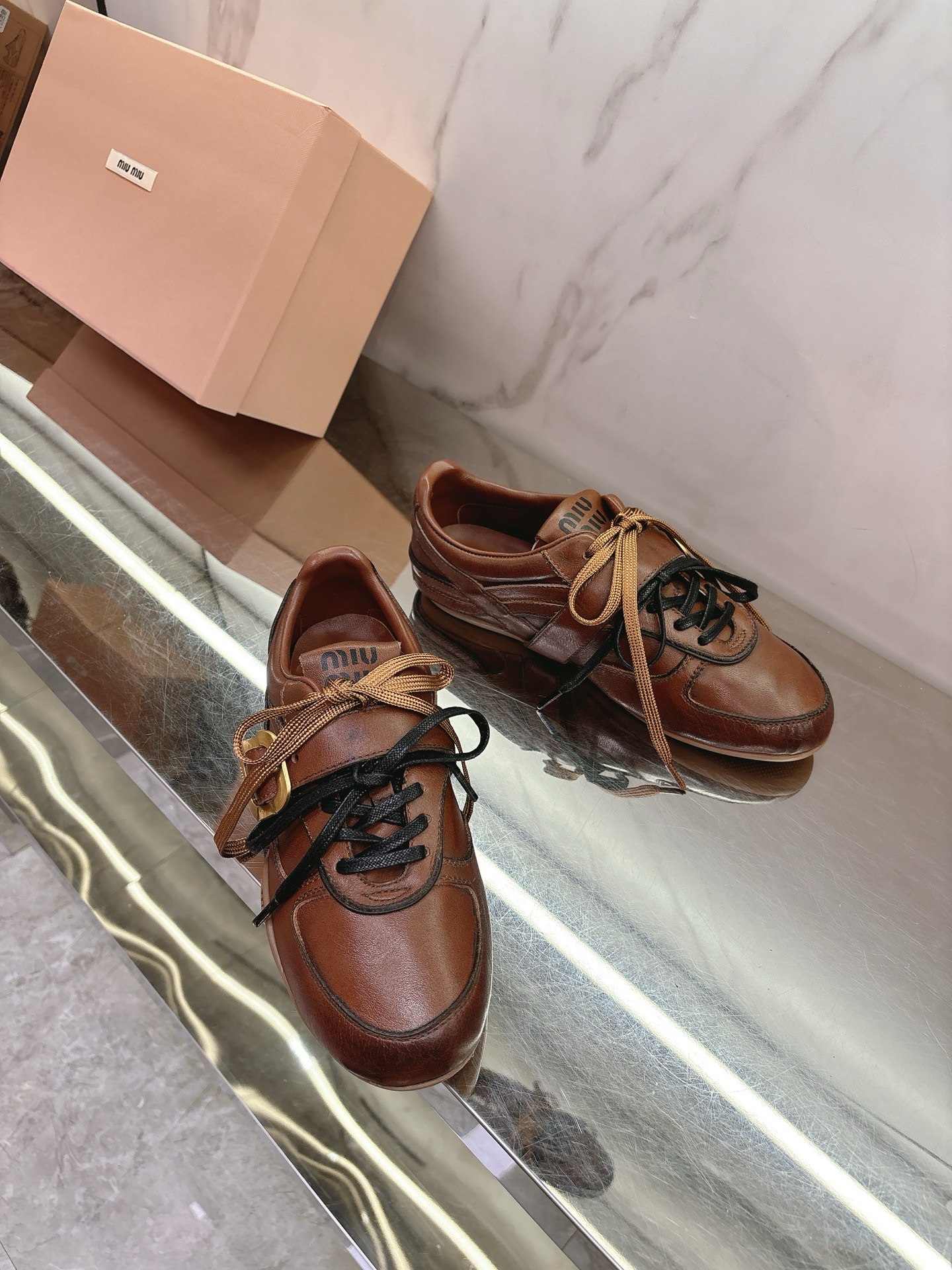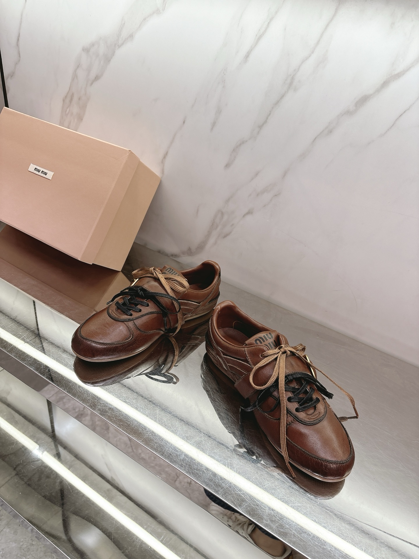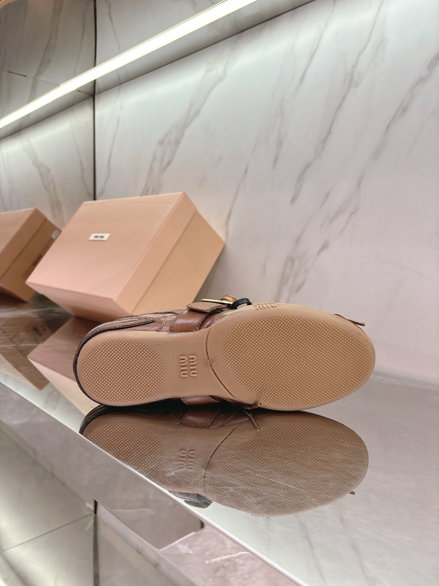 这款鞋子是AAAAA 1:1 质量 (非常棒). 使用了和原版一模一样的材料. 商标部分也保持了和缪缪/Miu Miu一样. 图片拍摄是实物鞋子拍摄, 您所收到的实物保证和我们图片一模一样.