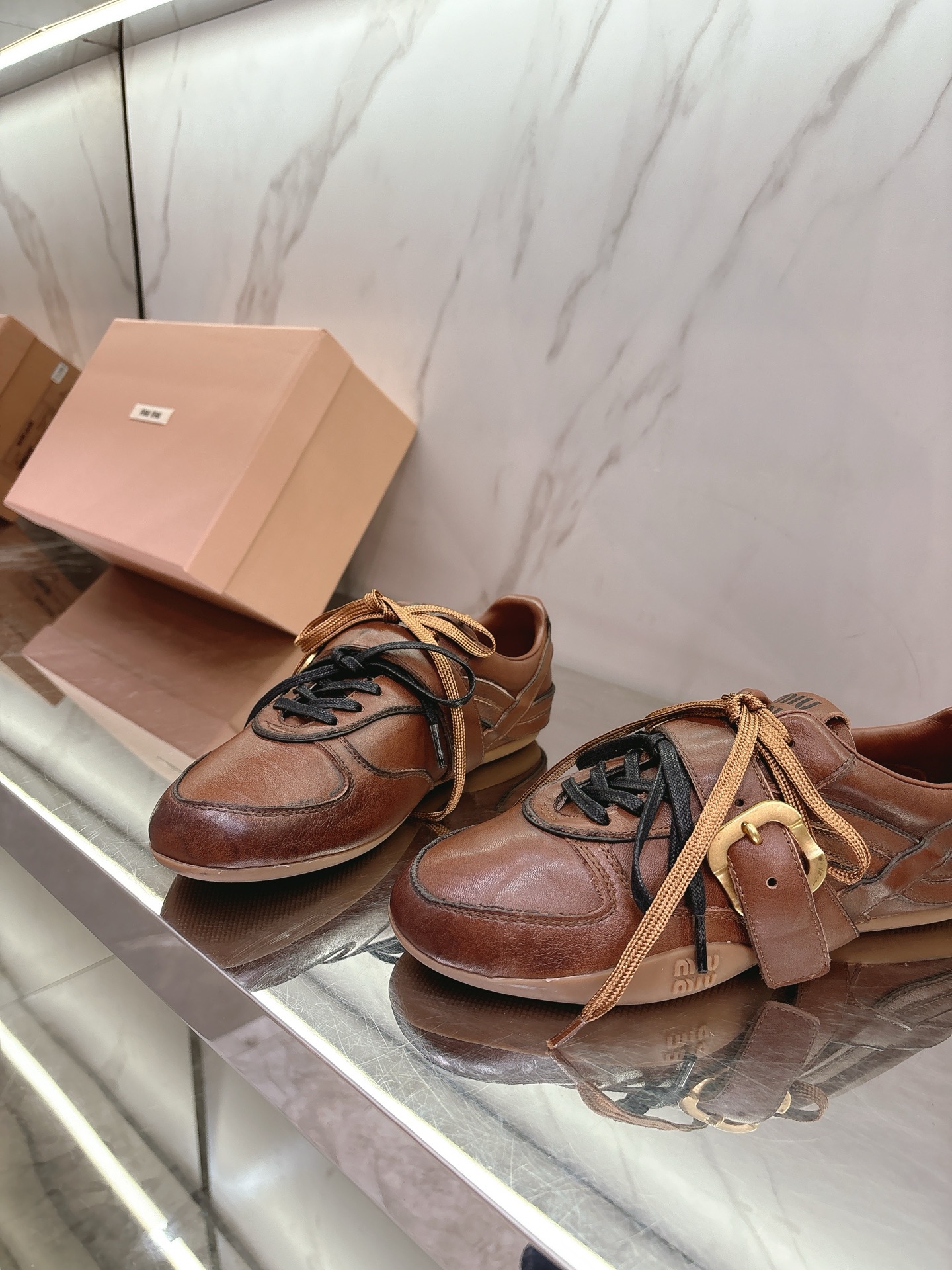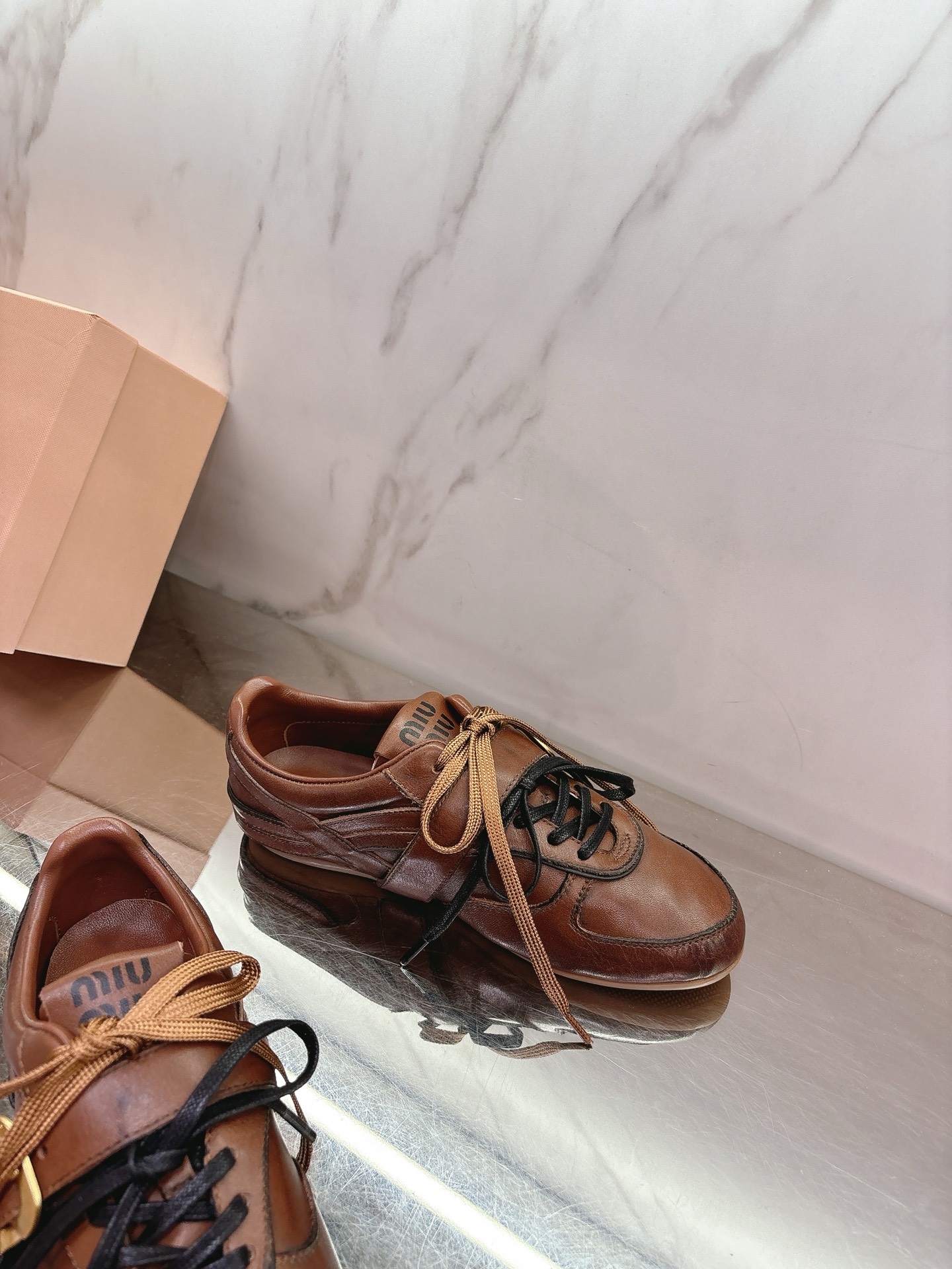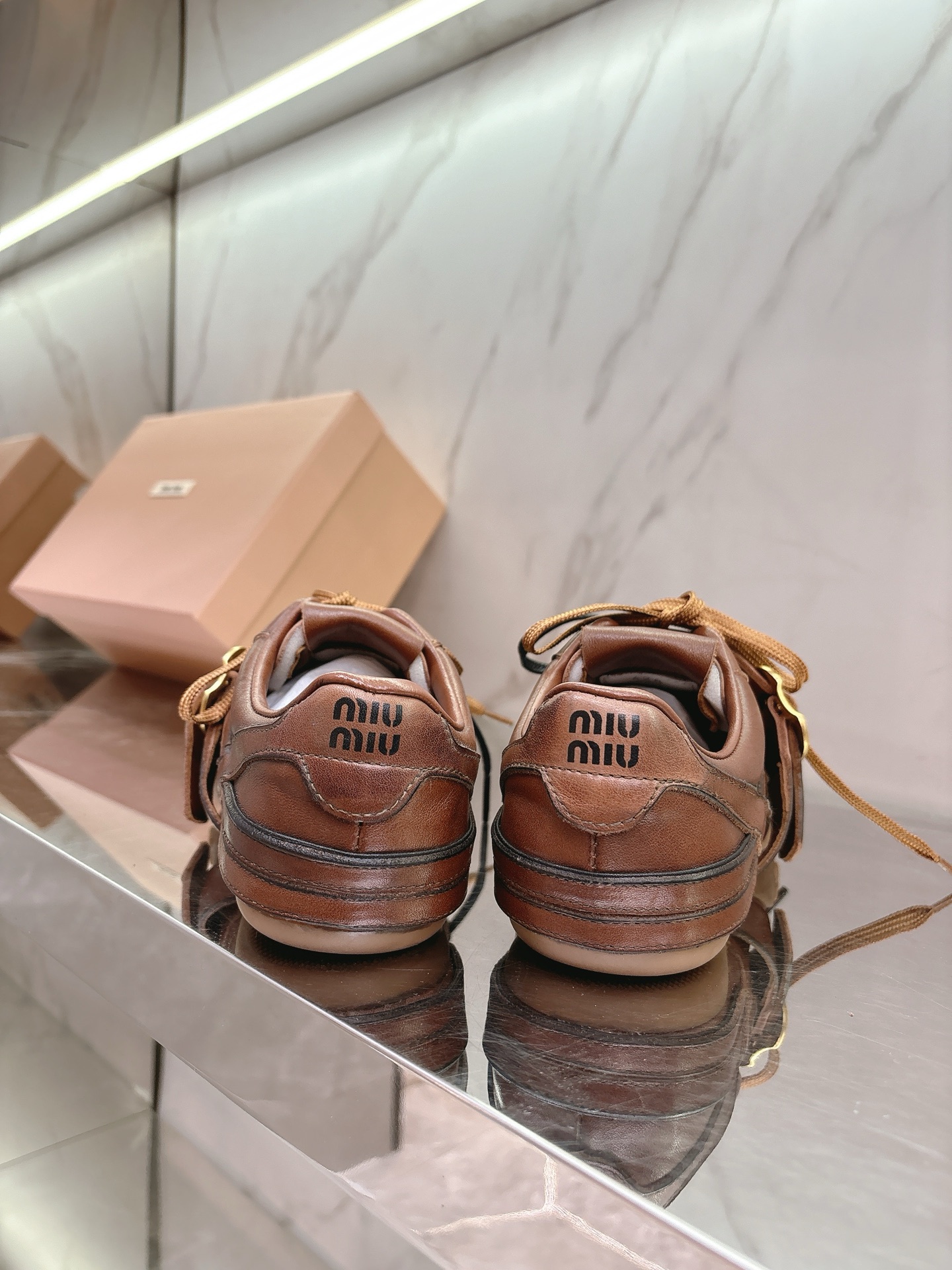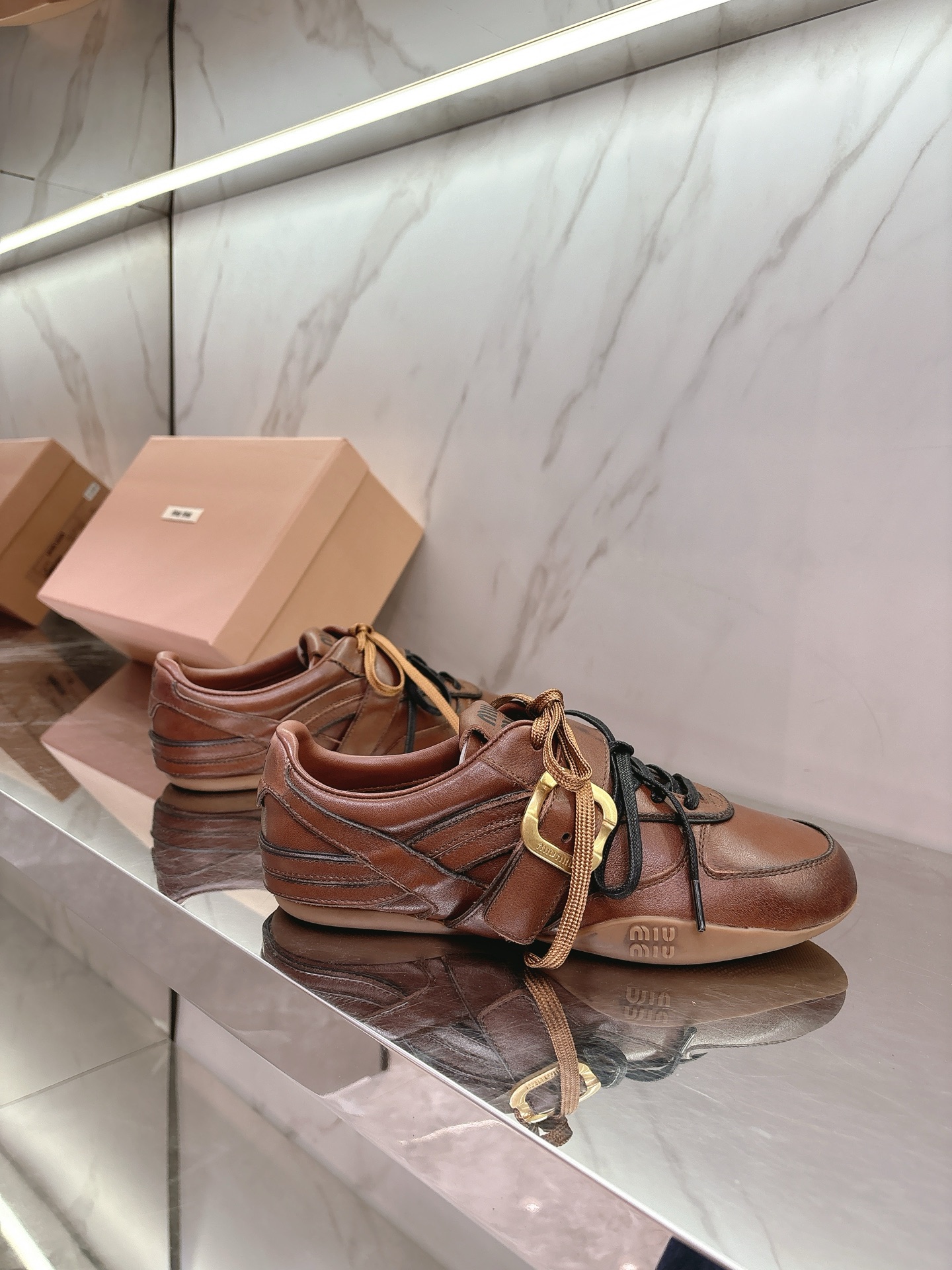 这款鞋子是AAAAA 1:1 质量 (非常棒). 使用了和原版一模一样的材料. 商标部分也保持了和缪缪/Miu Miu一样. 图片拍摄是实物鞋子拍摄, 您所收到的实物保证和我们图片一模一样.