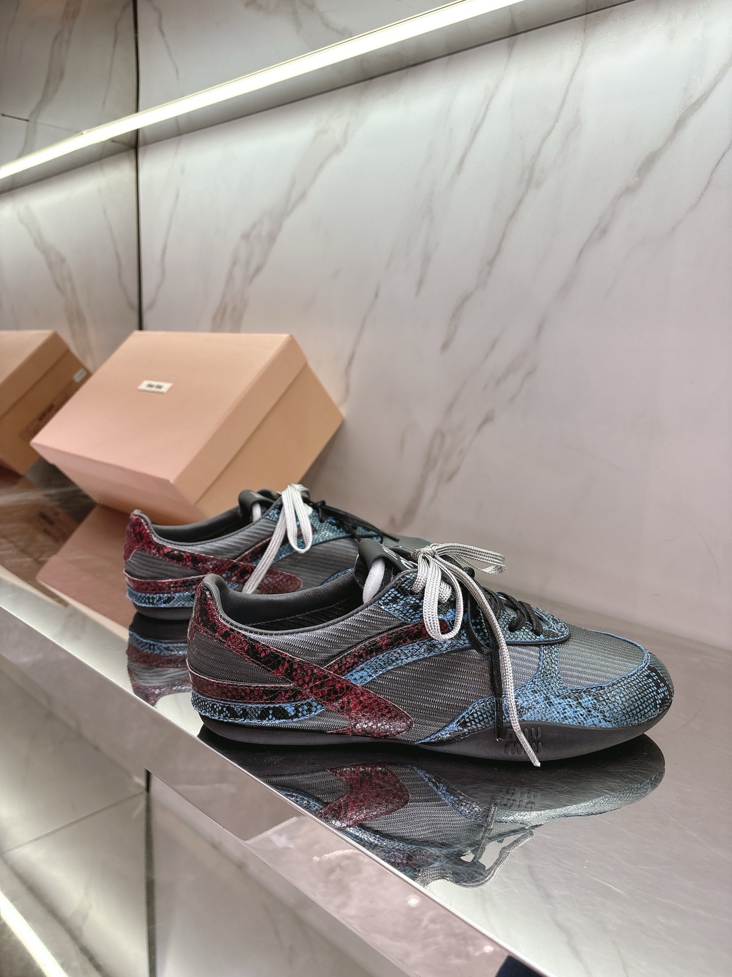 这款鞋子是AAAAA 1:1 质量 (非常棒). 使用了和原版一模一样的材料. 商标部分也保持了和缪缪/Miu Miu一样. 图片拍摄是实物鞋子拍摄, 您所收到的实物保证和我们图片一模一样.