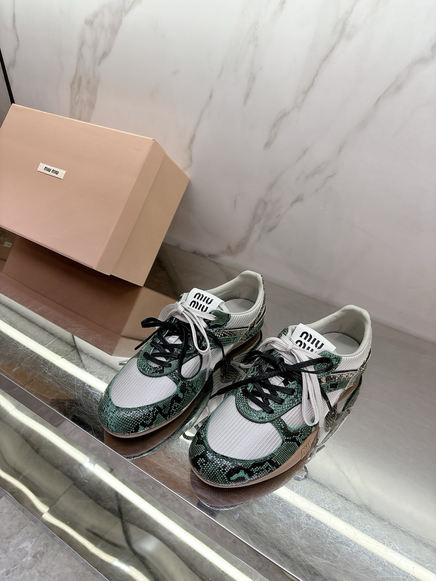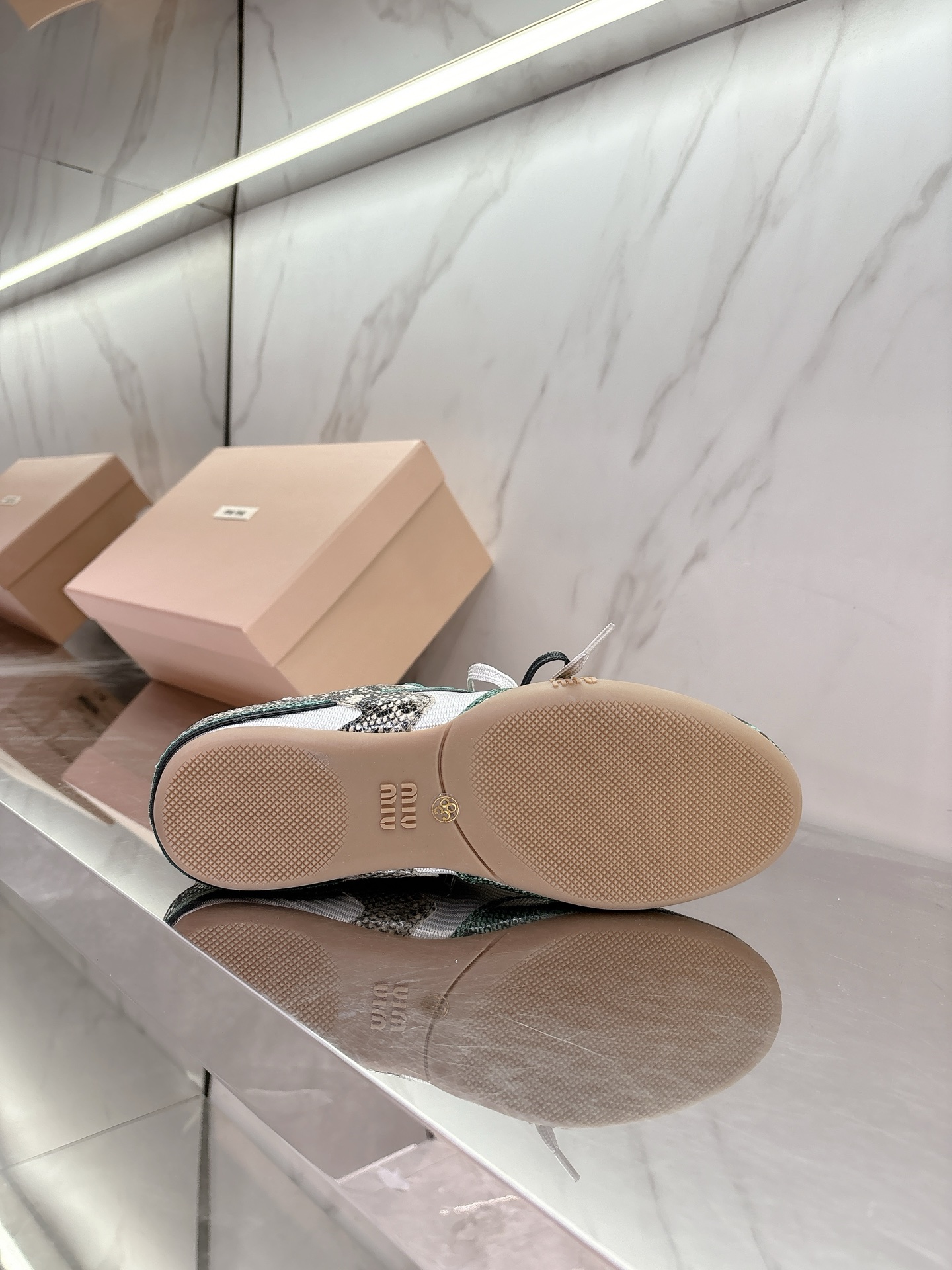 这款鞋子是AAAAA 1:1 质量 (非常棒). 使用了和原版一模一样的材料. 商标部分也保持了和缪缪/Miu Miu一样. 图片拍摄是实物鞋子拍摄, 您所收到的实物保证和我们图片一模一样.