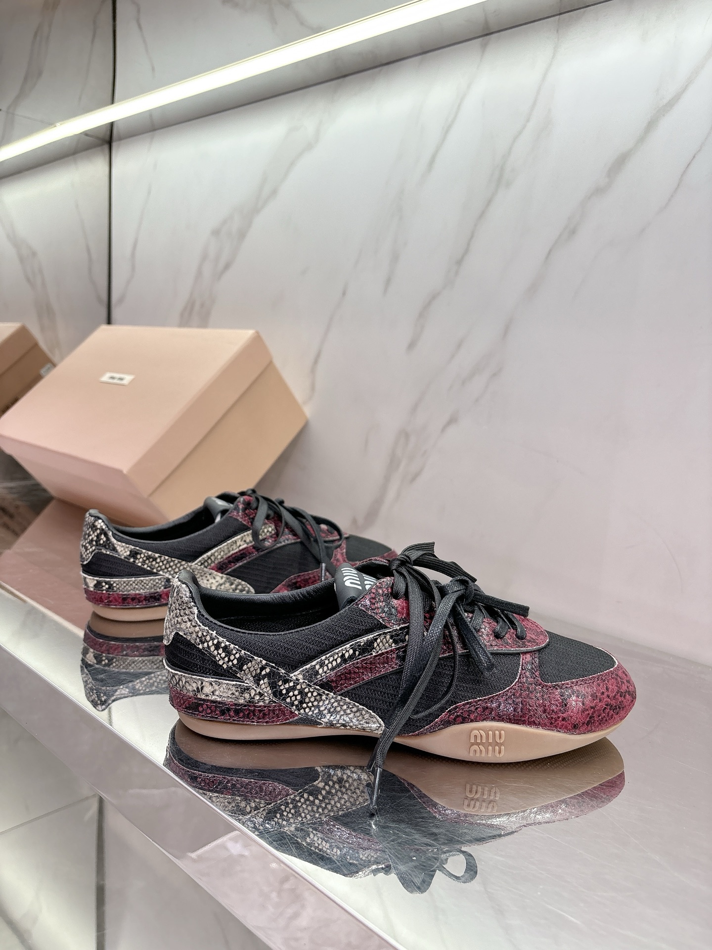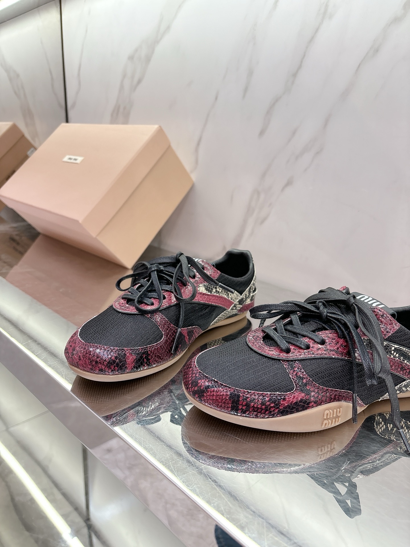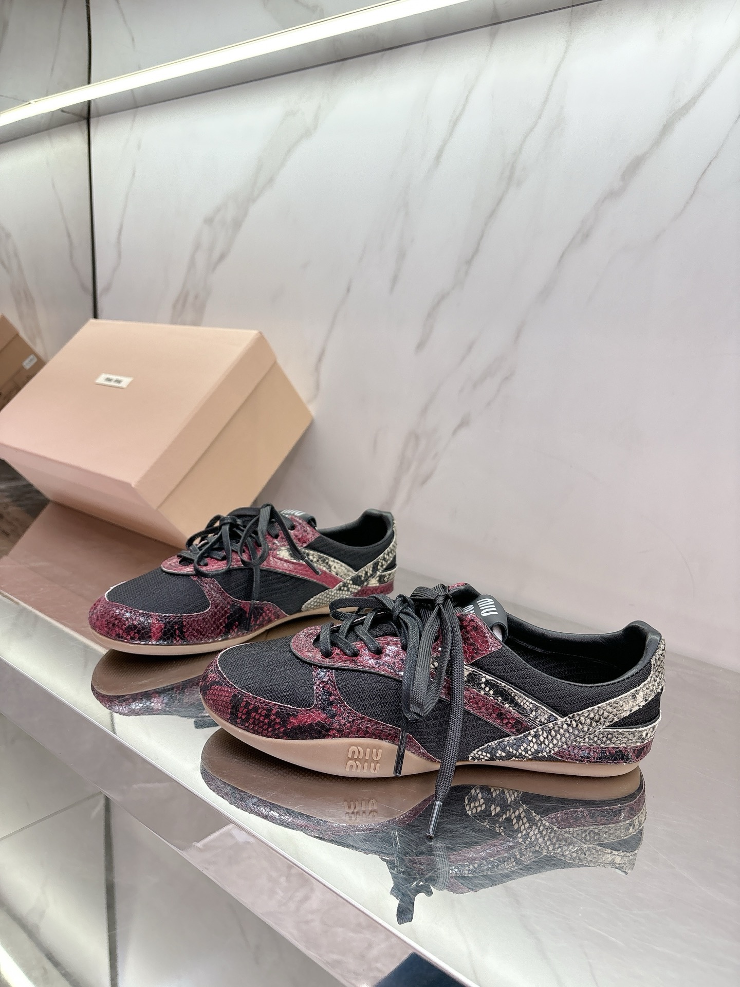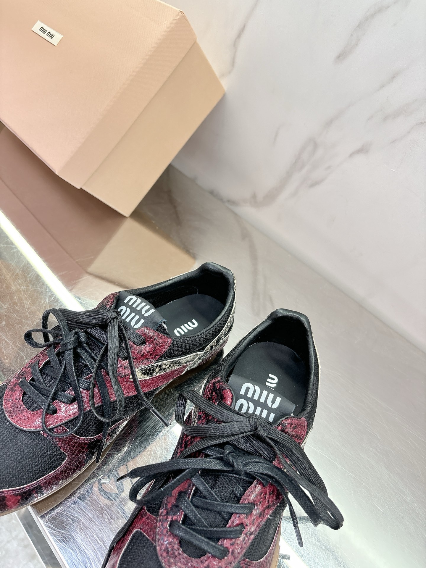 这款鞋子是AAAAA 1:1 质量 (非常棒). 使用了和原版一模一样的材料. 商标部分也保持了和缪缪/Miu Miu一样. 图片拍摄是实物鞋子拍摄, 您所收到的实物保证和我们图片一模一样.