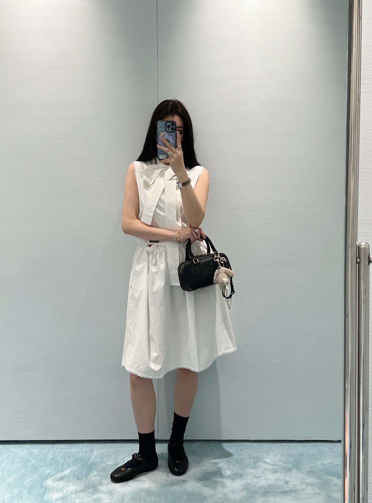 这款衣服是AAAAA 1:1 质量 (非常棒). 使用了和原版一模一样的材料. 商标部分也保持了和缪缪/Miu Miu一样. 图片拍摄是实物衣服拍摄, 您所收到的实物保证和我们图片一模一样.