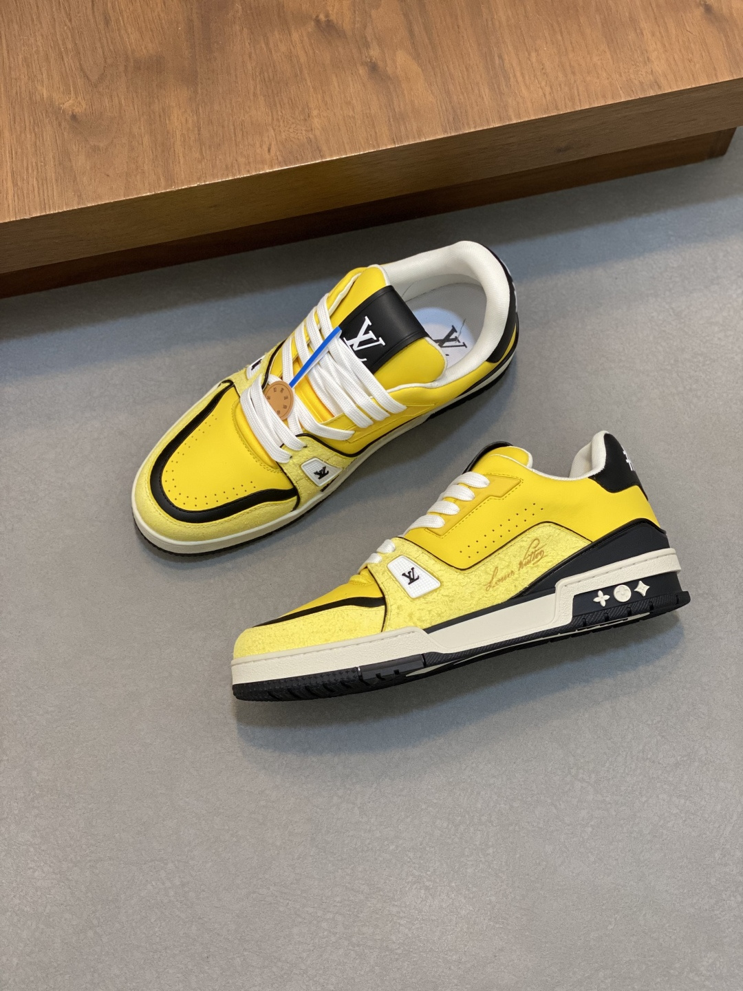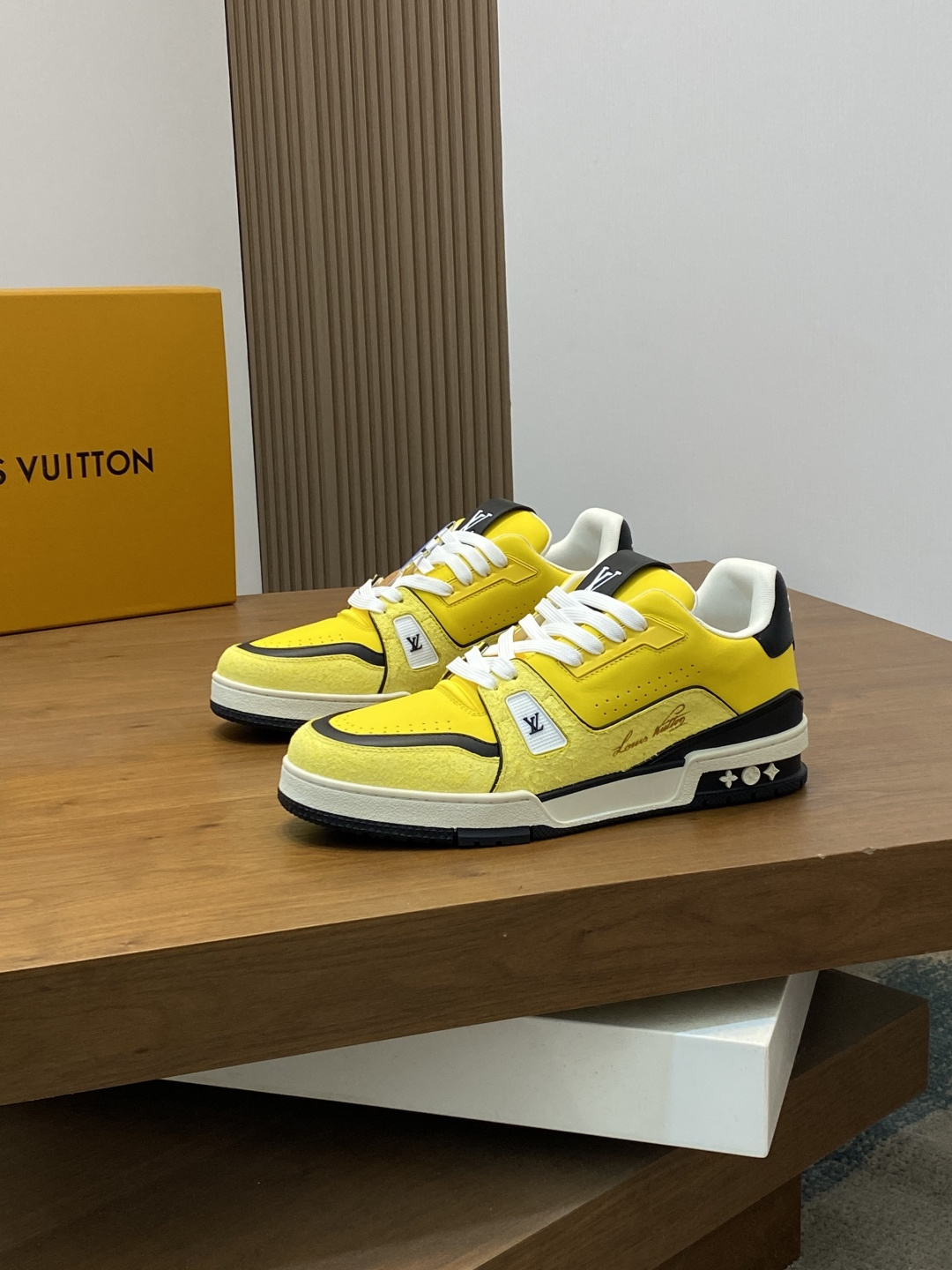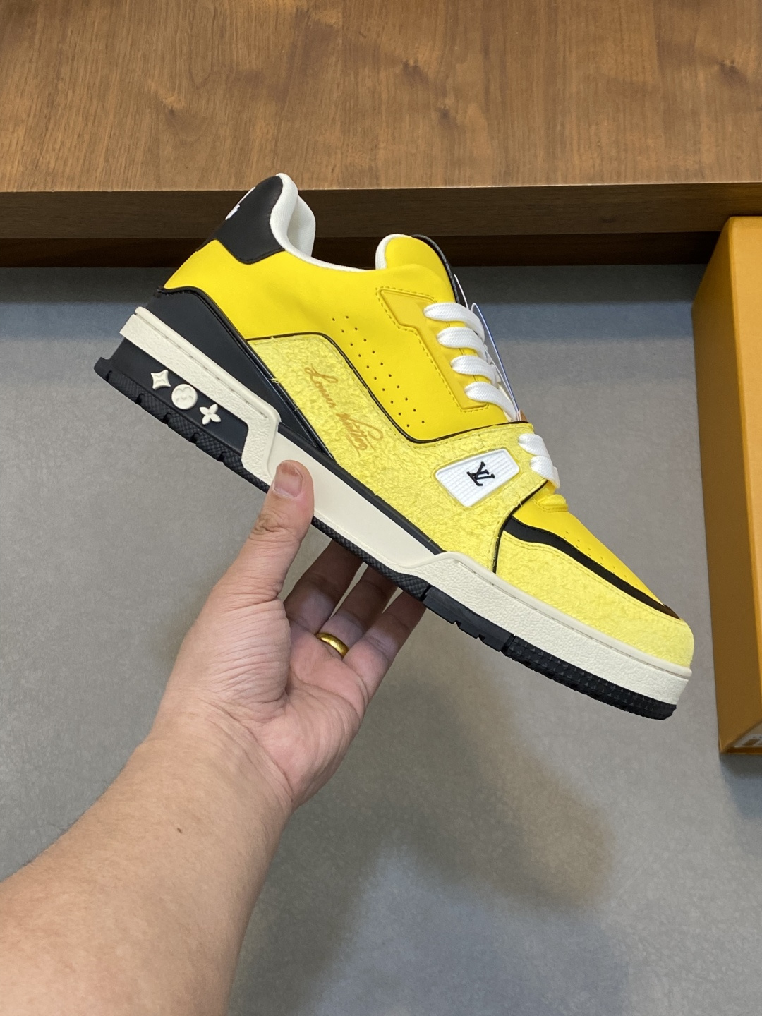 这款鞋子是AAAAA 1:1 质量 (非常棒). 使用了和原版一模一样的材料. 商标部分也保持了和路易威登/Louis Vuitton一样. 图片拍摄是实物鞋子拍摄, 您所收到的实物保证和我们图片一模一样.