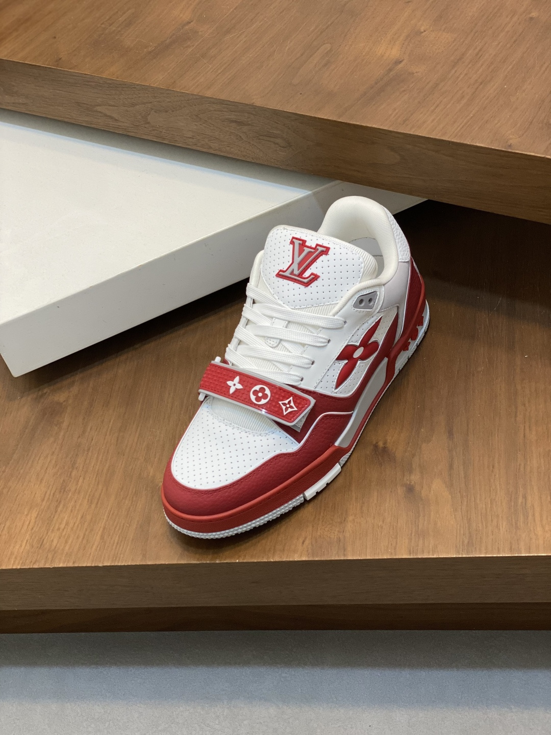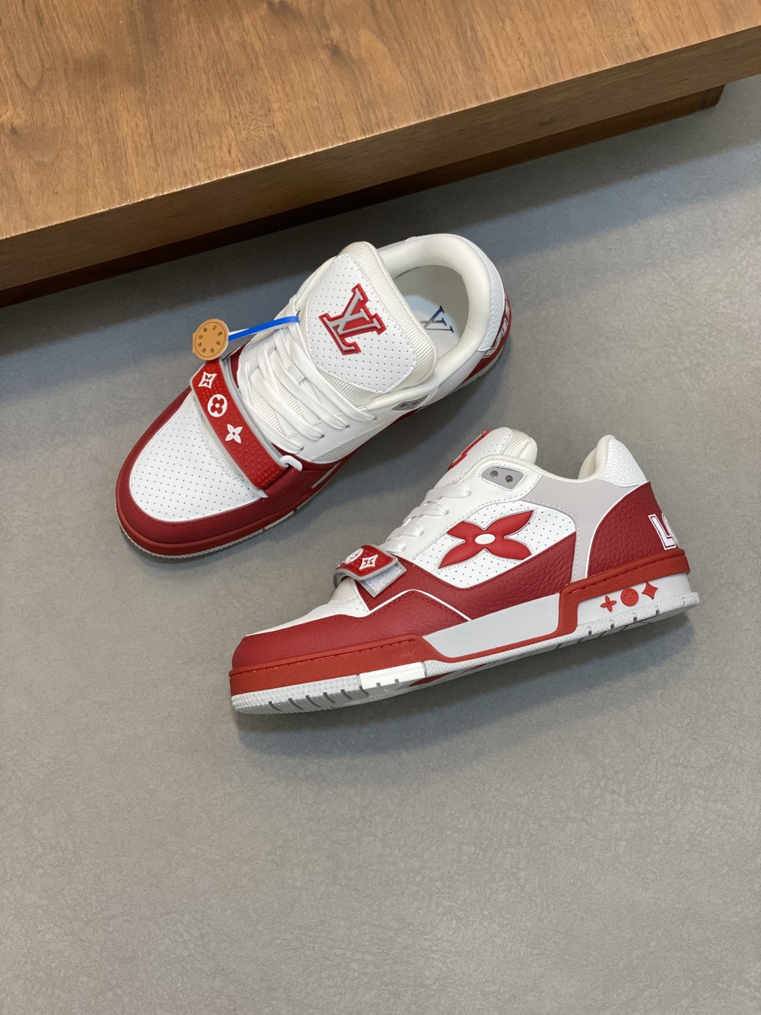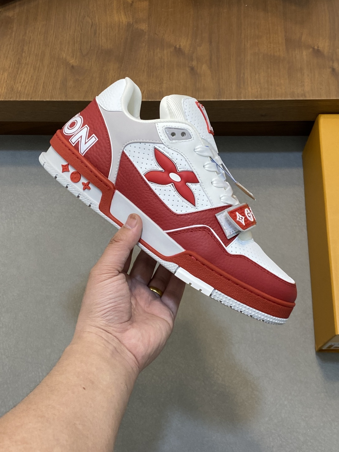 这款鞋子是AAAAA 1:1 质量 (非常棒). 使用了和原版一模一样的材料. 商标部分也保持了和路易威登/Louis Vuitton一样. 图片拍摄是实物鞋子拍摄, 您所收到的实物保证和我们图片一模一样.