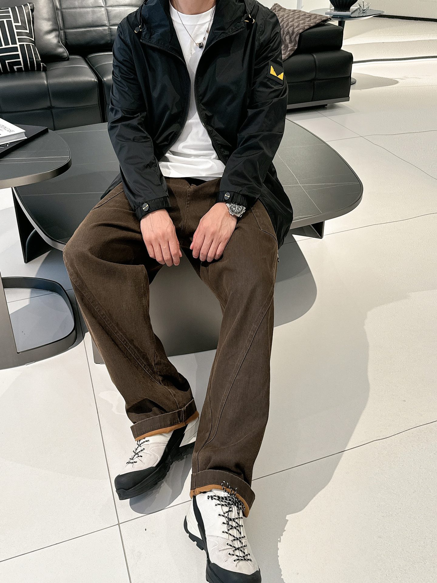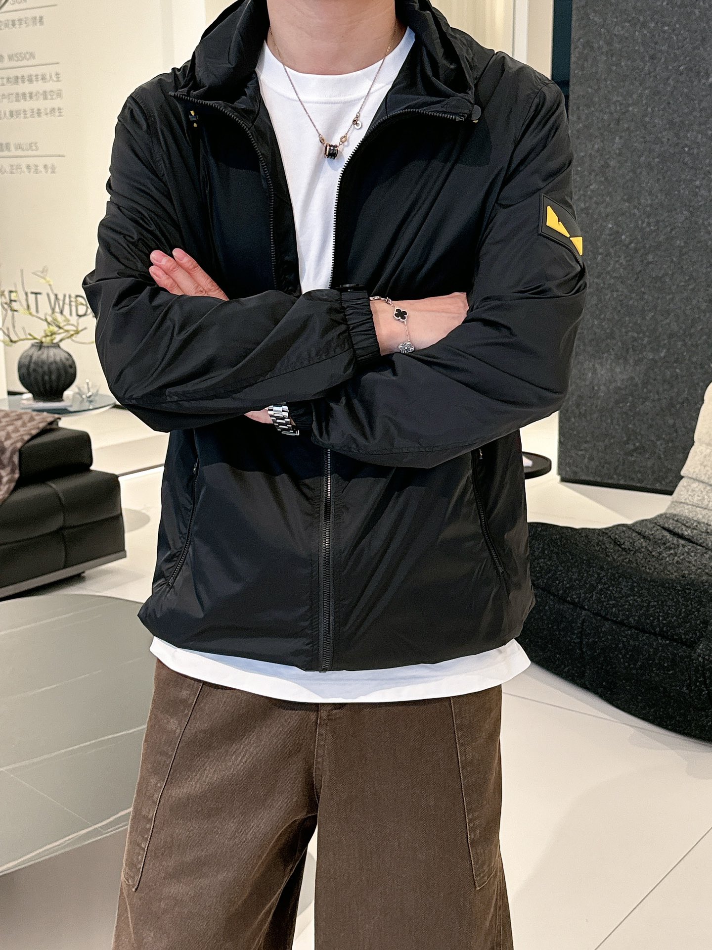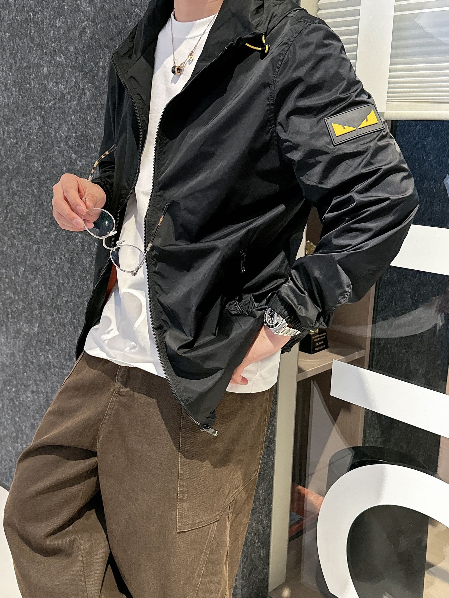 这款衣服是AAAAA 1:1 质量 (非常棒). 使用了和原版一模一样的材料. 商标部分也保持了和芬迪/Fendi一样. 图片拍摄是实物衣服拍摄, 您所收到的实物保证和我们图片一模一样.